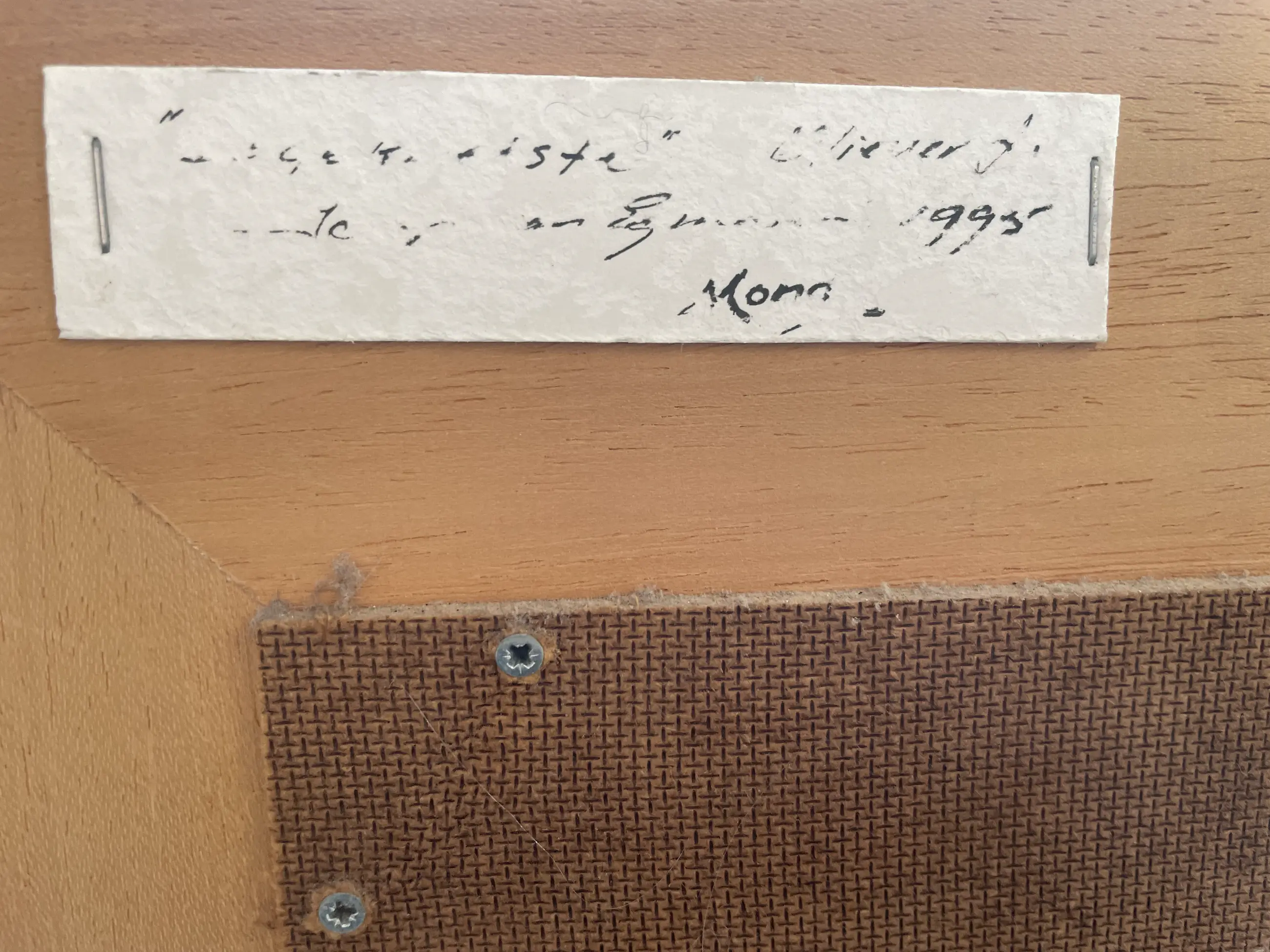 Het werk is gesigneerd met zijn oorspronkelijke signatuur te weten JvEgm 1995. Later veranderde hij zijn signatuur in Mond. De naam waar de kunstenaar meer bekendheid mee heeft.