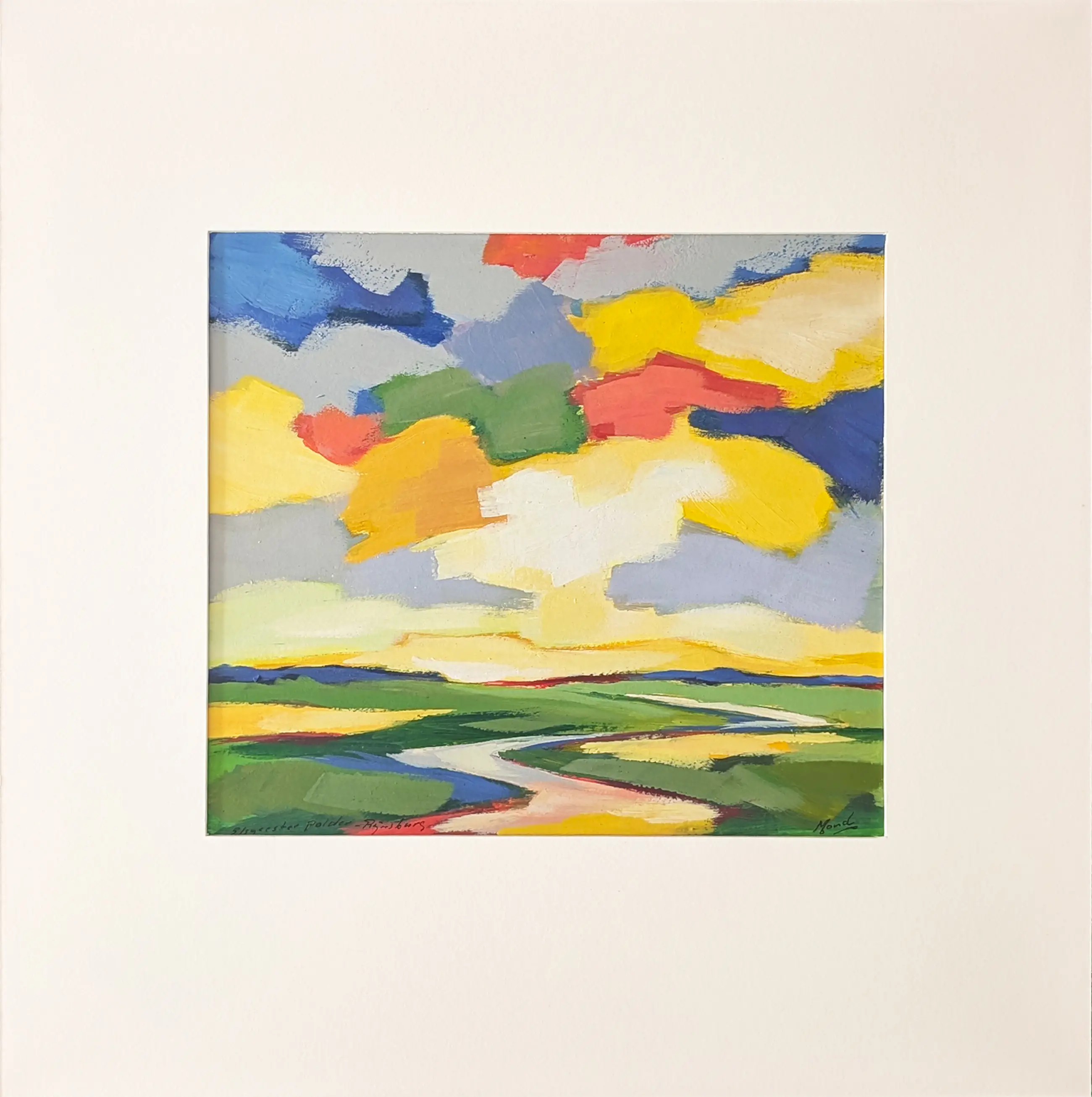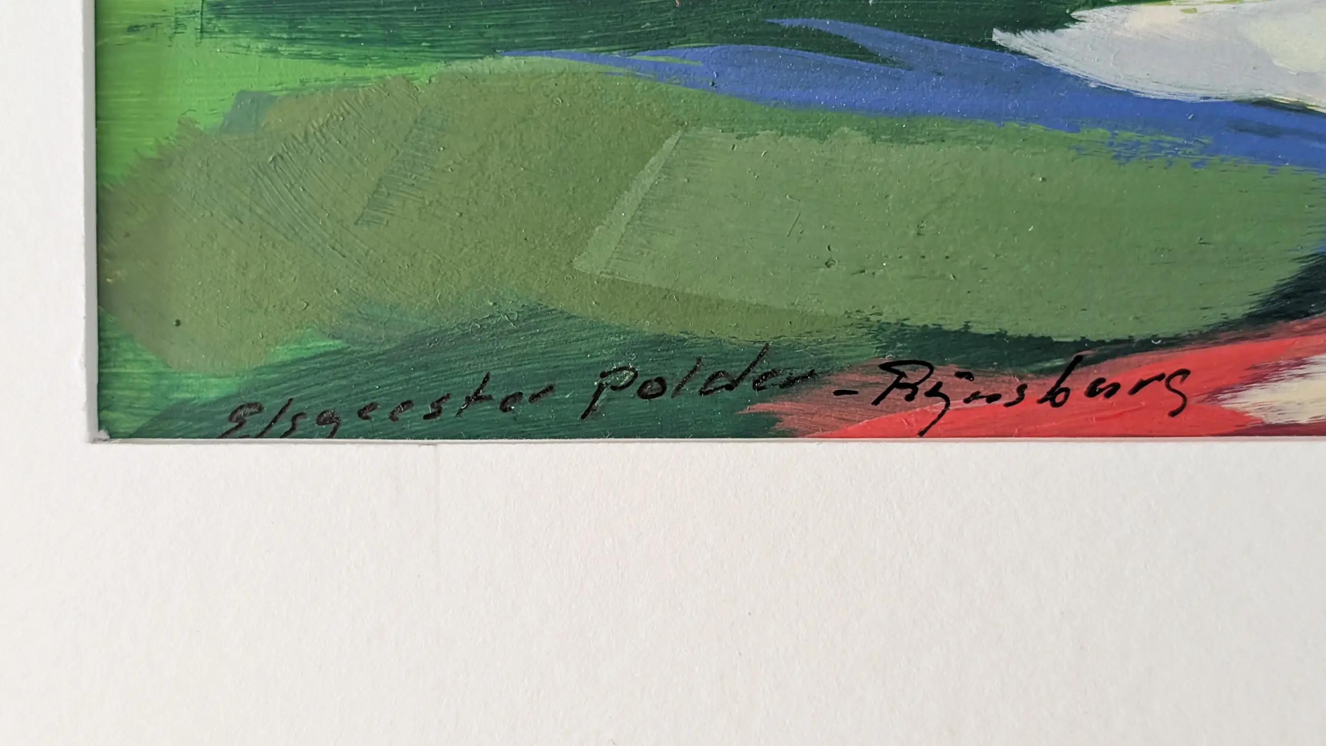 De Elsgeesterpolder lag dichtbij het atelier van Joop van Egmond (MOND). Het was een open gebied dat ingeklemd lag tussen Rijnsburg, Voorhout en Oegstgeest, waar tulpenvelden lagen. Inmiddels is de polder bijna volgebouwd en is de tulpenteelt nagenoeg verdwenen. Dit abstracte werk herinnert aan betere tijden. Claude Monet heeft hier in de negentiende eeuw ook geschilderd.
