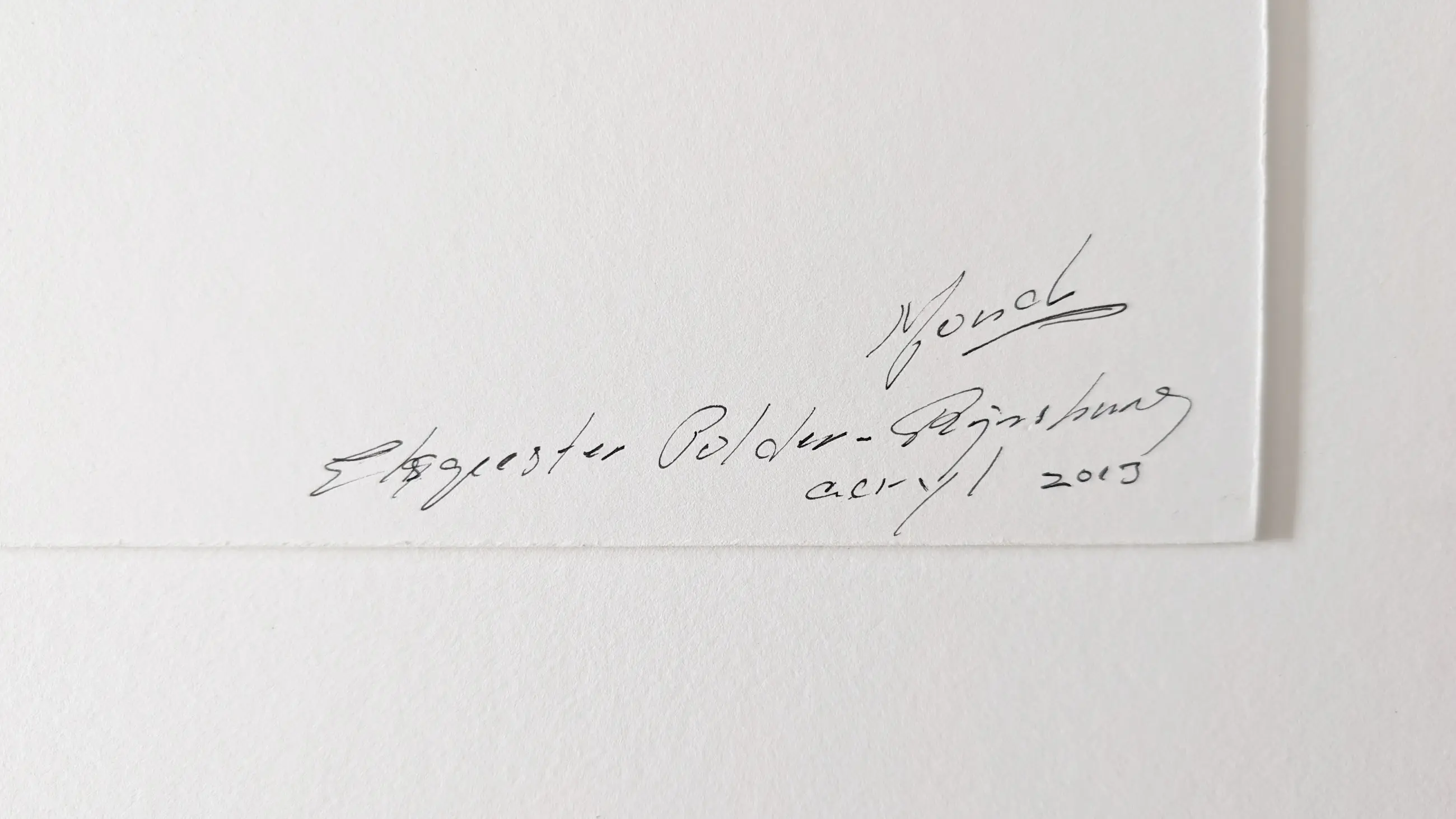 Joop van Egmond (1943 - 2018) was als beeldend kunstenaar actief in vele disciplines, zoals tekenen, etsen, beeldhouwen, schilderen in aquarel, acryl en olieverf. Hij staat ook bekend onder het pseudoniem ‘MOND’. Zijn veelzijdigheid leverde een diversiteit aan stromingen en technieken op.