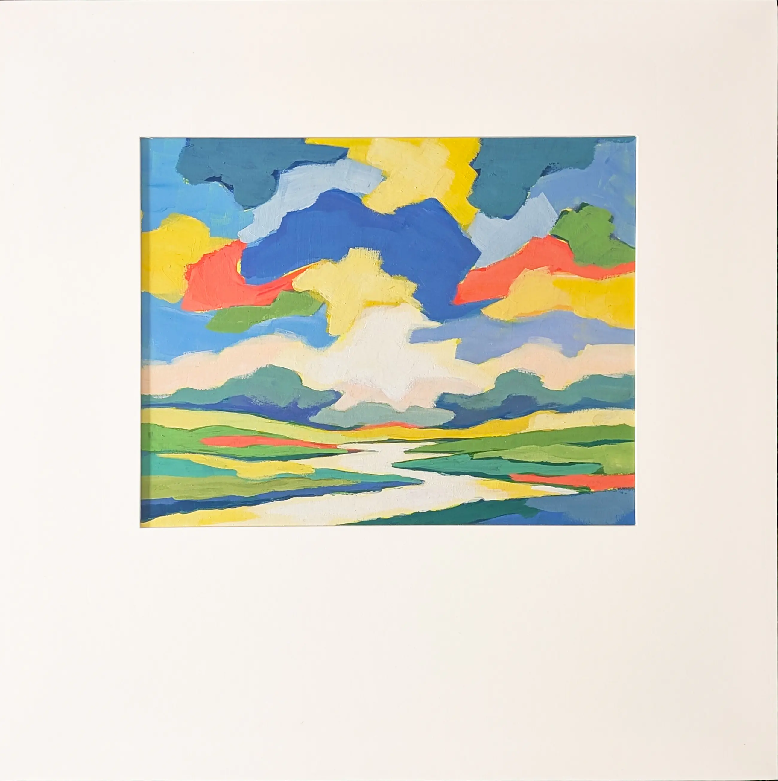 Omgeving Beerse, Brabant is geen topografische weergave, maar een persoonlijke interpretatie van het landschap. Het schilderij vangt de essentie van plaats: ruimte, licht, beweging en kleur, samengebracht tot een expressief en harmonisch geheel.