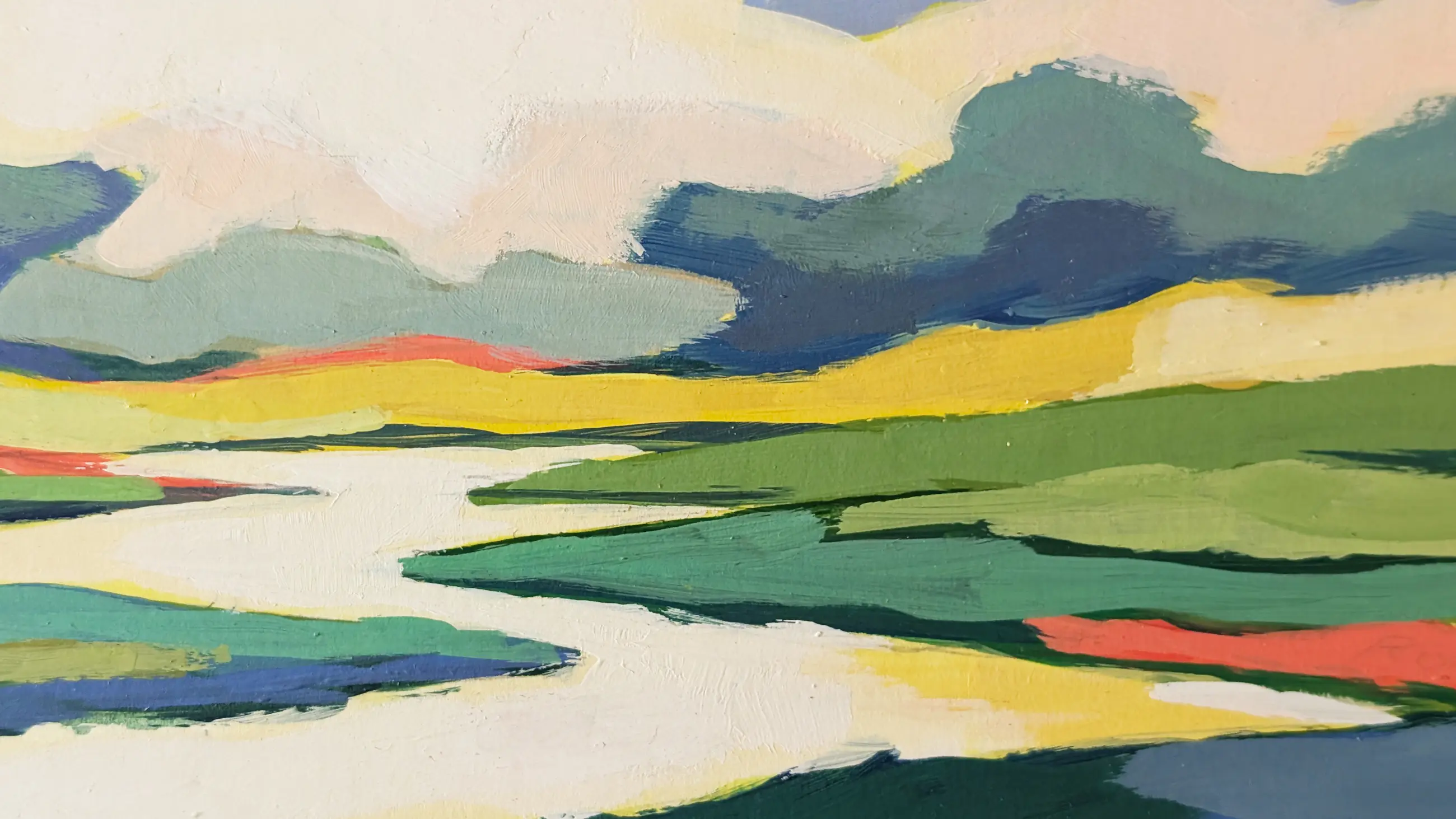 Voor zijn kleurrijke, abstracte landschappen inspireerde het werk van de Friese kunstschilder Gerrit Benner. Net als Benner was hij geobsedeerd door het Friese landschap. In dit acryl schilderij is deze invloed ook zichtbaar in stijl en onderwerp.