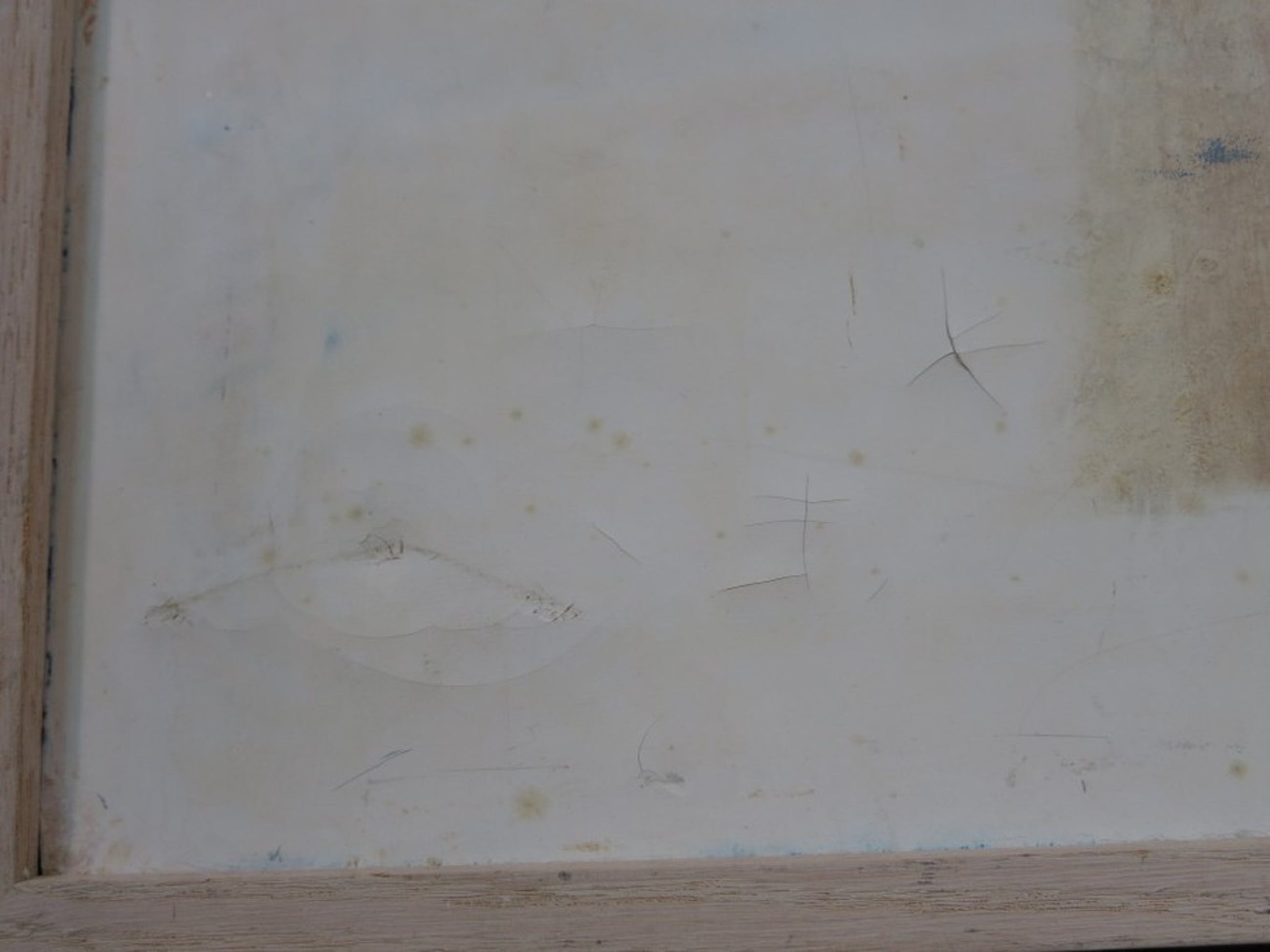 Kleine beschadigingen aan lijsten worden niet beschreven! Bij ingelijste werken achter glas vermelden wij altijd glasschade. Passe-partouts worden op geen enkele manier gegarandeerd en ook niet altijd meegezonden. Alleen als een werk niet uit het passe-partout te halen is, zal dit vermeld worden.