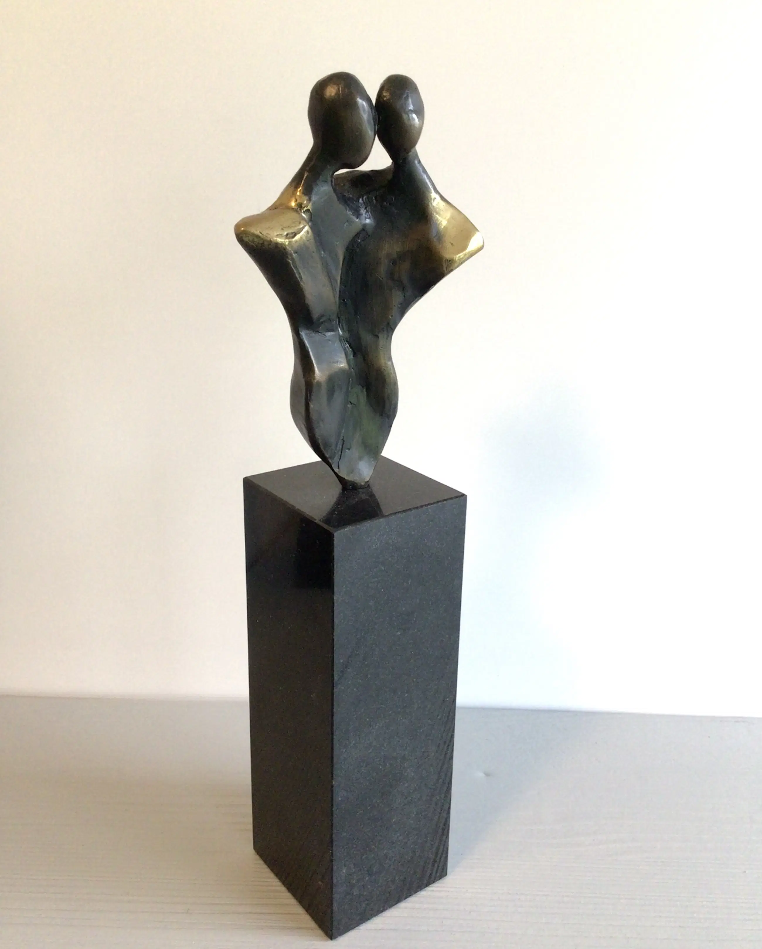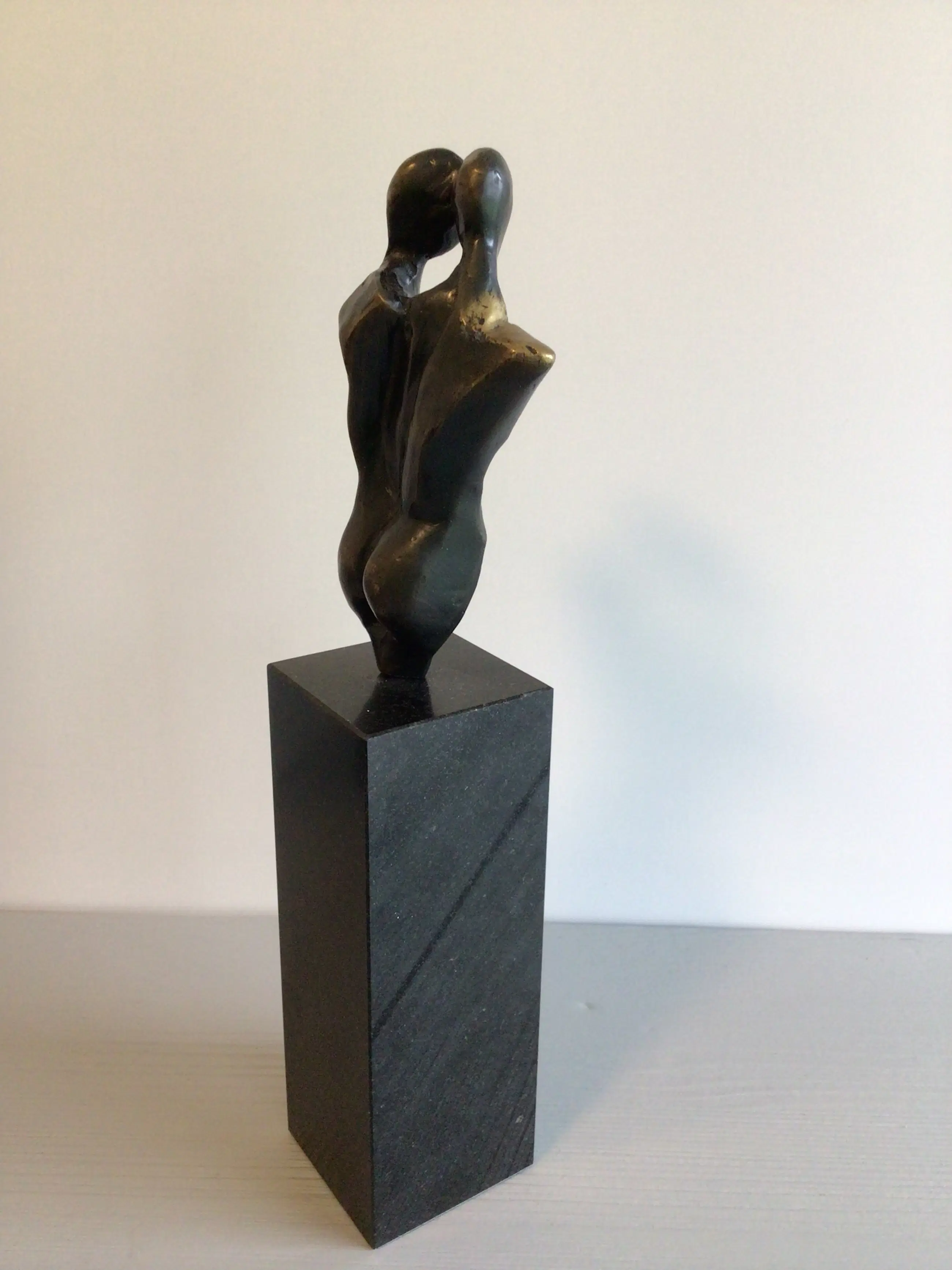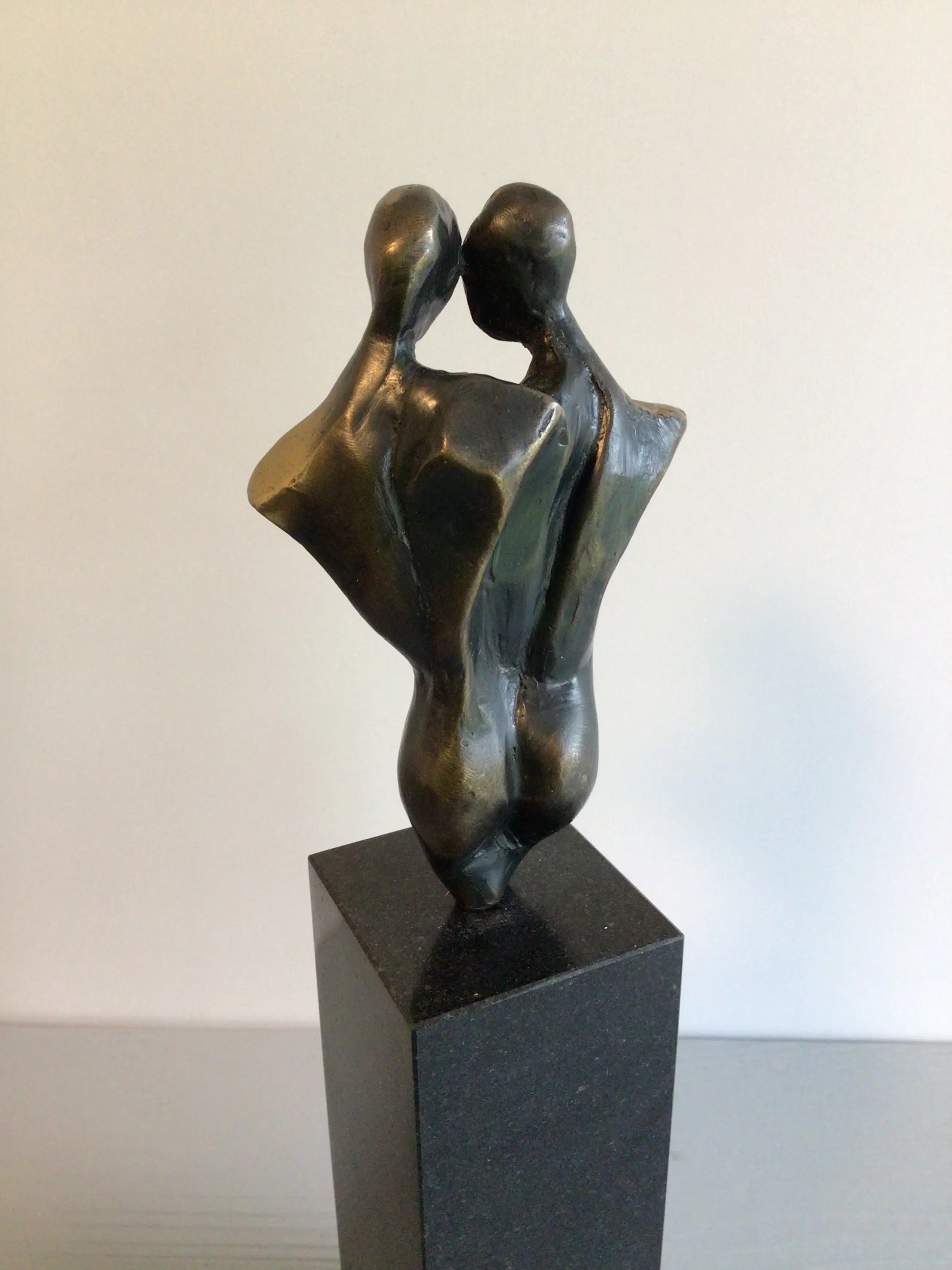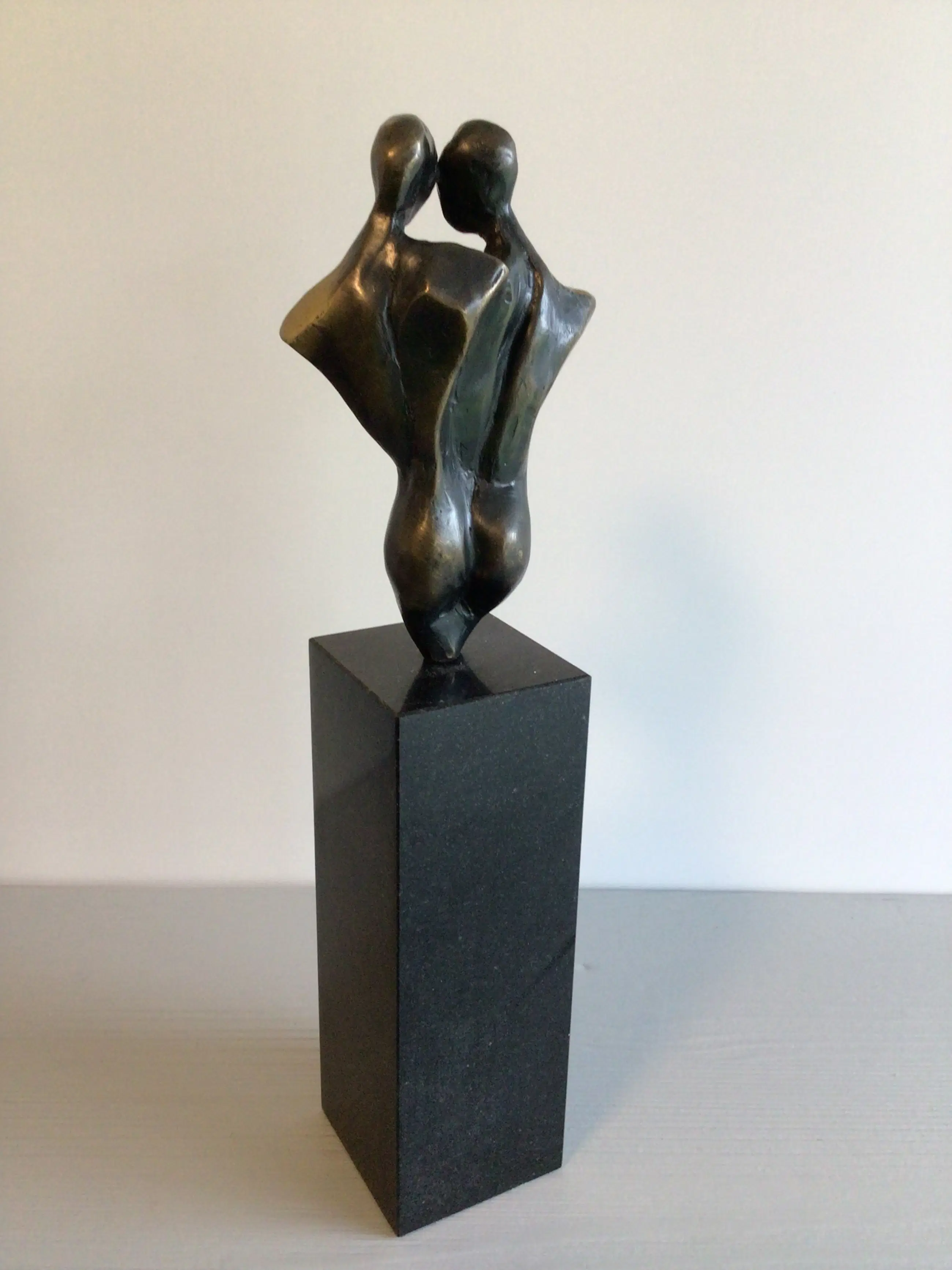 Zeer fraai vormgegeven stilistisch sculptuur van twee geliefden in een mooie pose, schouder aan schouder vormen ze een krachtige eenheid Kunstenaar: Joop van Nugteren Titel “ Met elkaar de schouders eronder zetten “ Hoogte : 25 cm Materiaal: brons Het beeld verkeert in zeer goede staat en wordt zorgvuldig verpakt verzonden.