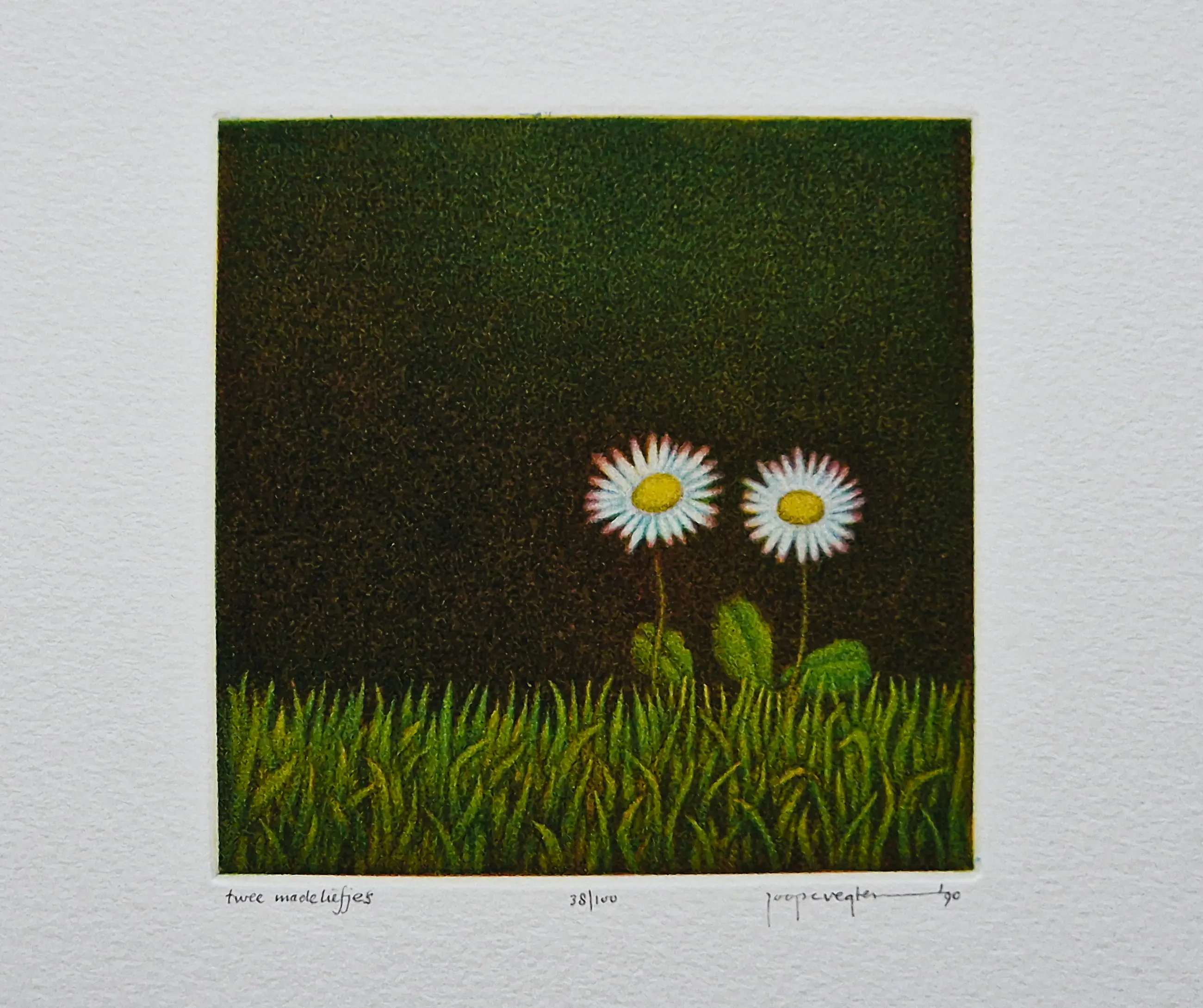 Joop Vegter is geboren in 1931, overleden in 2017. Hij specialiseerde zich in: Mezzotint, aquarellen. Favoriete thema: stilleven. Opleiding: Instituut voor Kunstnijverheidsonderwijs te Amsterdam; Rijksinstituut tot Opleiding van Tekenleraren. Docent aan Academie voor Beeldende Vorming in Amersfoort. Lid van De Haagse Etsclub; Amersfoortse Kunstenaars Genootschap De Ploegh.