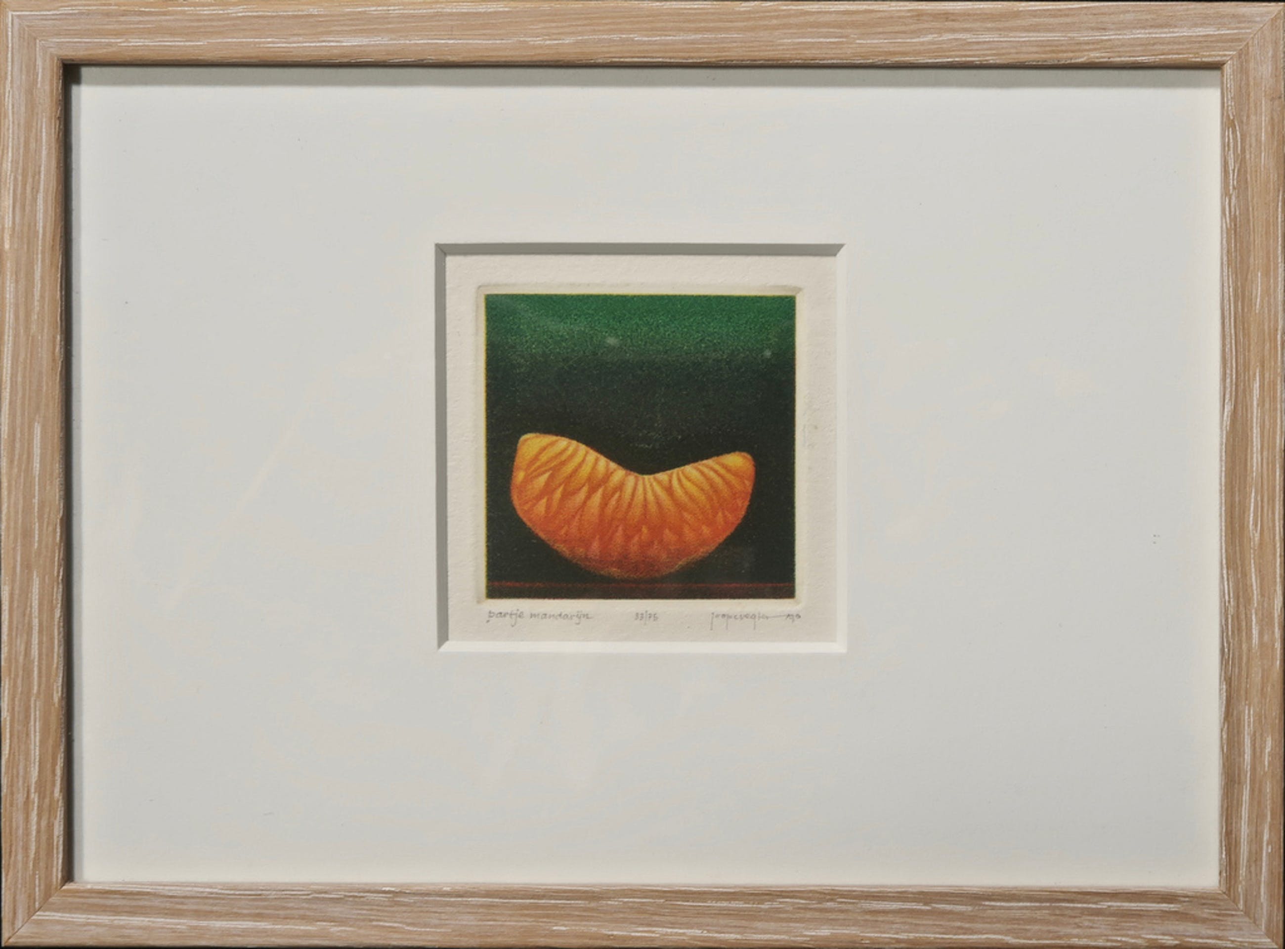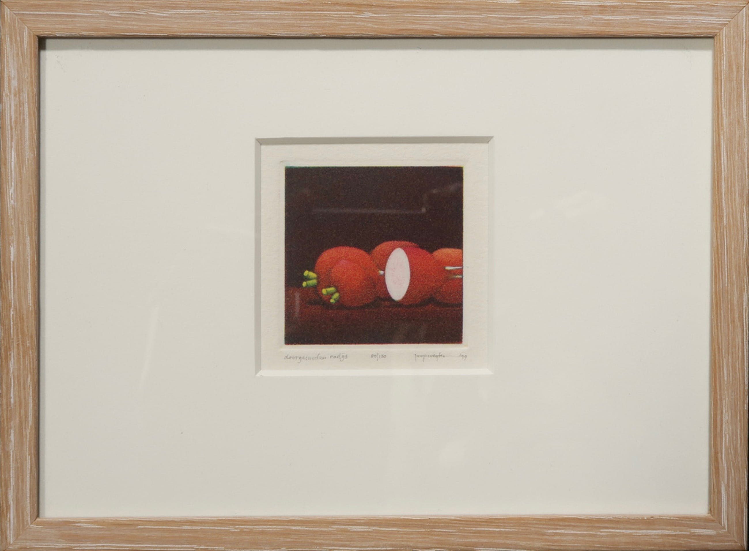 Titel: Doorgesneden radijs / Twee frambozen / Partje mandarijn / Open lampionnetje