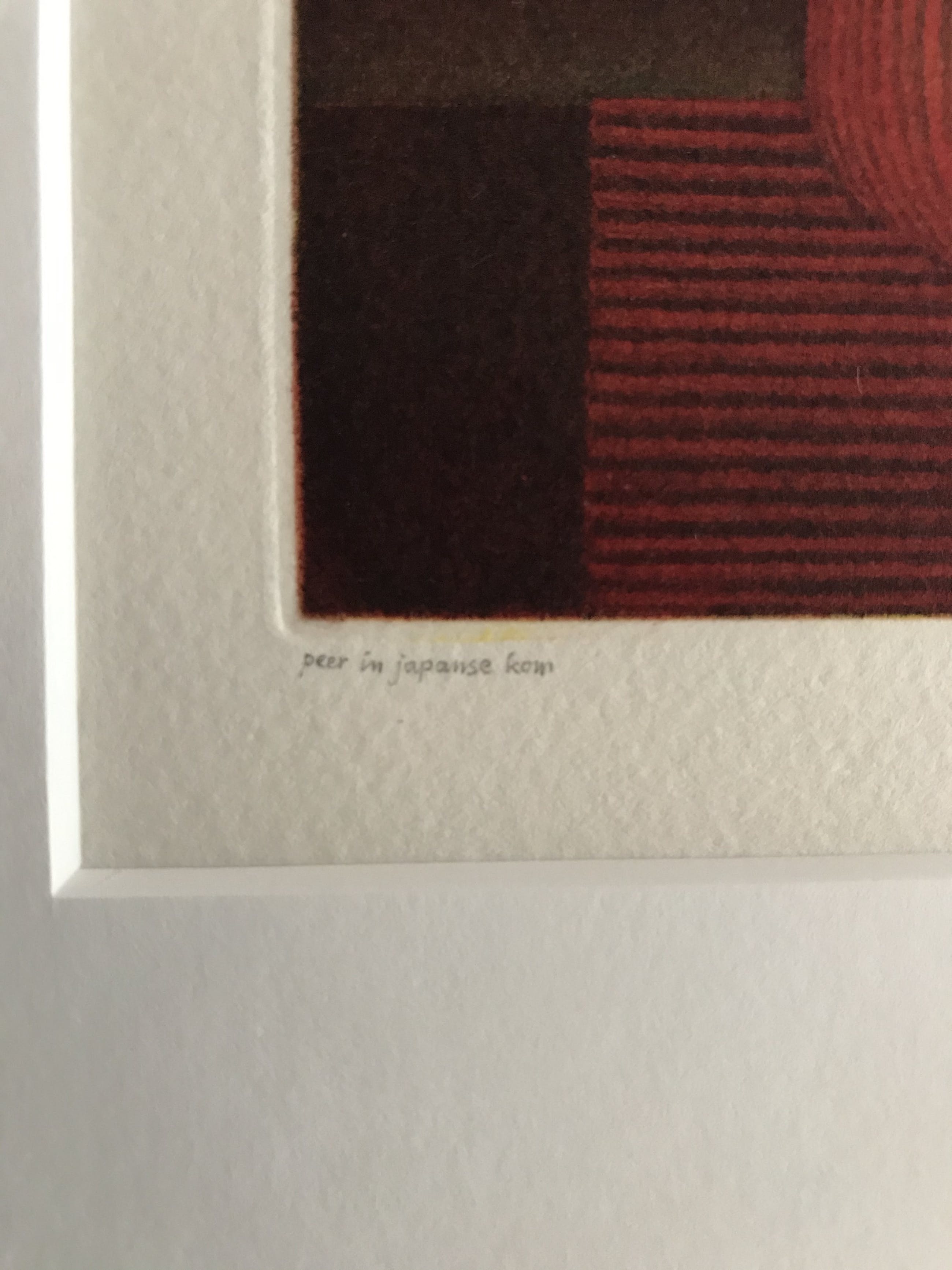 - Achter passepartout en glas, het werk is door glas heen gefotografeerd.