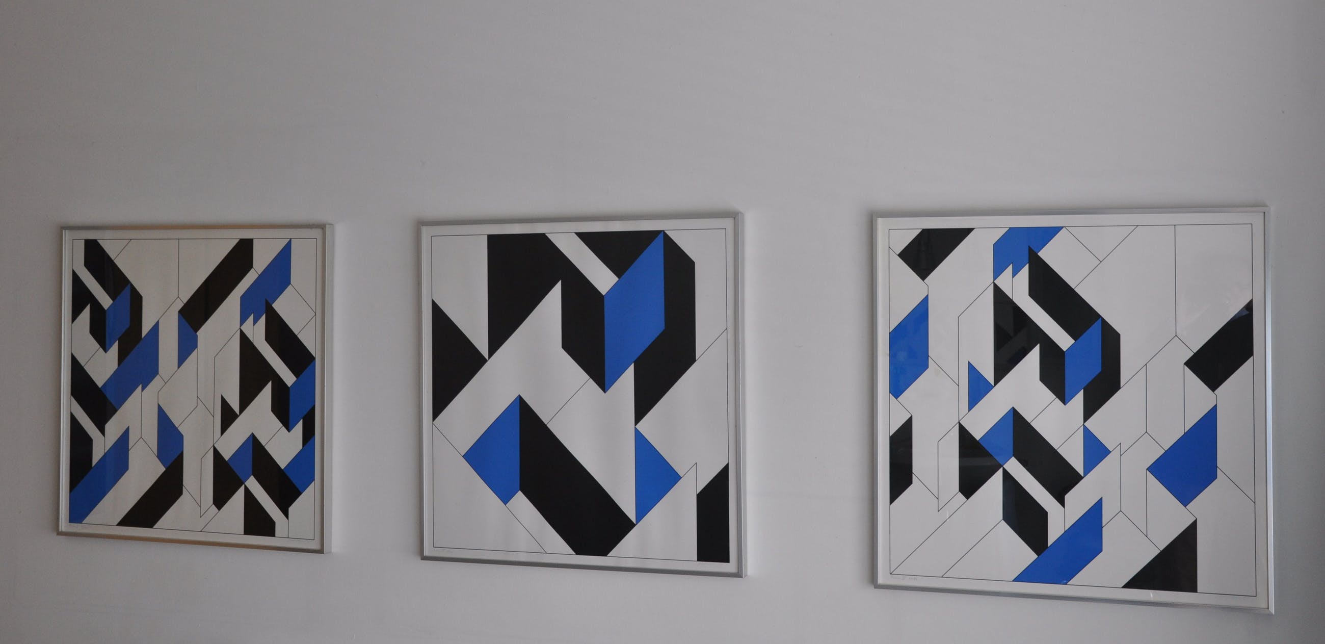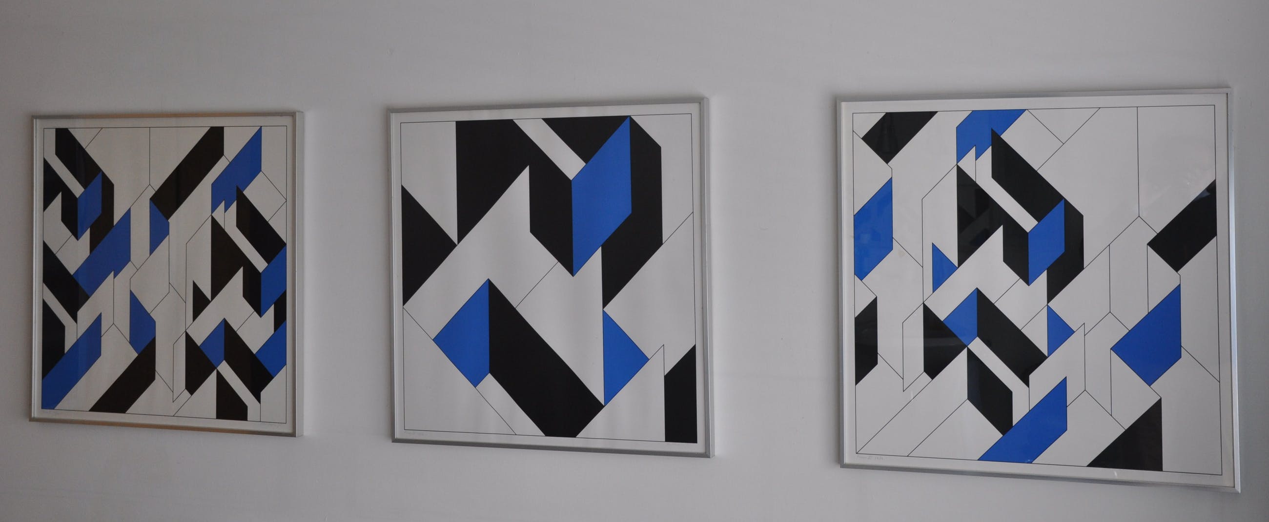 3 zeefdrukken in kleur - seriegrafie - van Joost Baljeu. Titel "Focus" I II III
