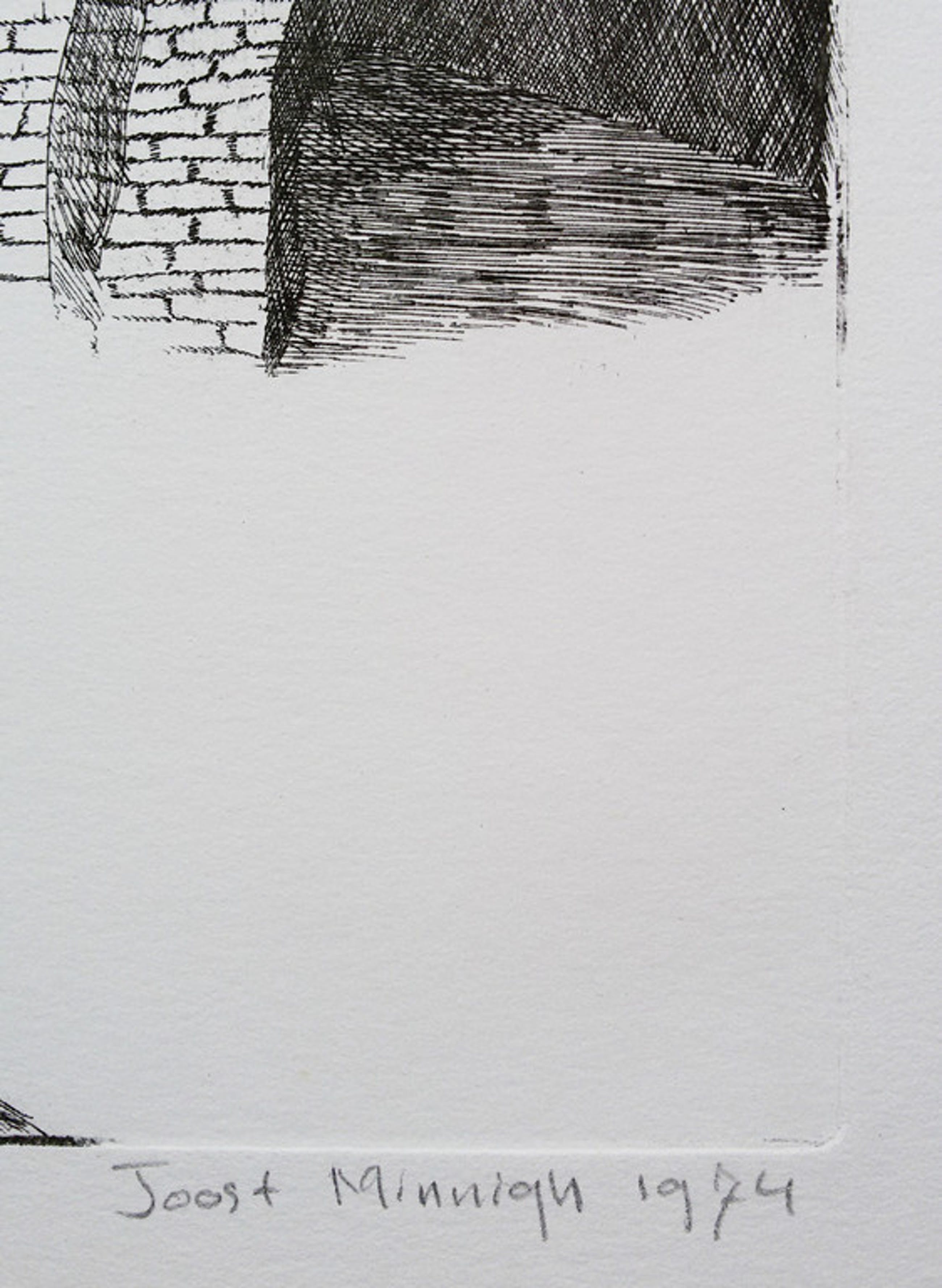 Grappige ets van Joost Minnigh. Ets op dik papier, met potlood gesigneerd, gedateerd (1974), getiteld en genummerd (37/80). In zeer goede conditie.