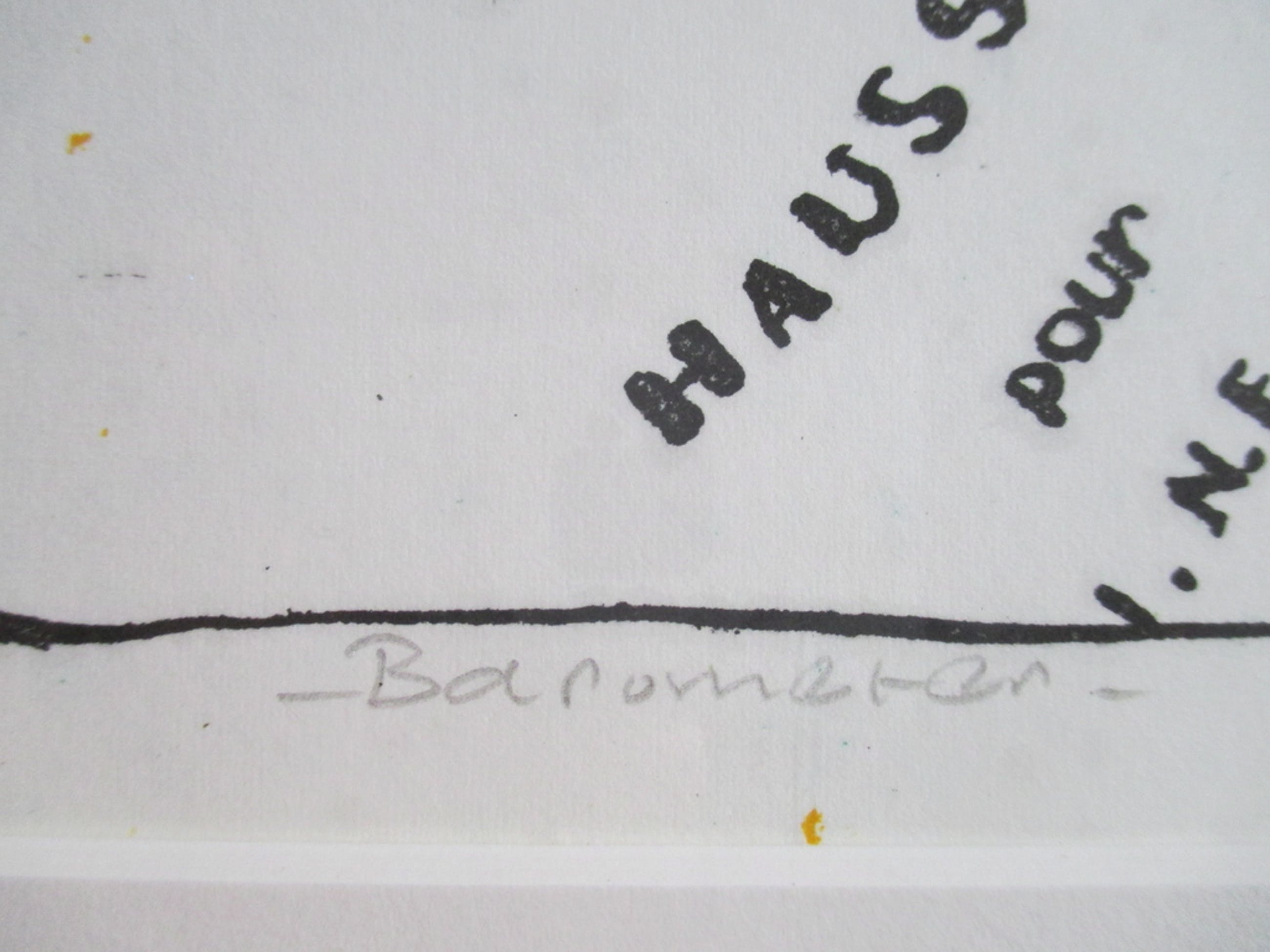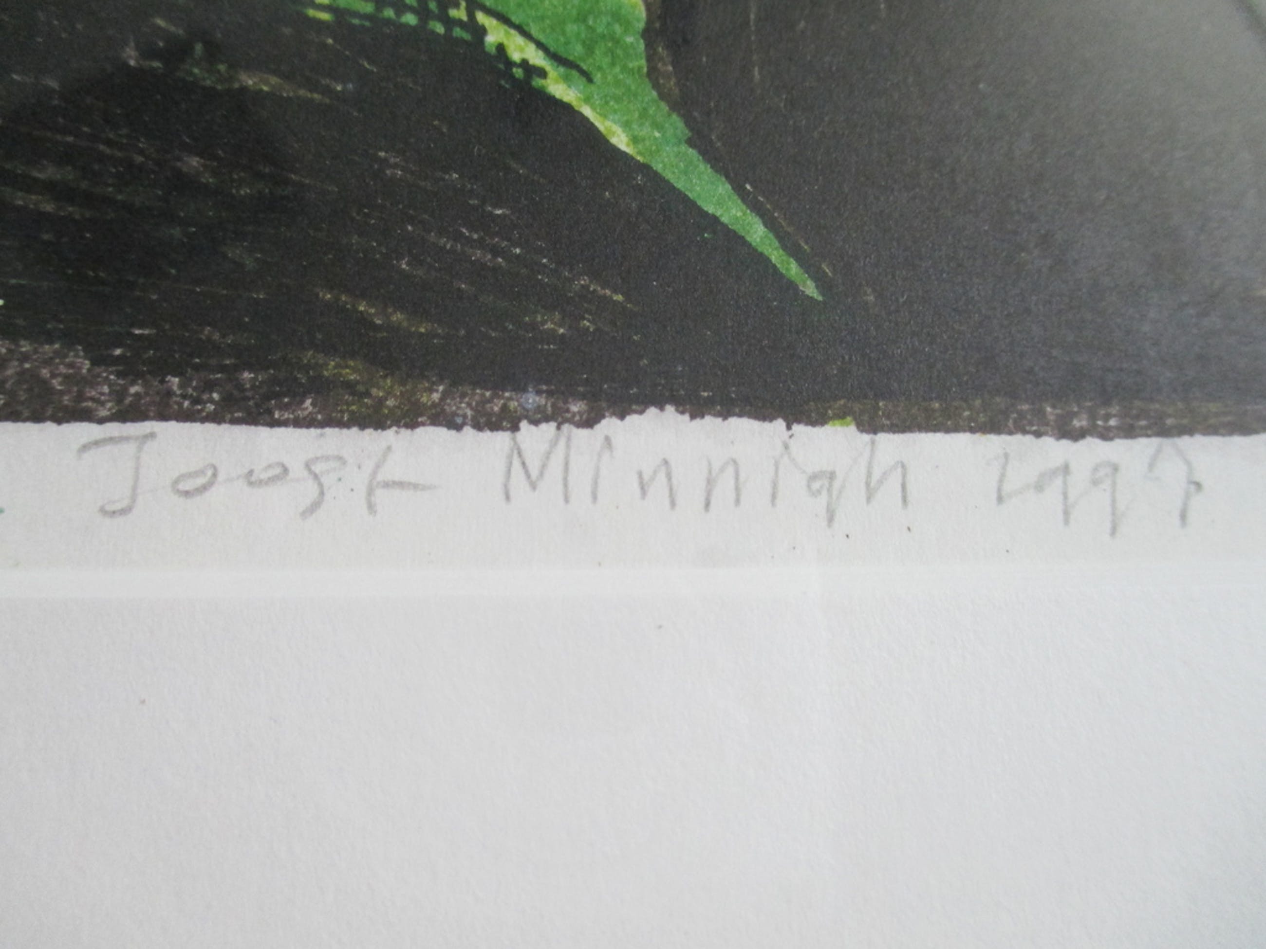Grote litho van Joost Minnigh (1942-2011), r.o. gesigneerd en gedateerd 1997 in potlood, eigen druk Artist Proof, getiteld 'Barometer'. Mooi professioneel zuurvrij ingelijst achter glas in een Barth lijst, afm. lijst 78x98, beeld 52x72 cm. Het geheel verkeert in perfecte staat.