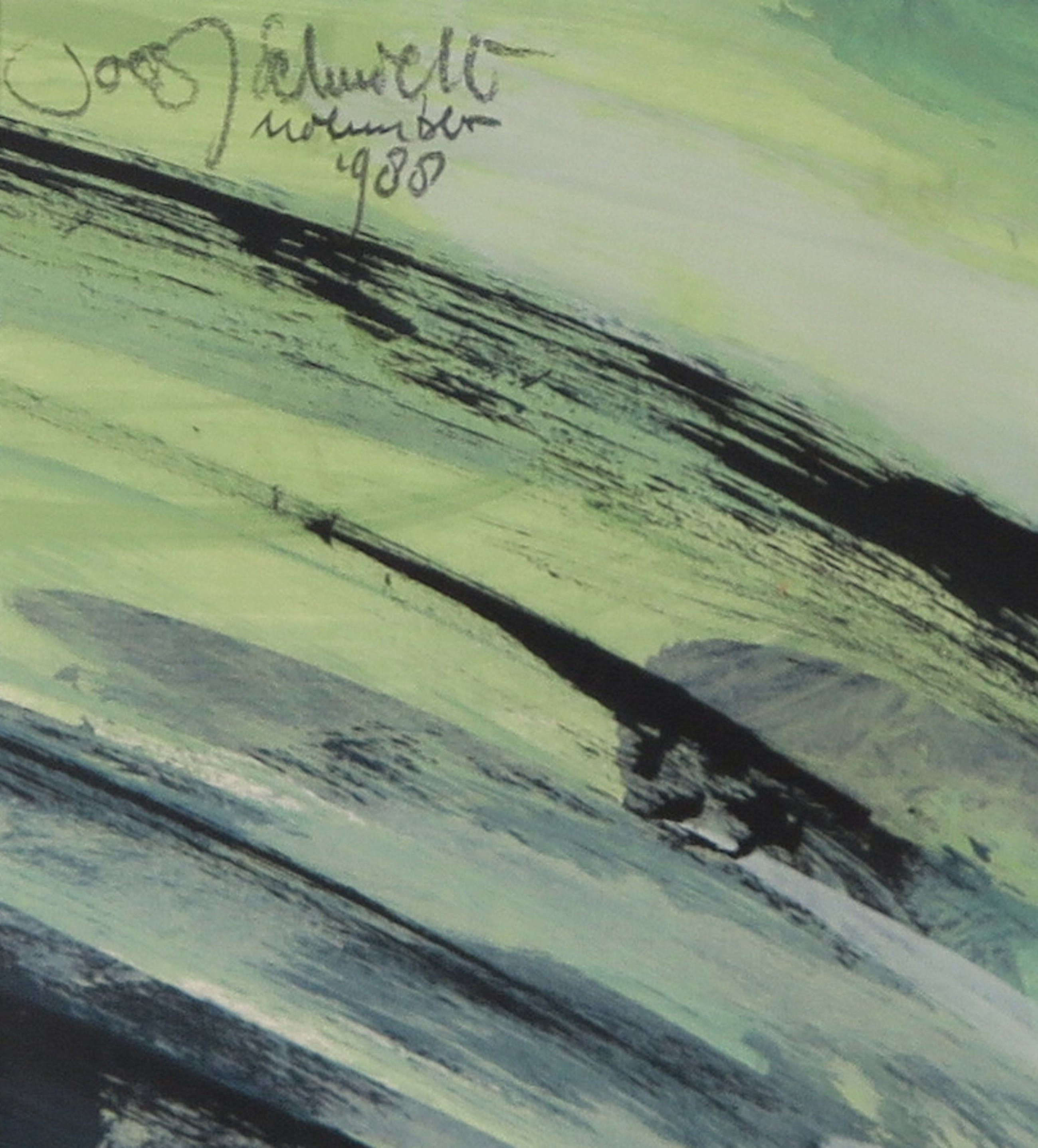 Het werk is in zeer goede conditie. In de hoek linksboven een barstje/hoekje uit het glas. Het passe-partout kiert langs de rand links langs de lijst. | |