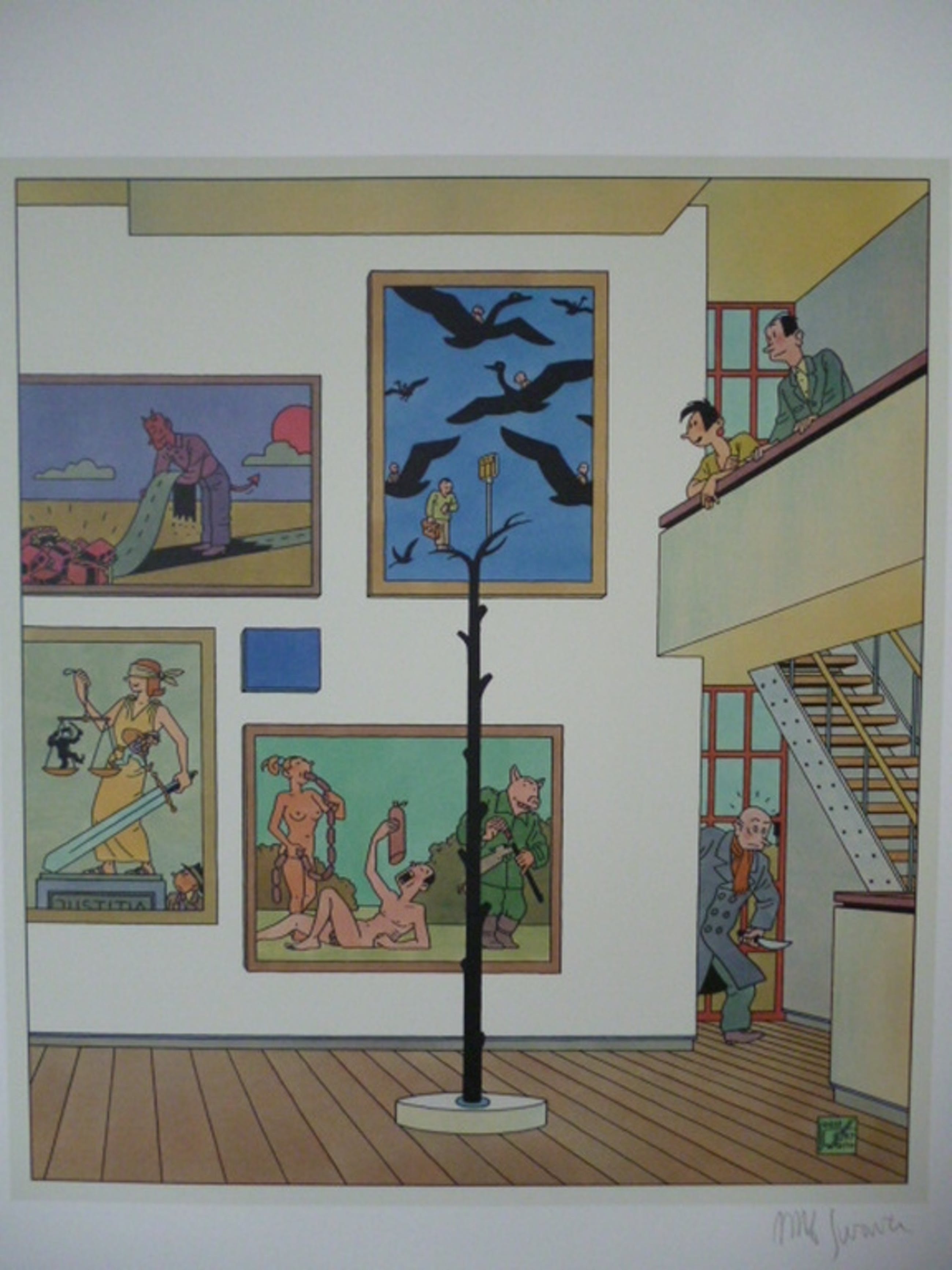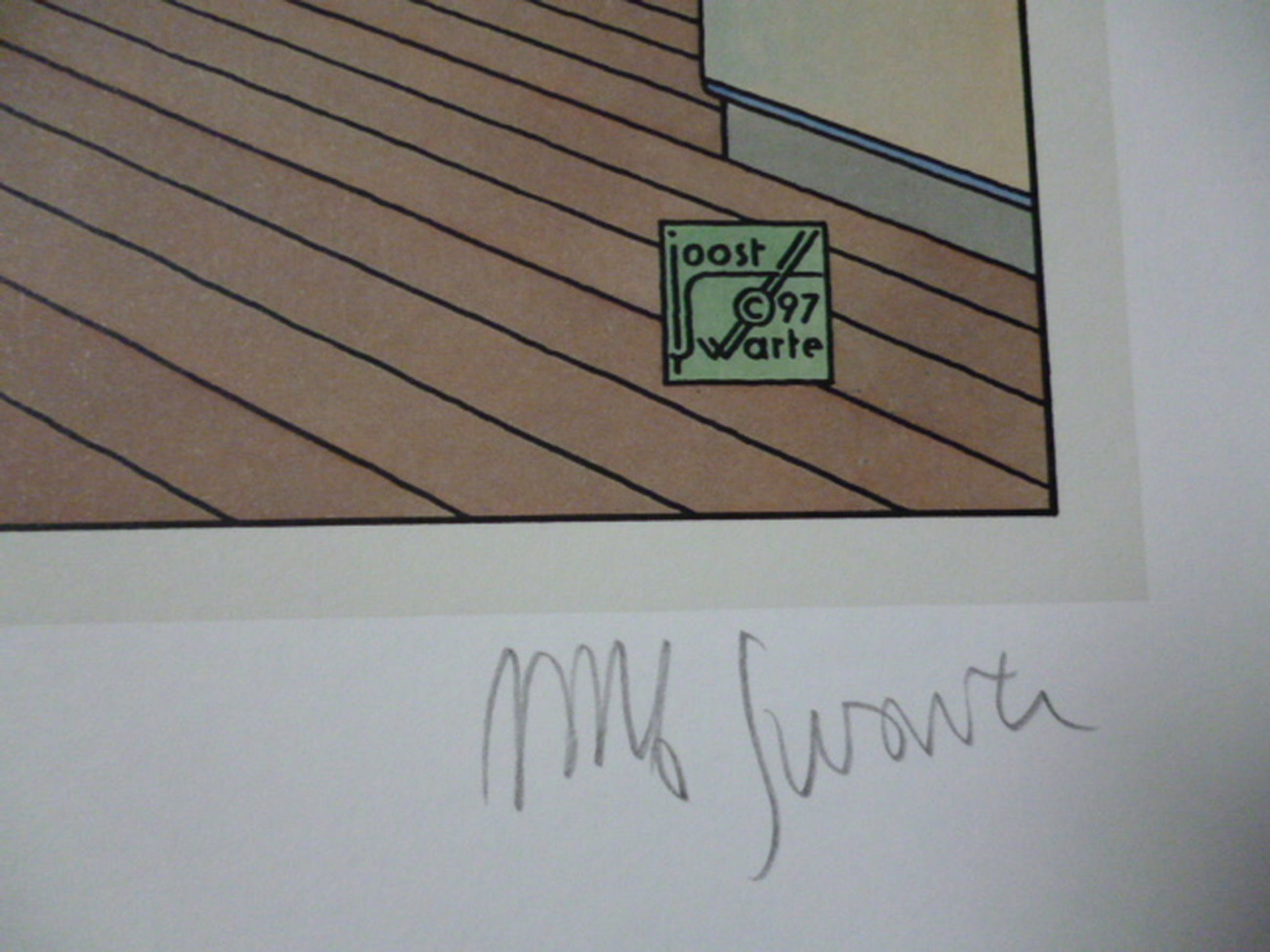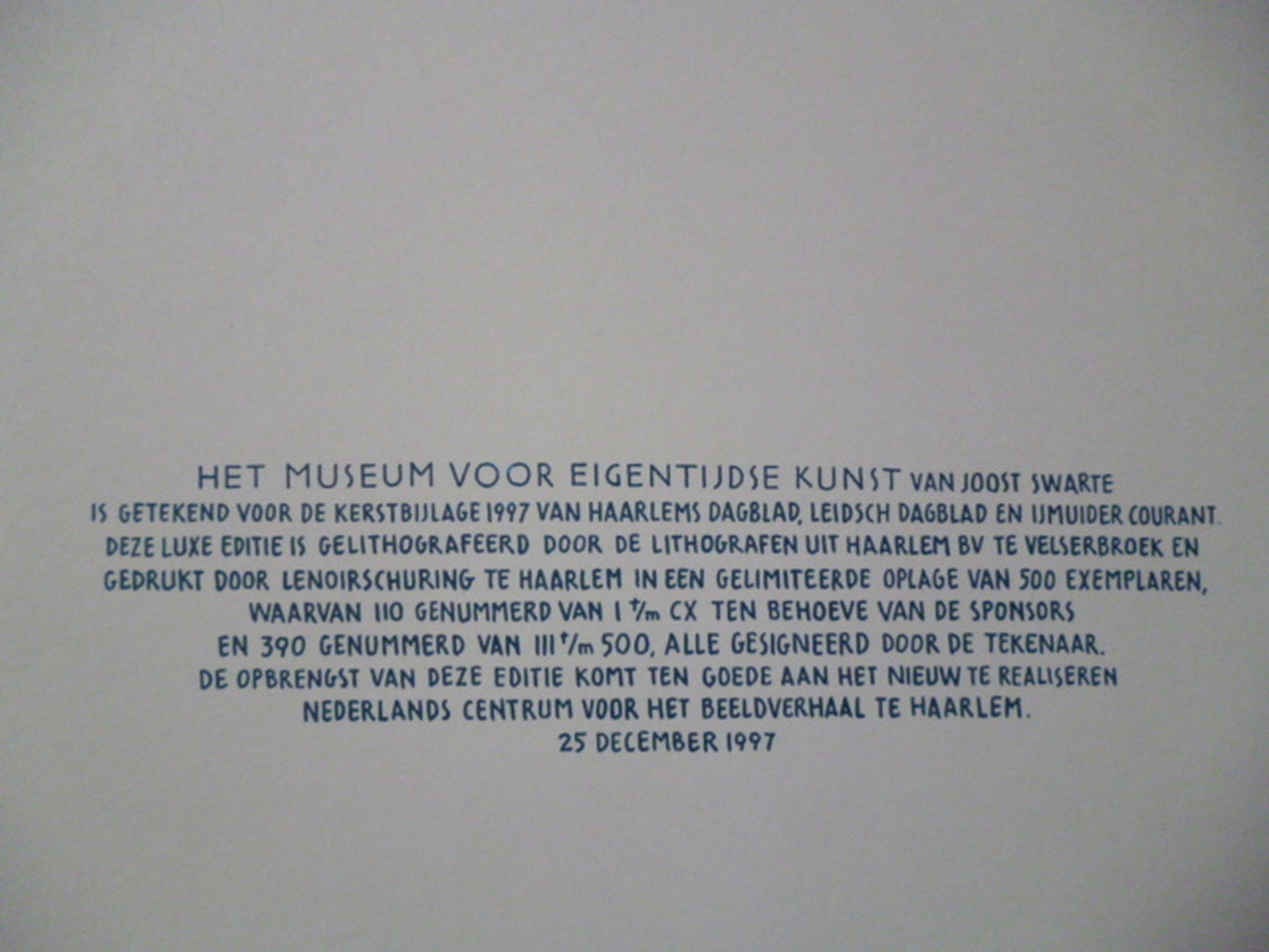 Kleurlitho, potlood gesigneerd rechtsonder. Gemerkt Joost Swarte C 1997 in de druk.