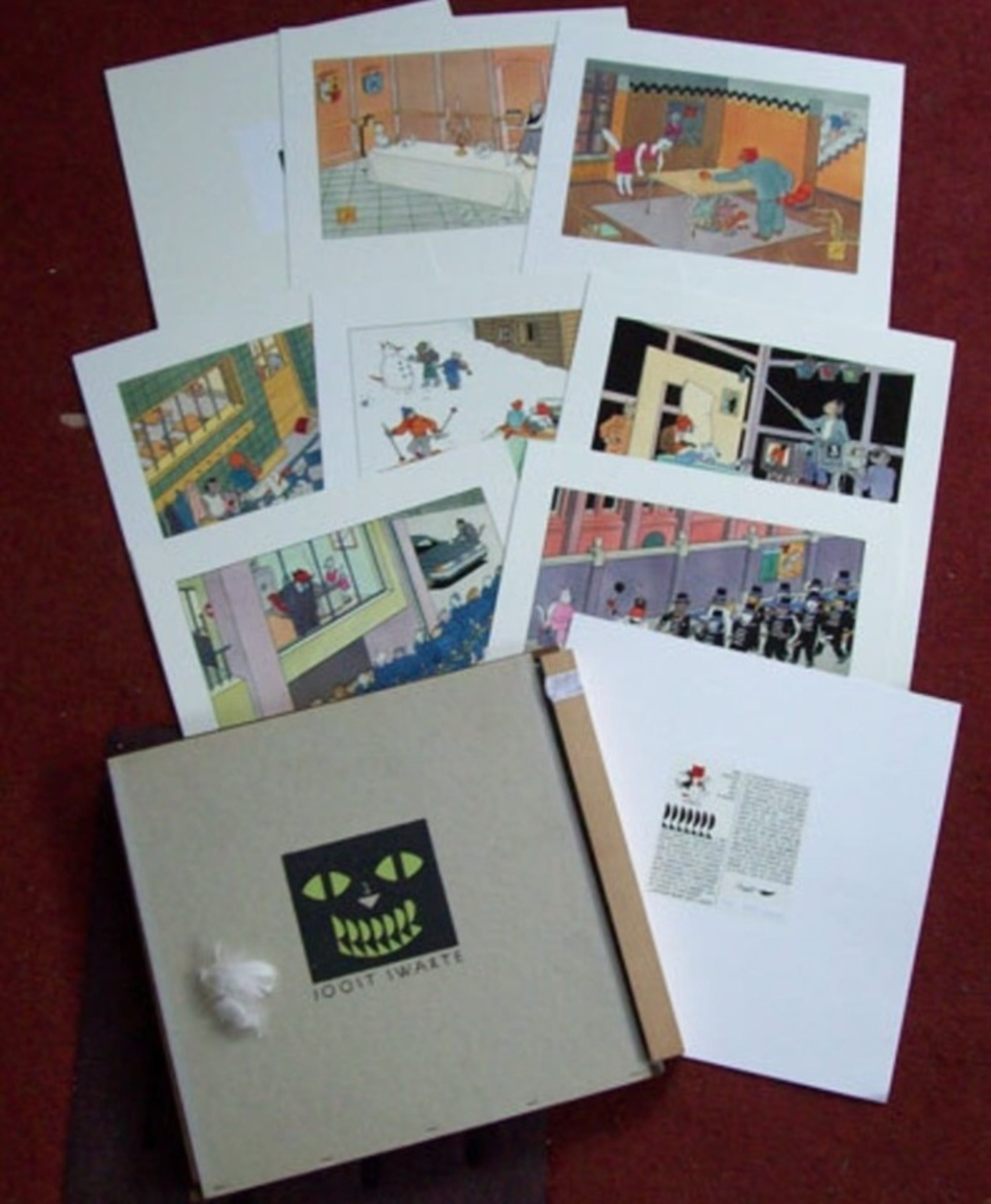 2 portfolios met ieder 7 poezenprenten, oorspronkelijk gemaakt voor het weekblad HUMO.