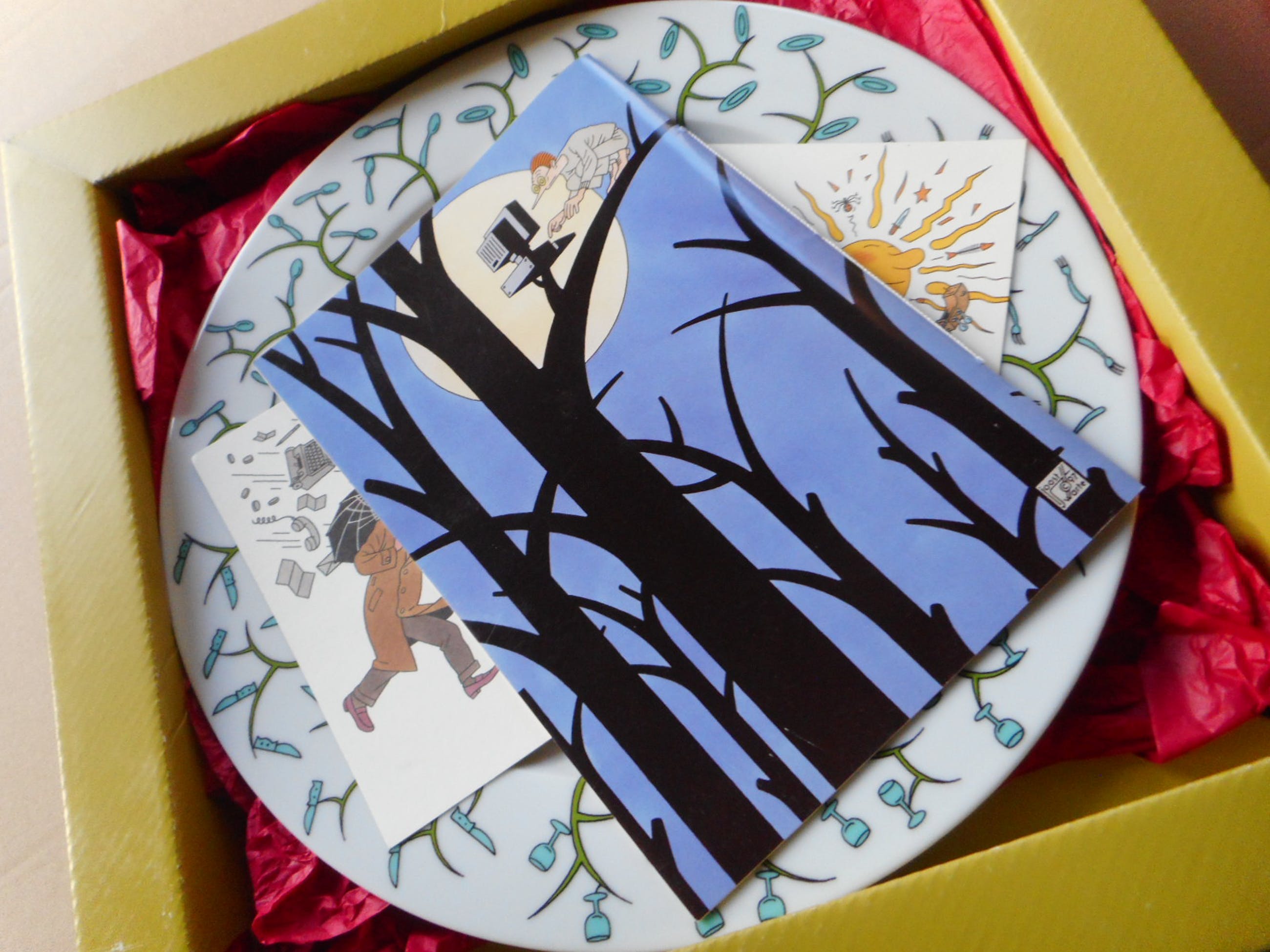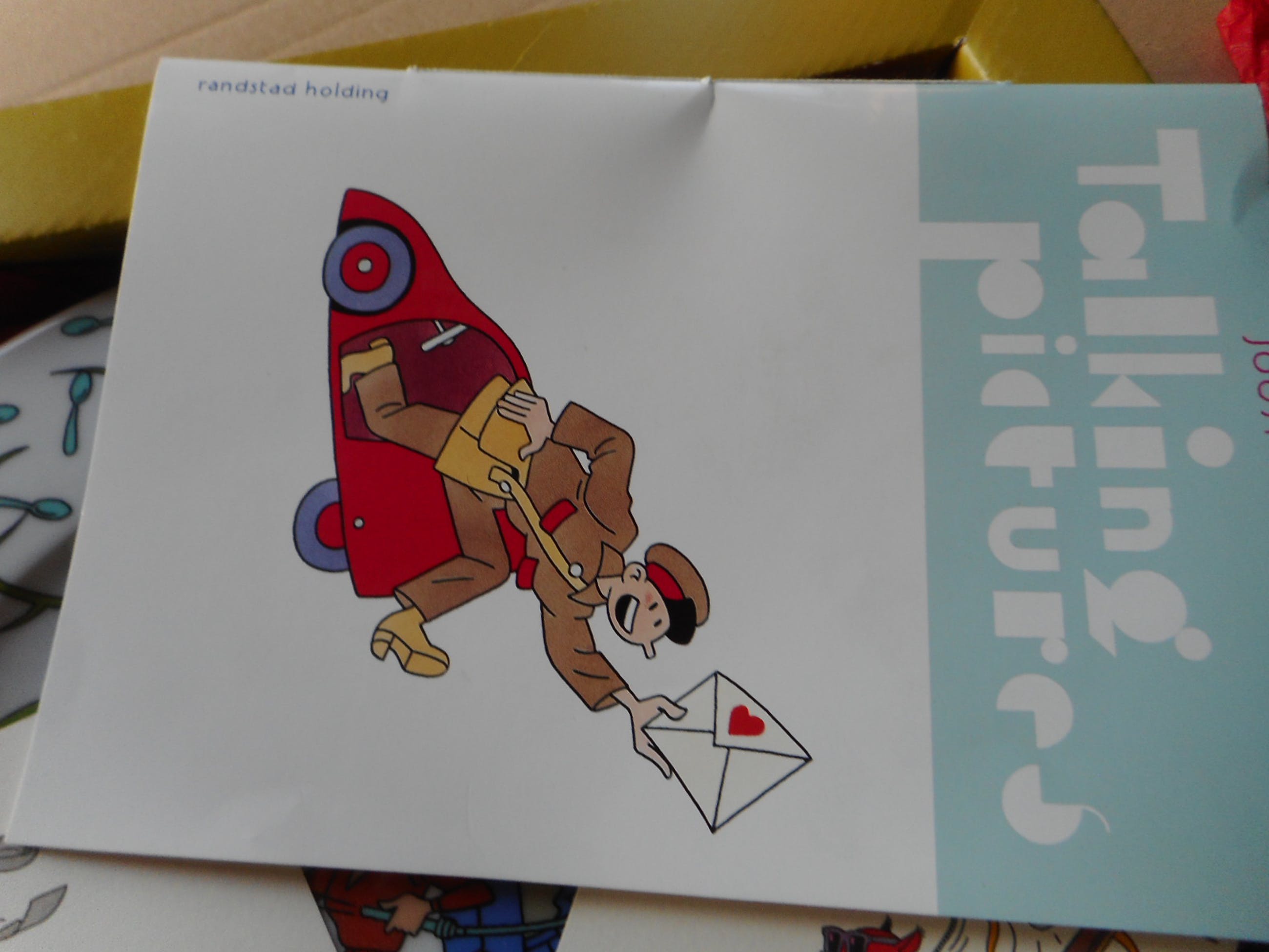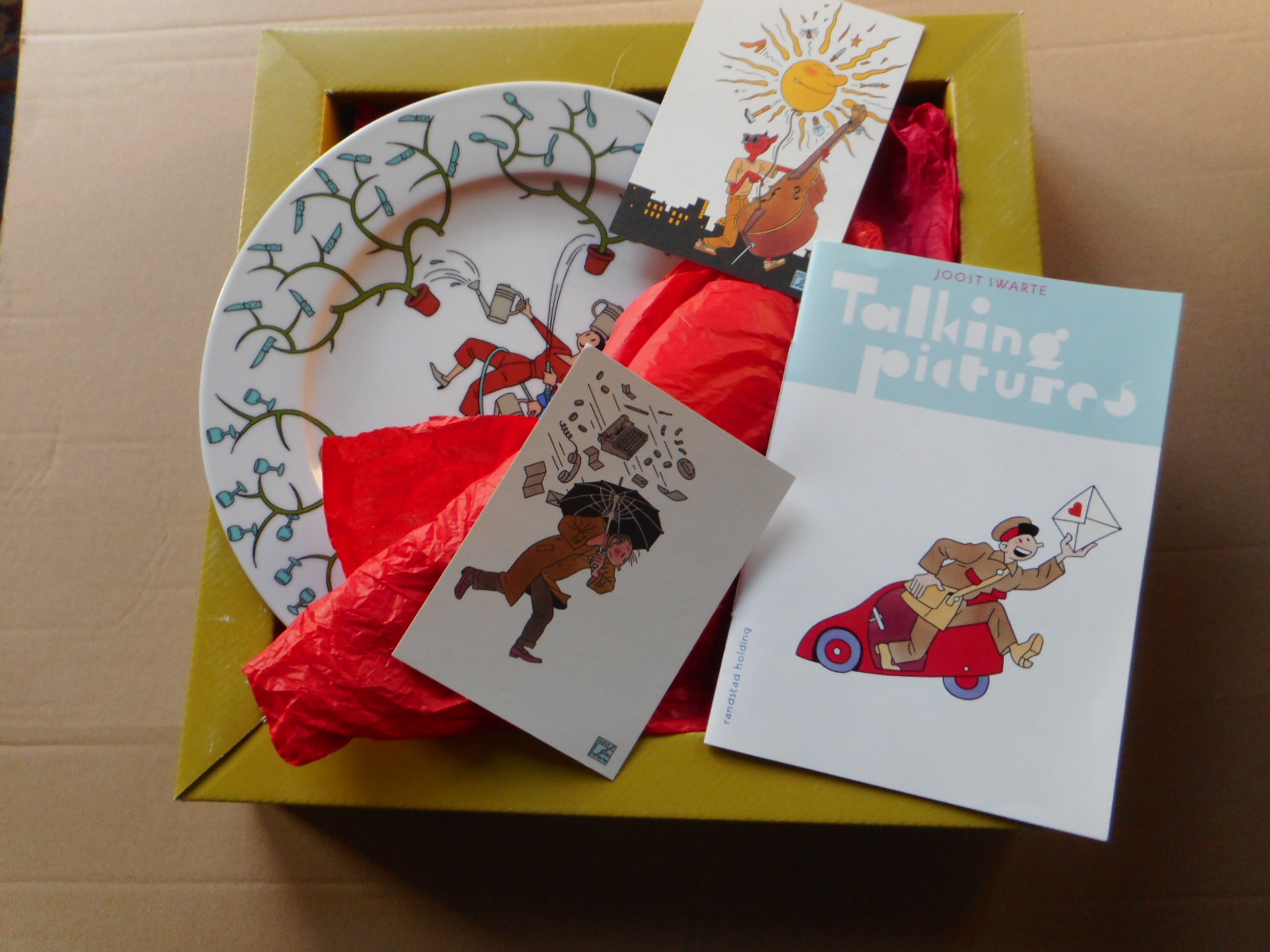 Prachtig bord ( diameter 30 cm ) ontworpen en gemaakt door JOOST SWARTE in opdracht van RANDSTAD HOLDING t.b.v. het stafpersoneel , incl. gave box , boekje TALKING PICTURES , 2 bijhorende ansichtkaarten.