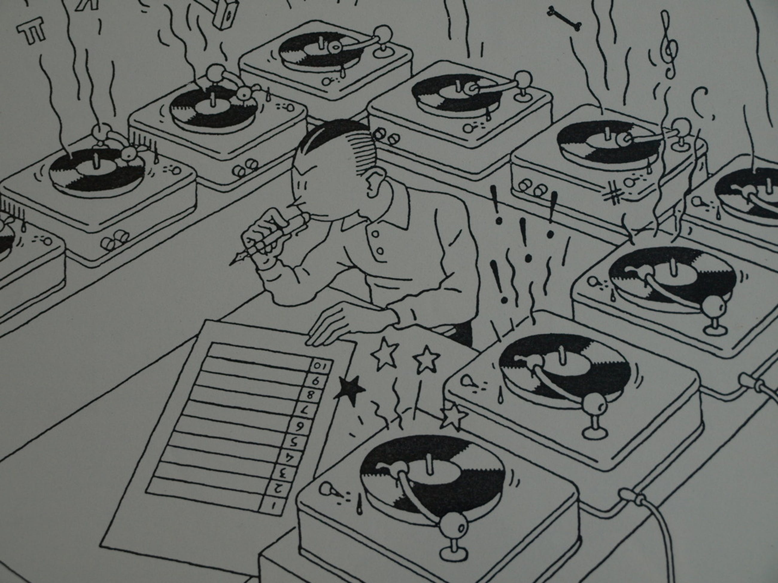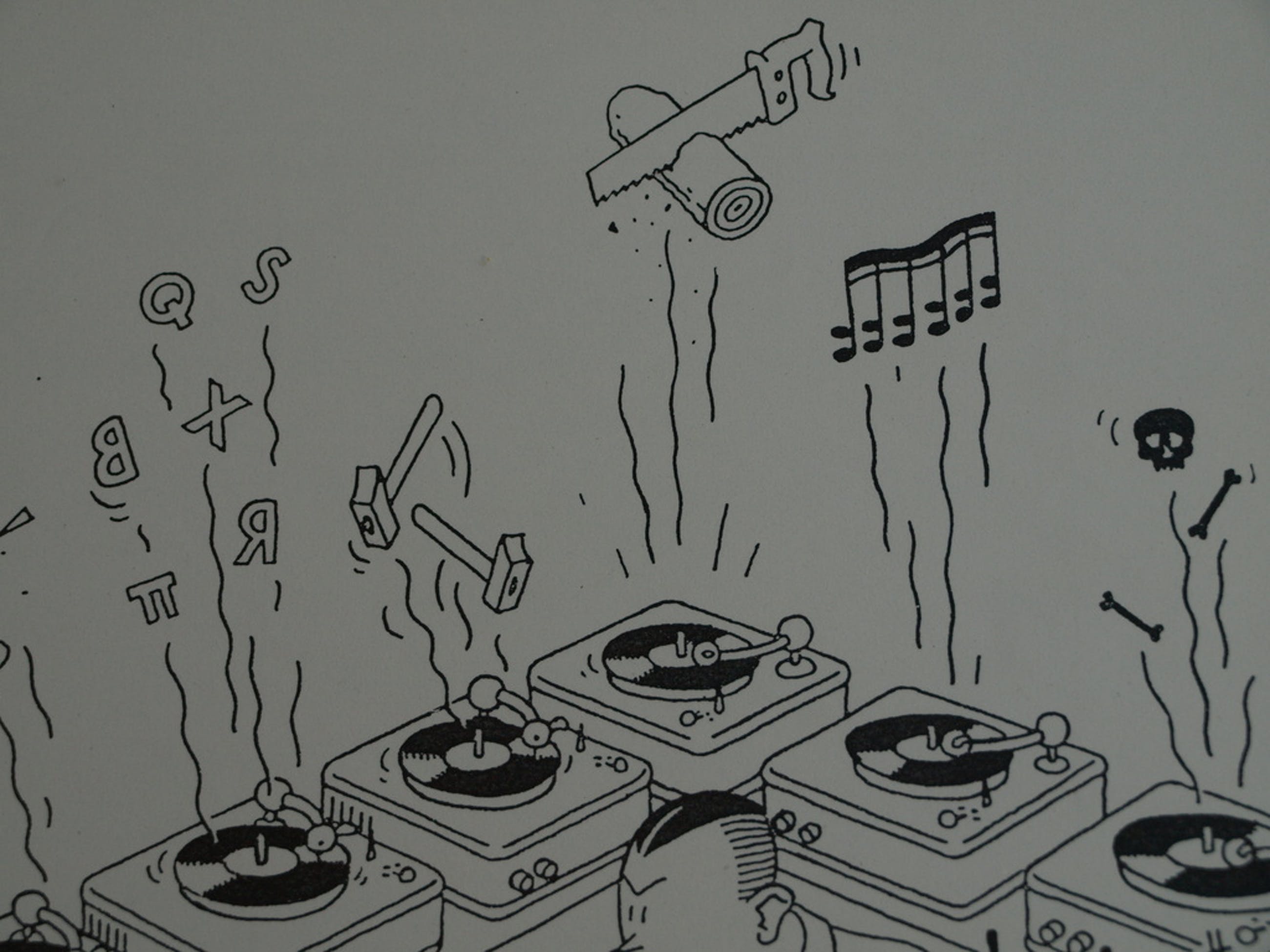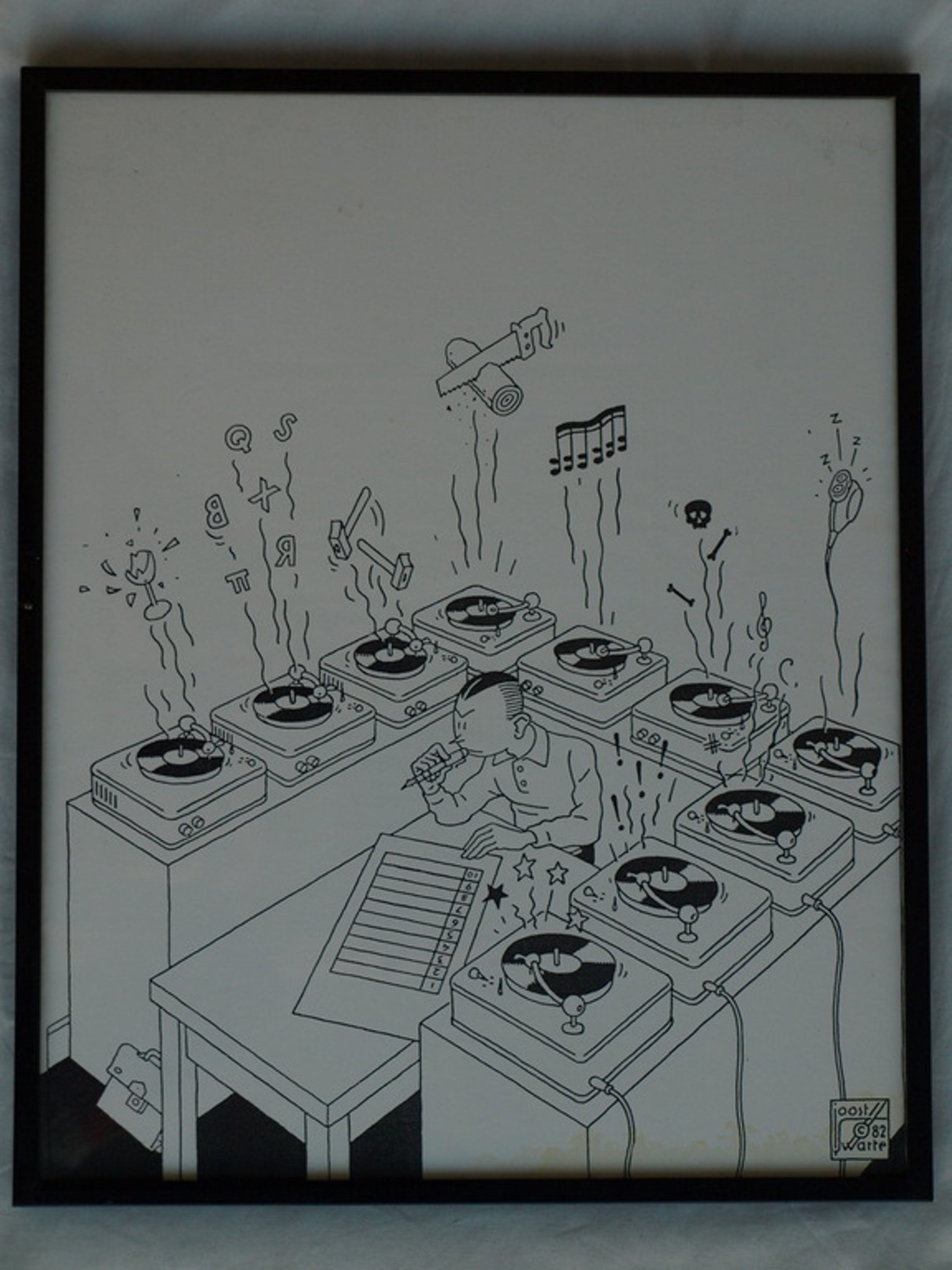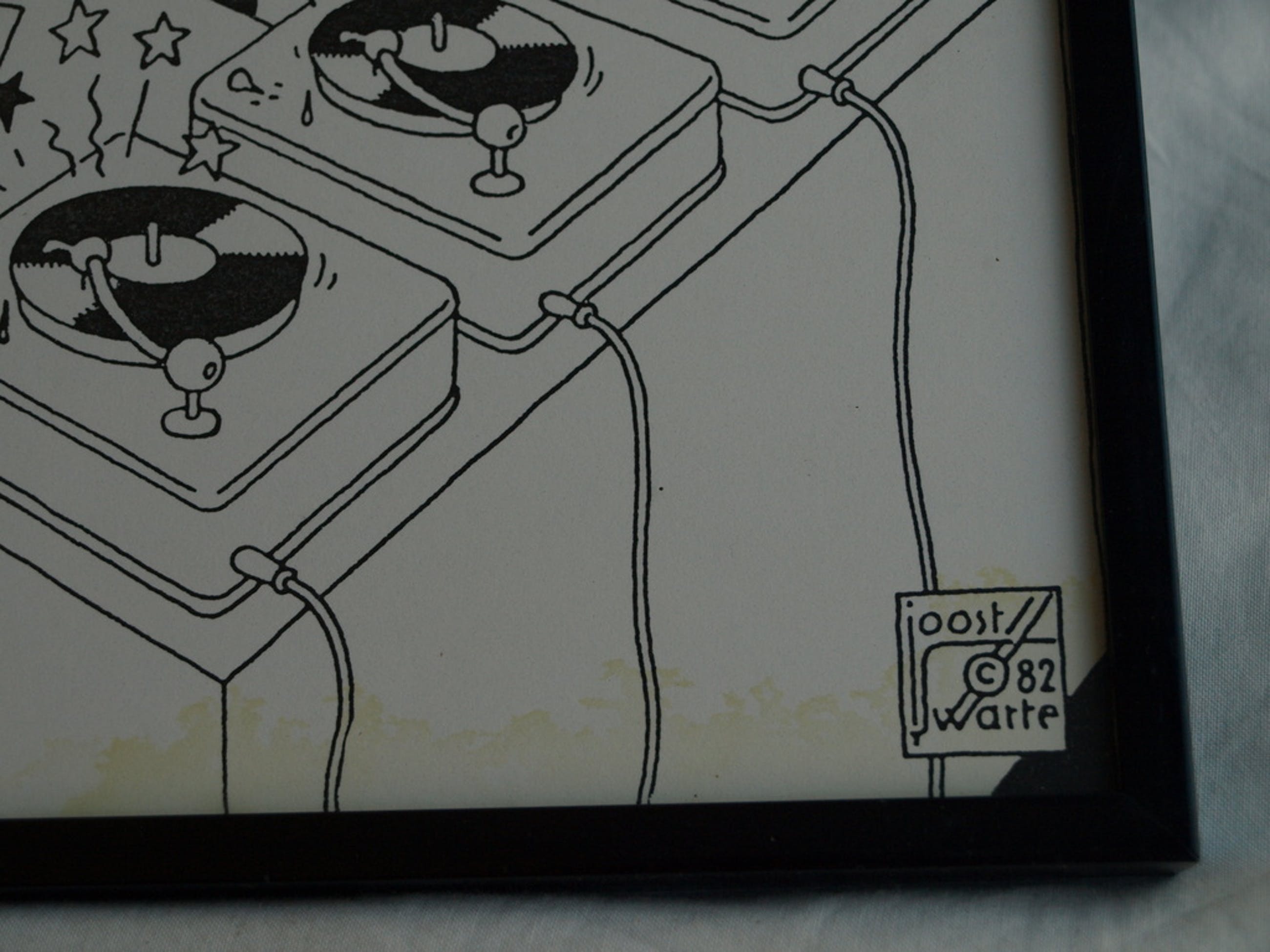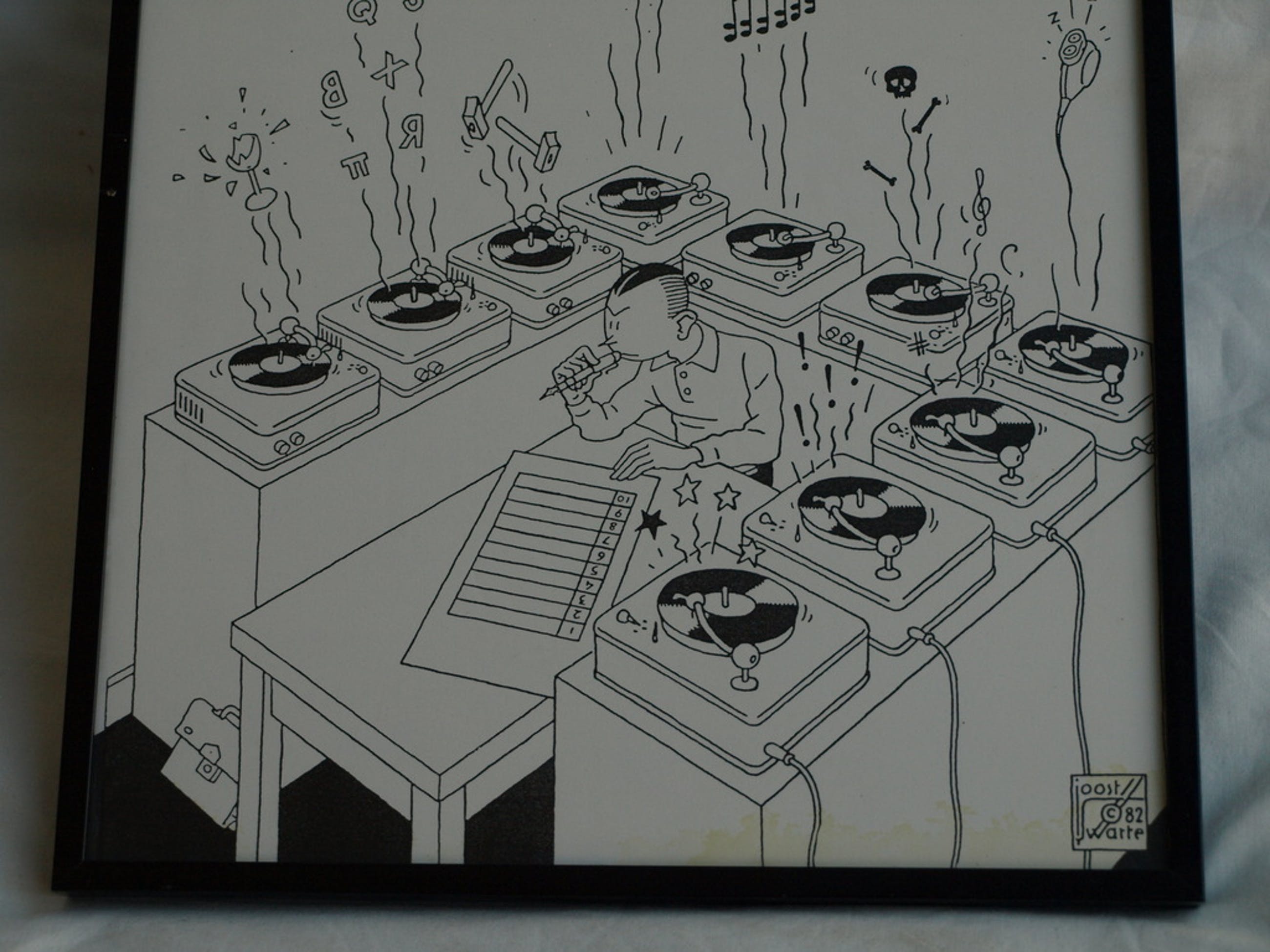 Een zeefdrukje van de Nederlandse striptekenaar en grafisch ontwerper Joost Swarte (1947) met een afbeelding die gebruikt is voor de cover van de LP: "I Don't Care The No Fun And Plurex Singles", een verzamelplaat met Nederlandse Punk en Rock-singles. Joost Swarte deed voor deze LP het artwork.