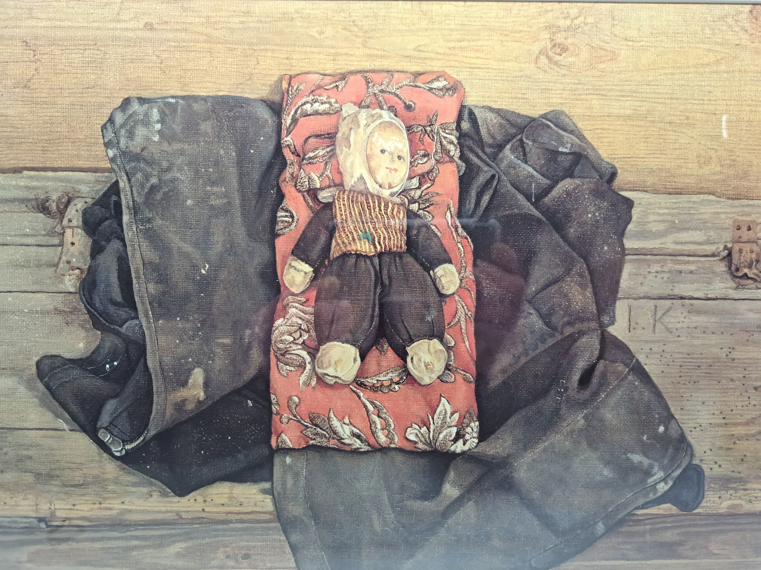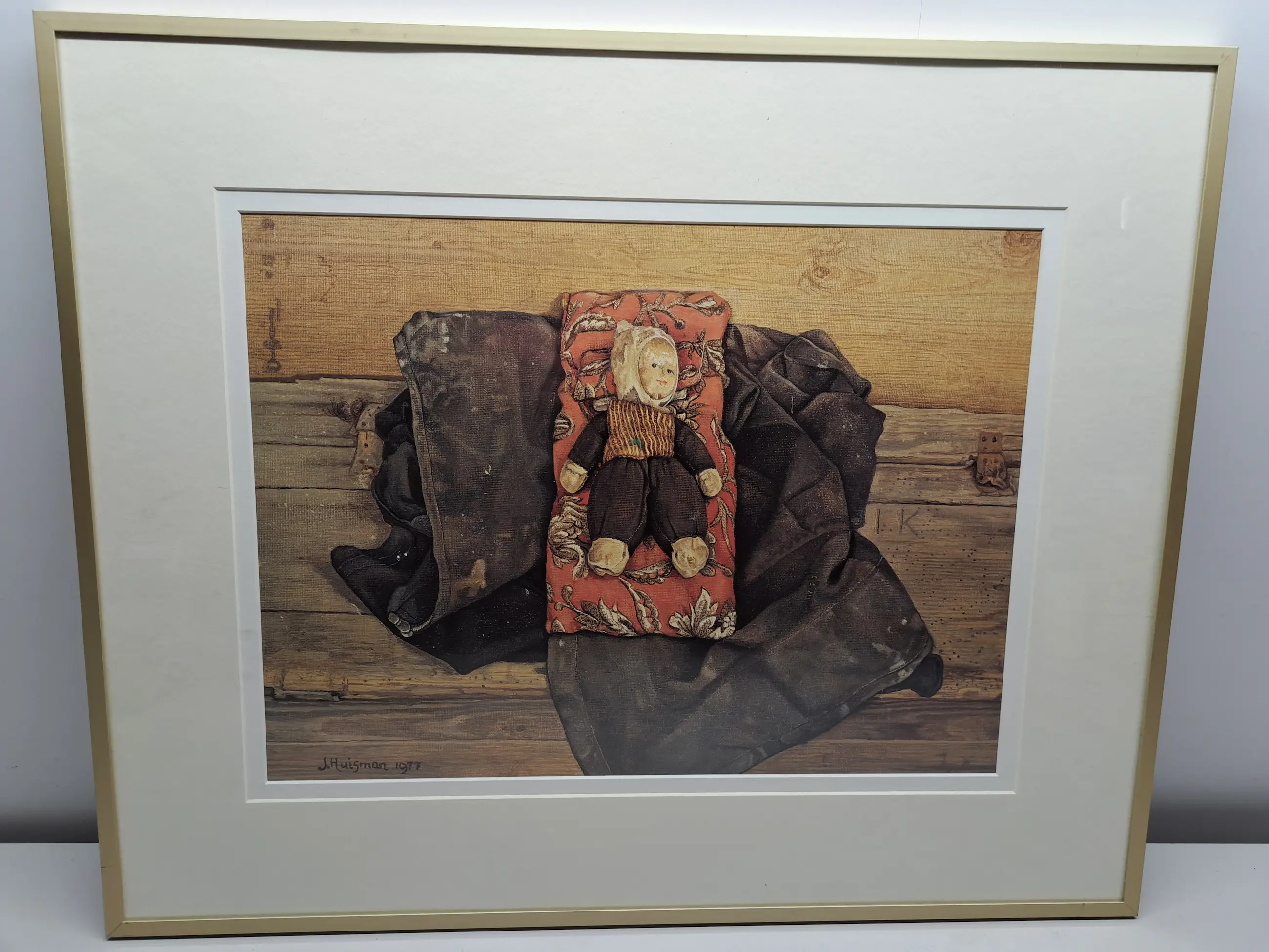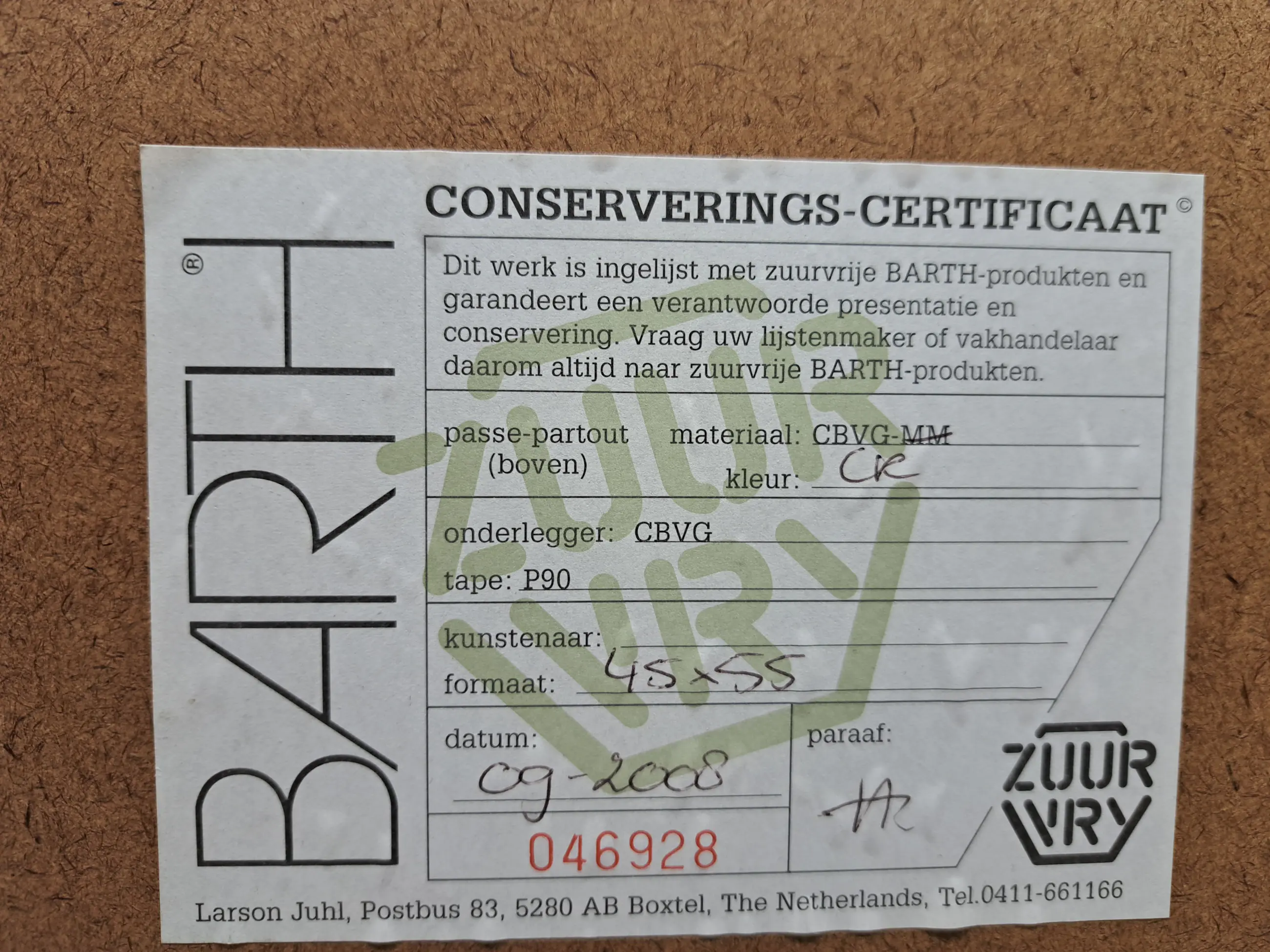 Zuurvrij ingelijst achter een dubbel passepartout en glas.
