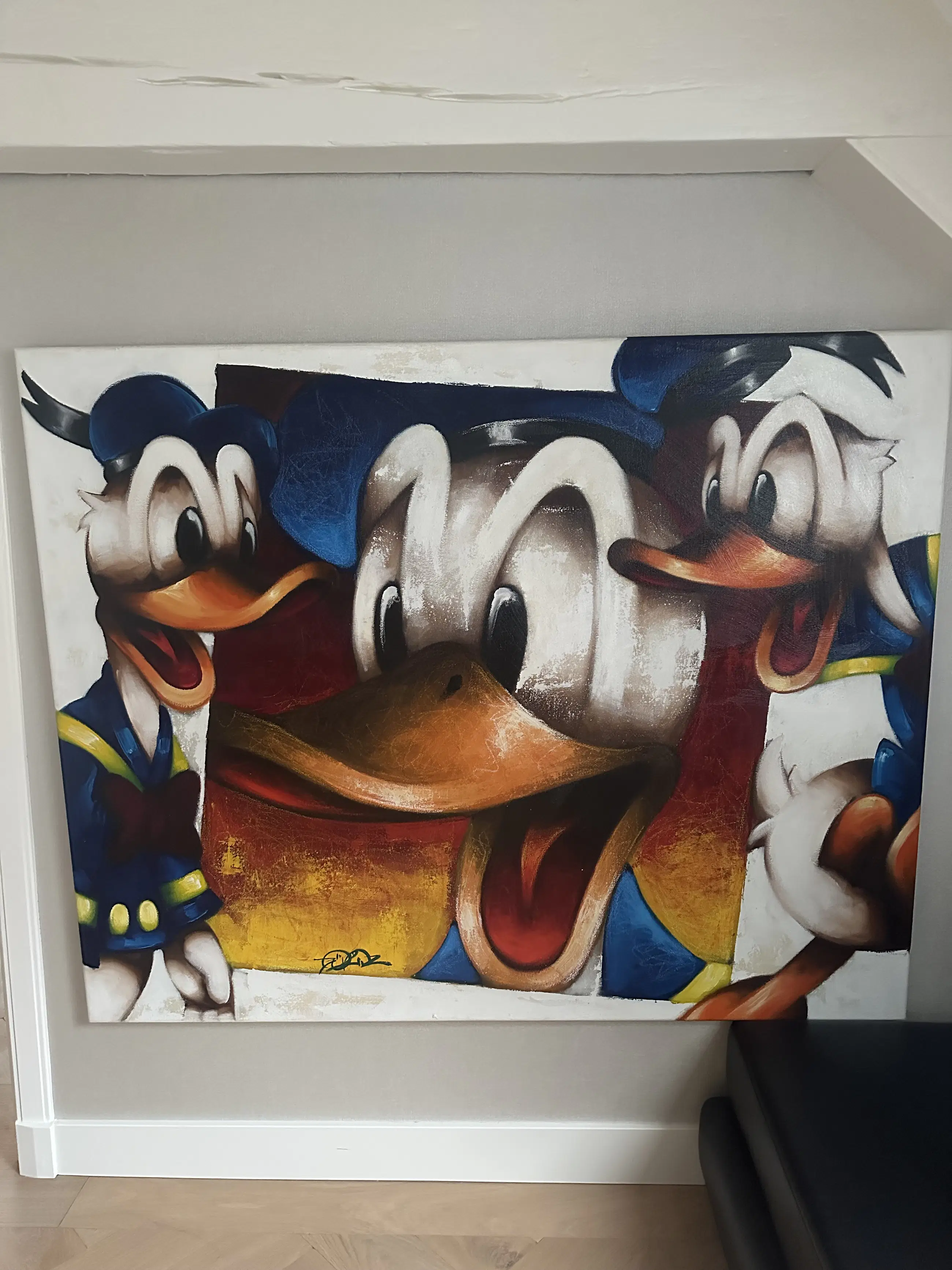 Een originele creatie van de getalenteerde kunstenaar Jorg Döring, bekend om zijn speelse en kleurrijke stijl. Dit schilderij toont Donald Duck op een karakteristieke en levendige manier.