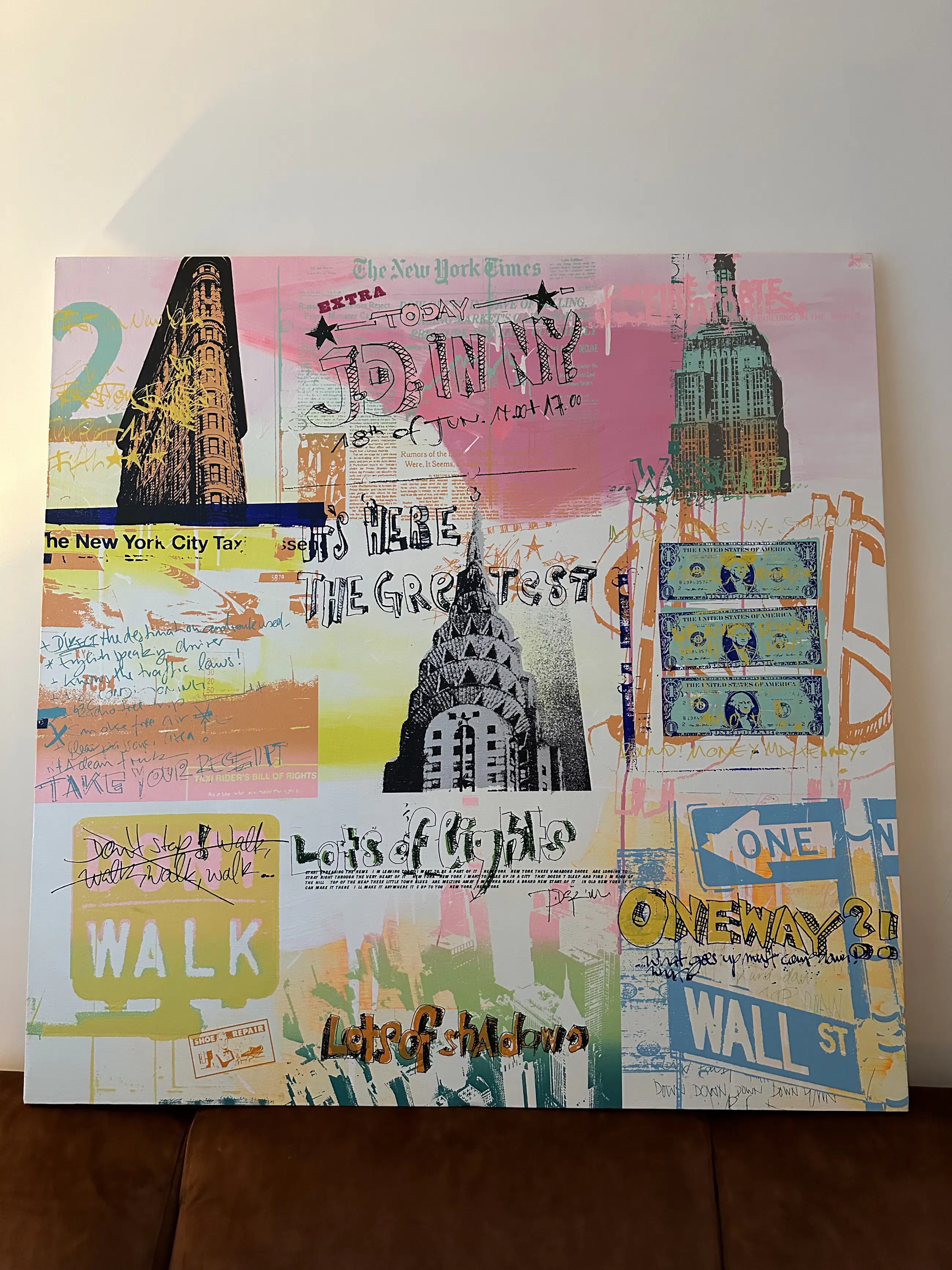 Combinatie van zeefdruk en schilderkunst, geïnspireerd op New York.