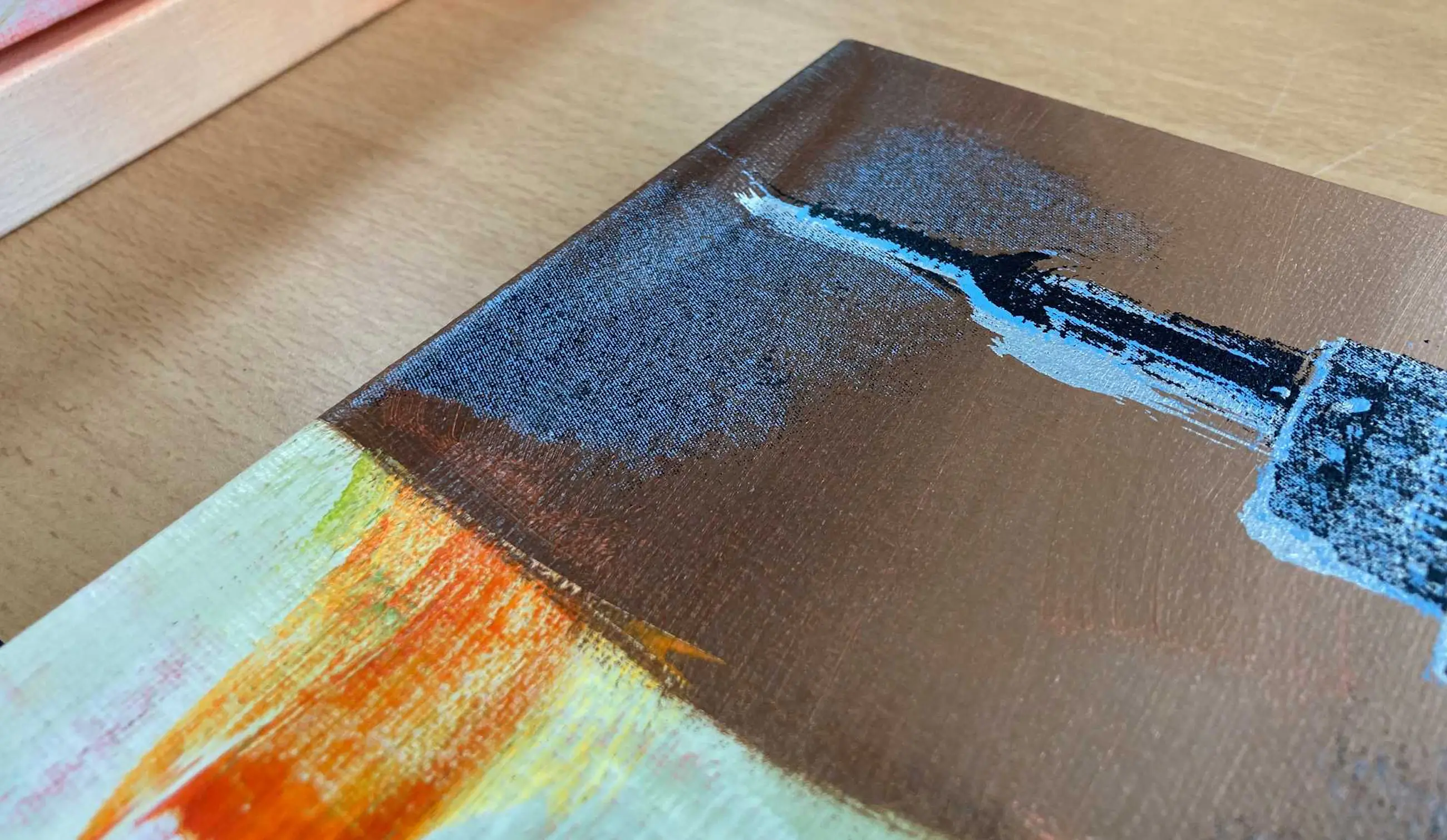 | het doek is in de hoek rechtsboven ingedeukt, zie detailfoto. Verder wat slijtage langs de randen | |||||||||||
