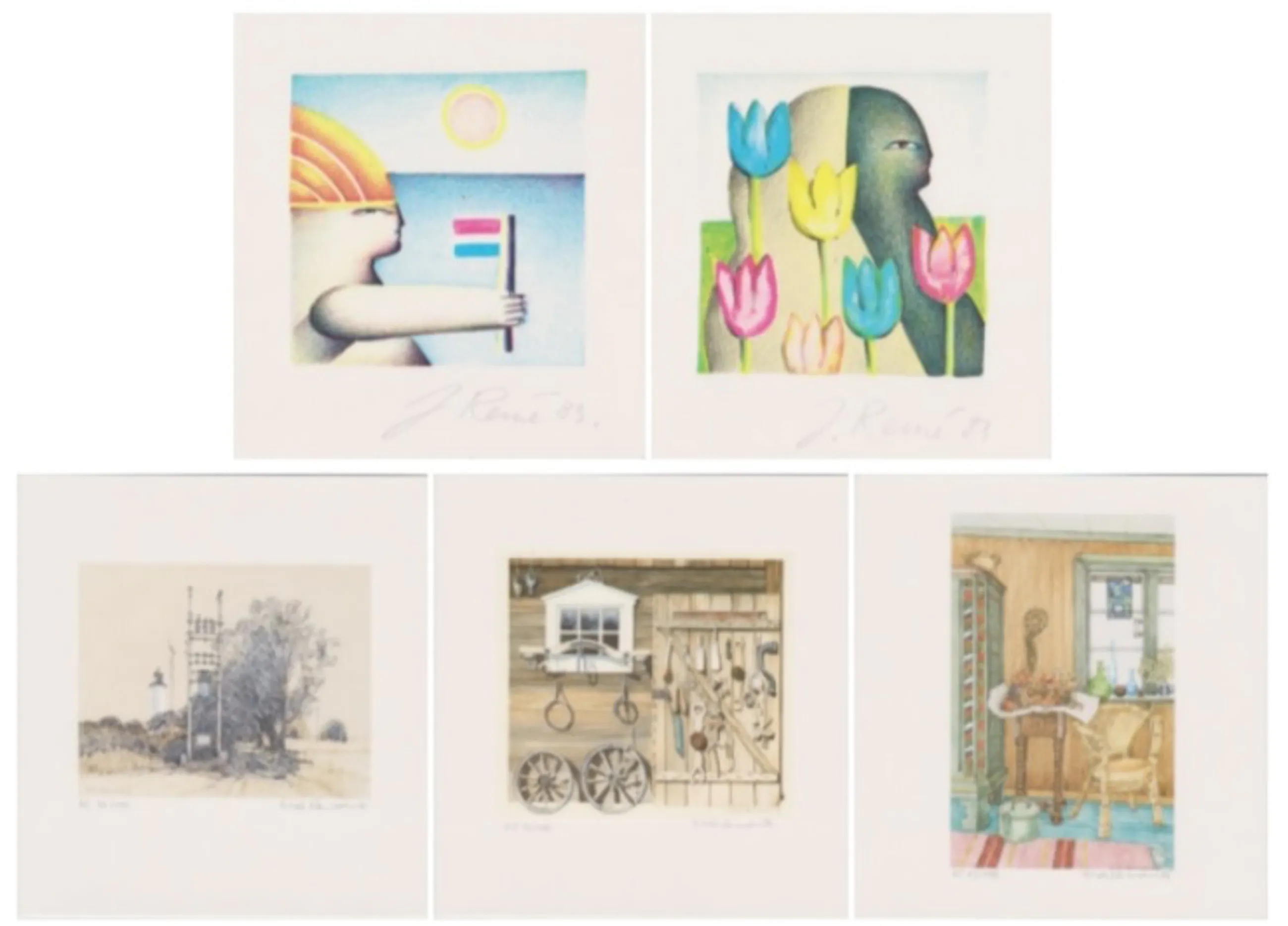 Jörg Remé - e.a: vijf handgesigneerde zeefdrukken: Diverse Composities kopen? Bied vanaf 1!