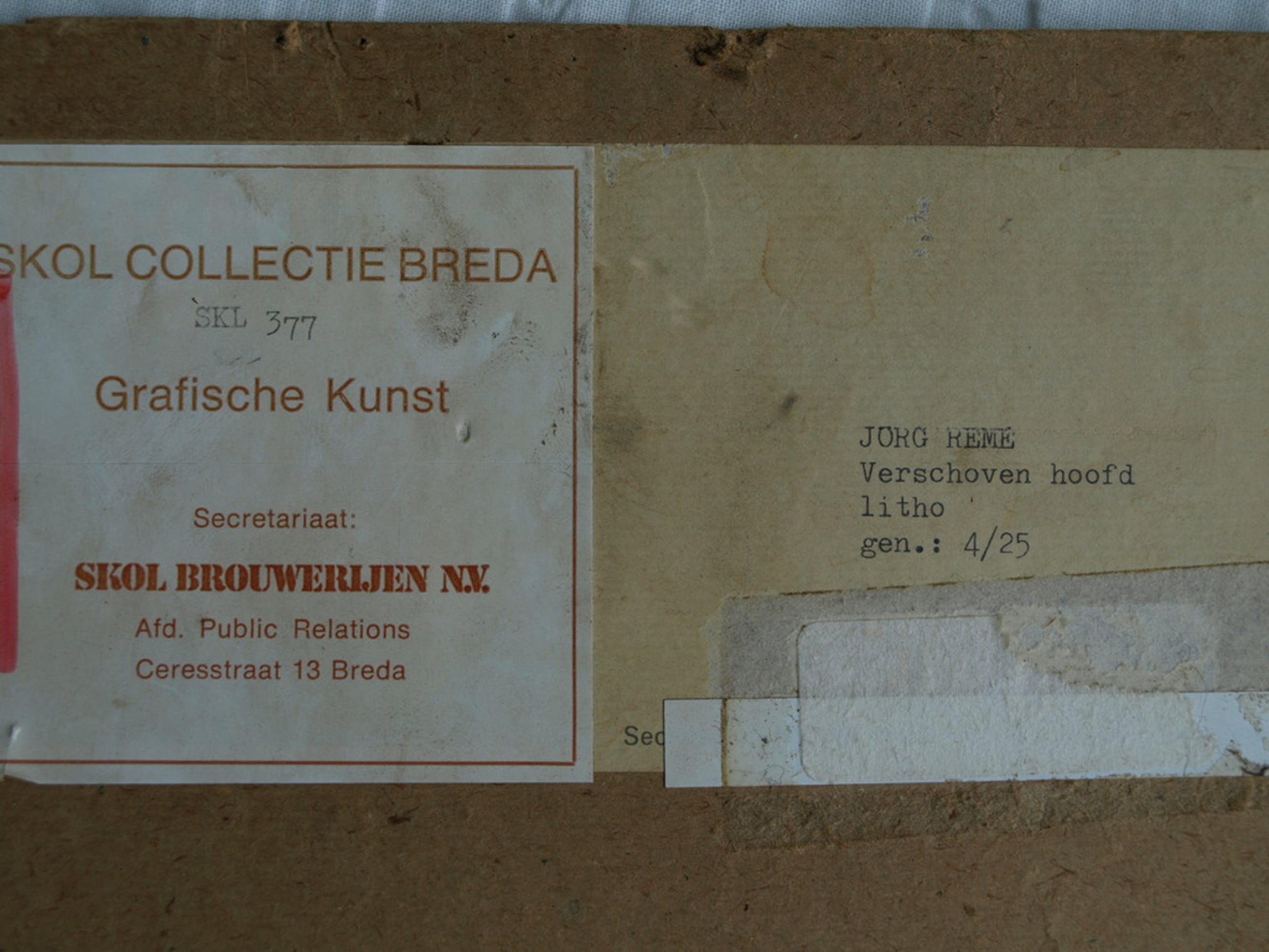 Een litho uit 1971 van de Duits / Nederlandse kunstenaar Jörg Remé: “Verschoven hoofd”.