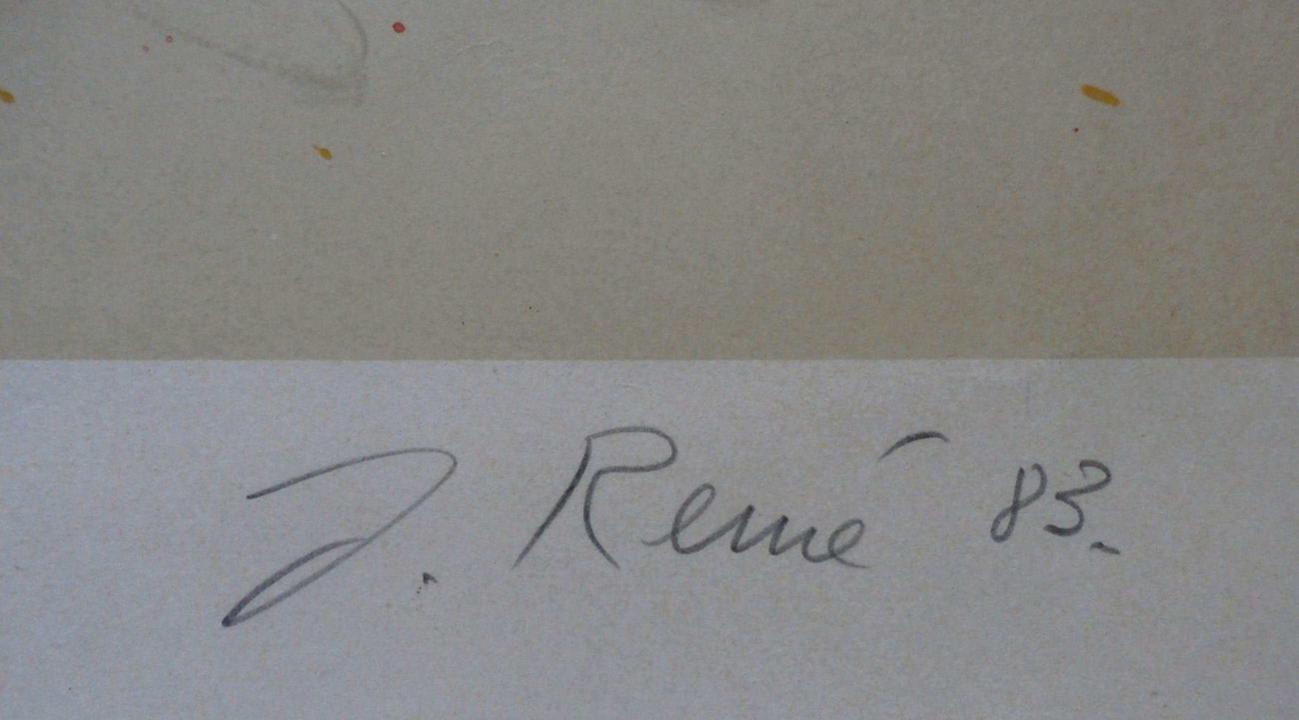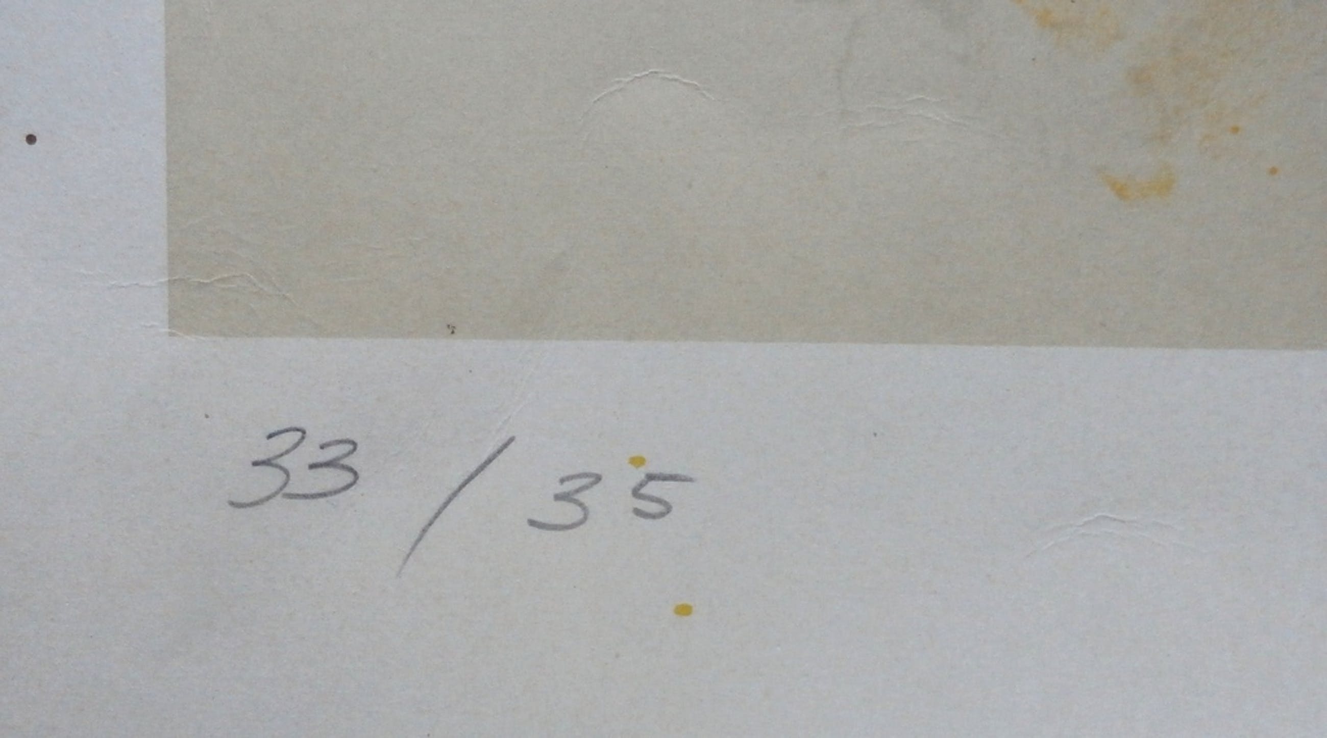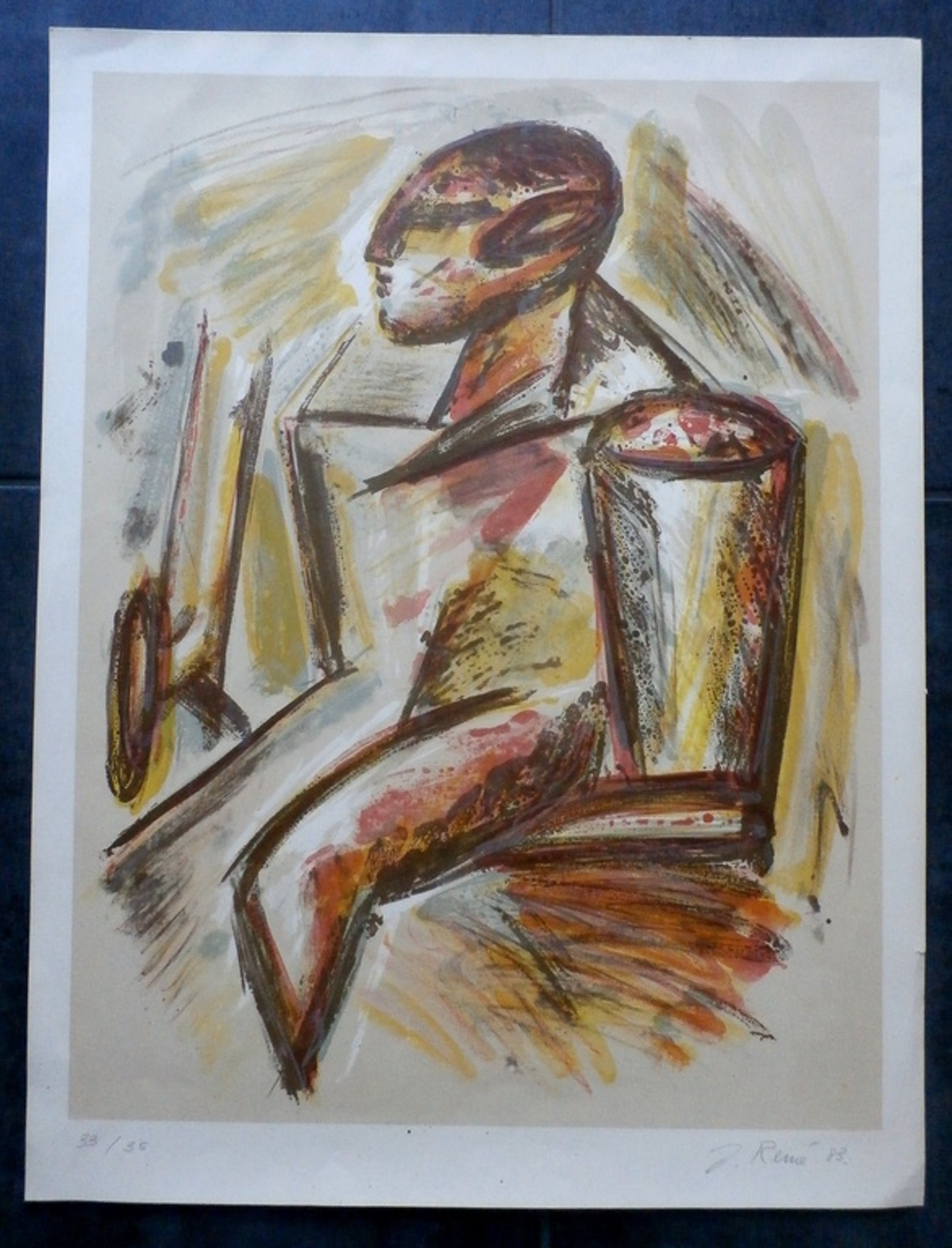 Litho van Jorg Reme uit 1983. Afmetingen blad: H74,5 x b57,5 cm; Afmetingen voorstelling: H67,5 x b52 cm; Gesigneerd, rechtsonder, door de kunstenaar met potlood. Nummer: 33/35.