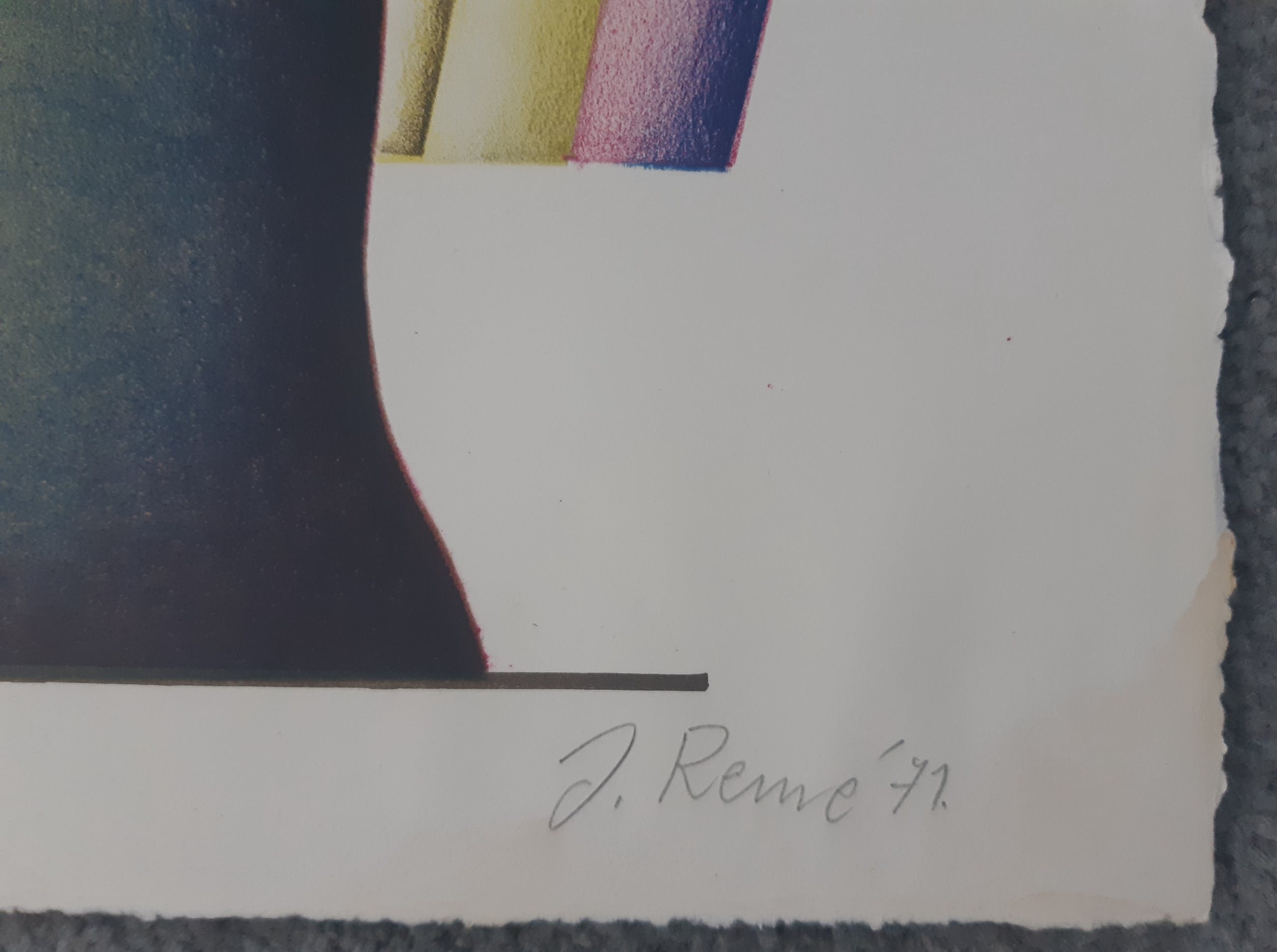 Kenmerkend werk van Jörg Remé, op geschept papier. Met potlood gesigneerd, genummerd 5/25 en gedateerd. Niet ingelijst.