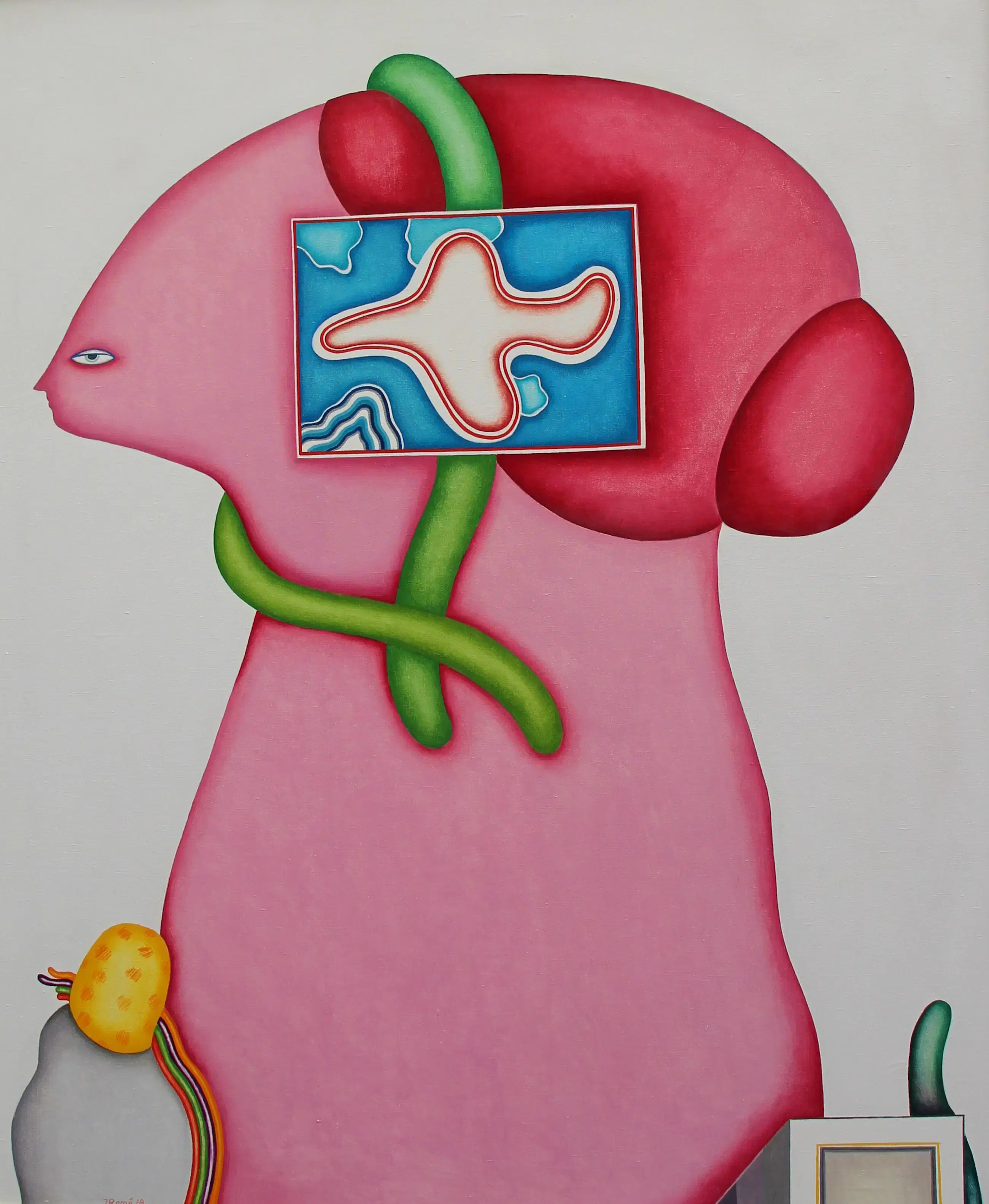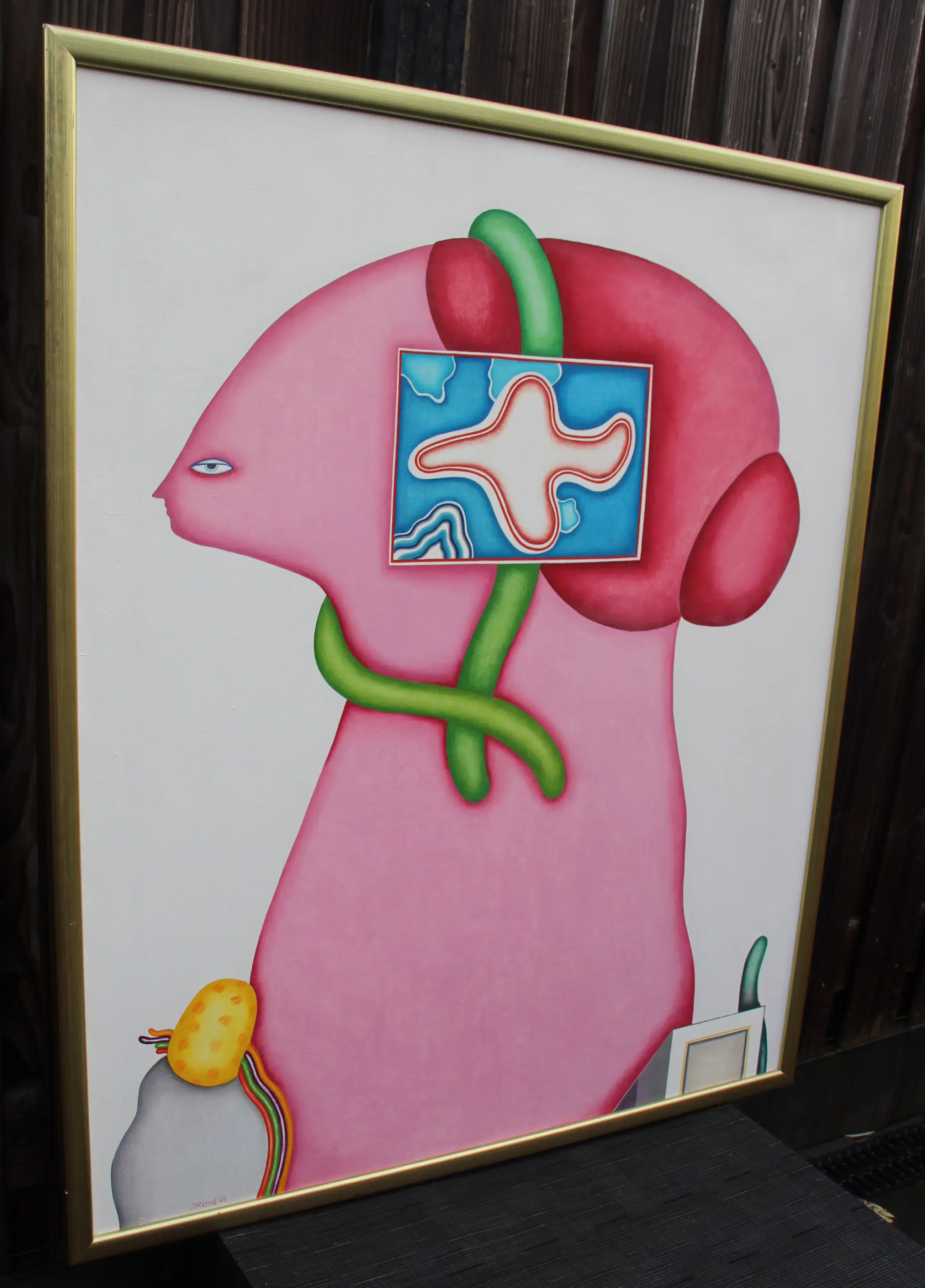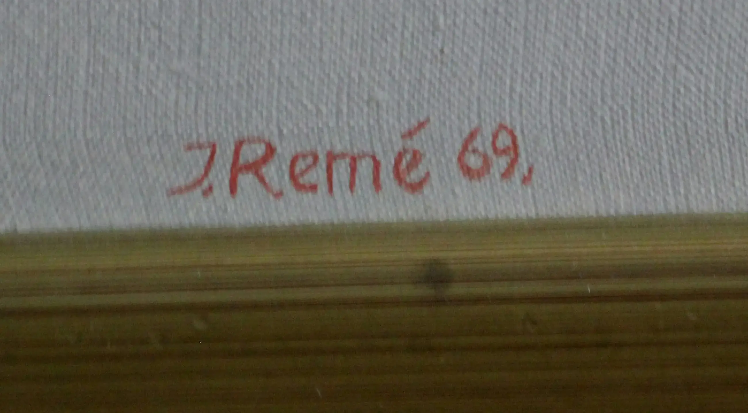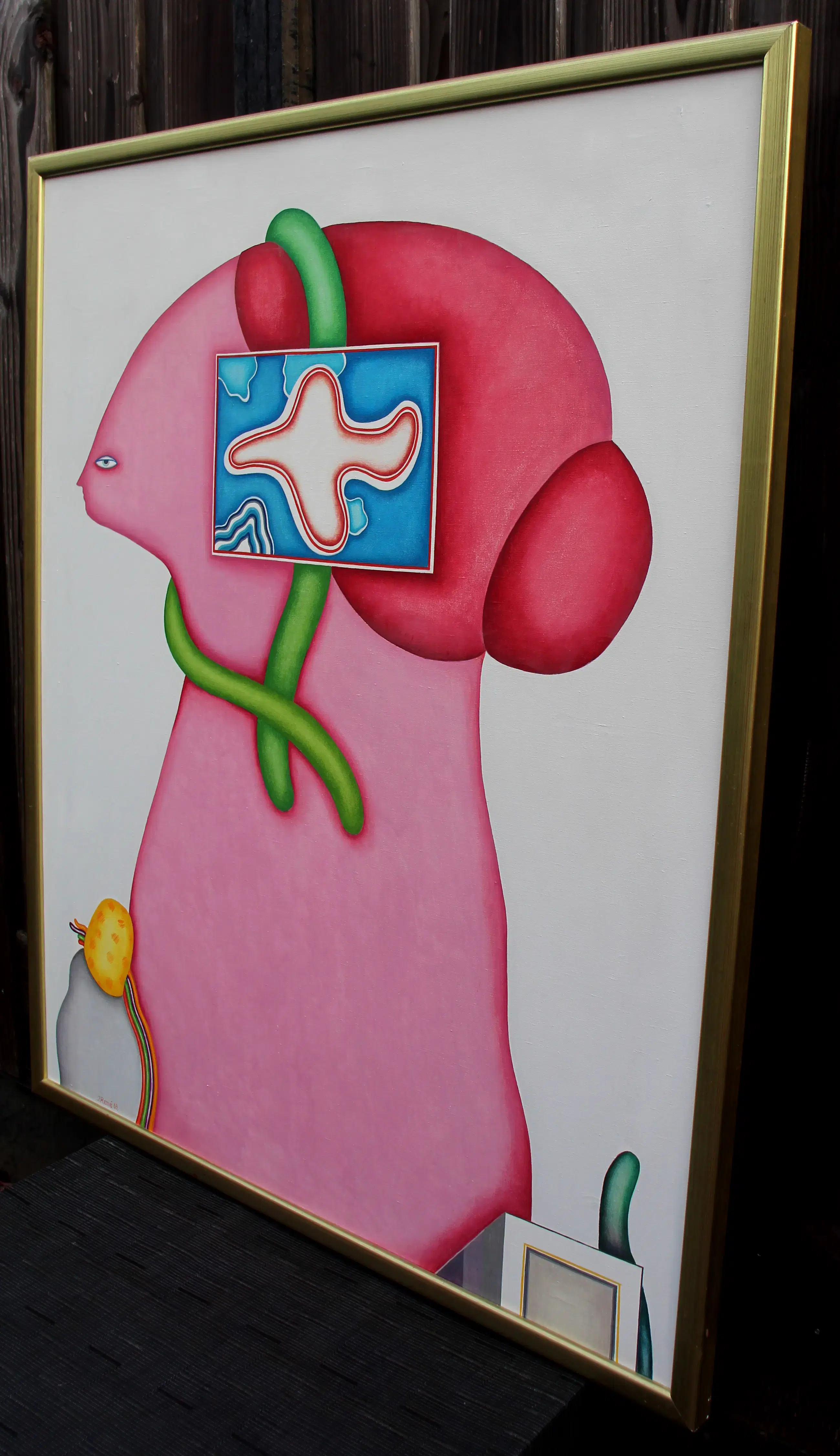 Olieverf op doek van Jörg Remé uit 1969. Afmetingen incl lijst: H124.5 x b104.5cm. Afmetingen doek: H120 x b99cm. Het werk is midden onder gesigneerd en gedateerd door de kunstenaar. De authenticiteit van het aangeboden werk wordt volledig gegarandeerd. Een certificaat van echtheid kan, op aanvraag, worden gemaild.