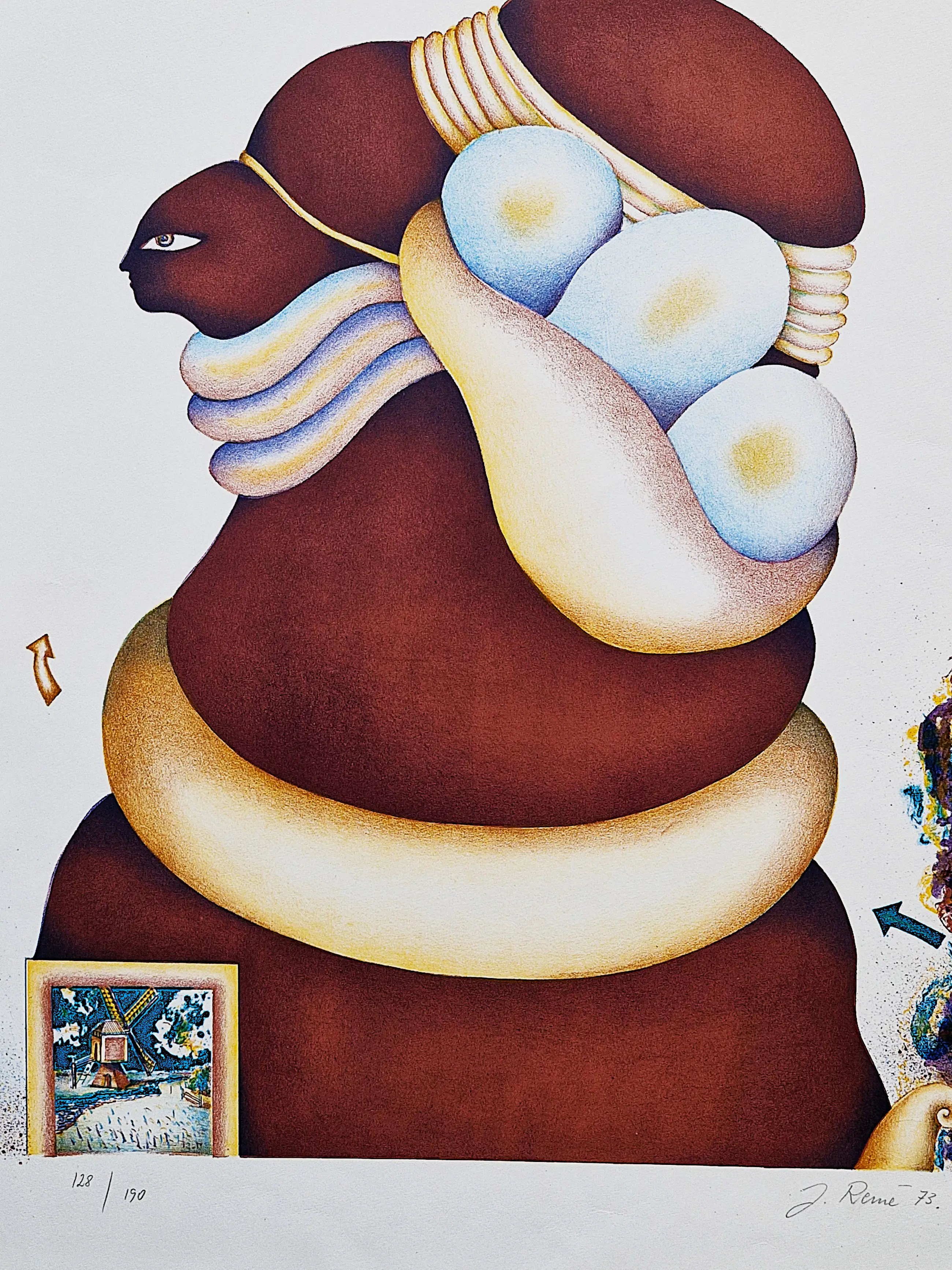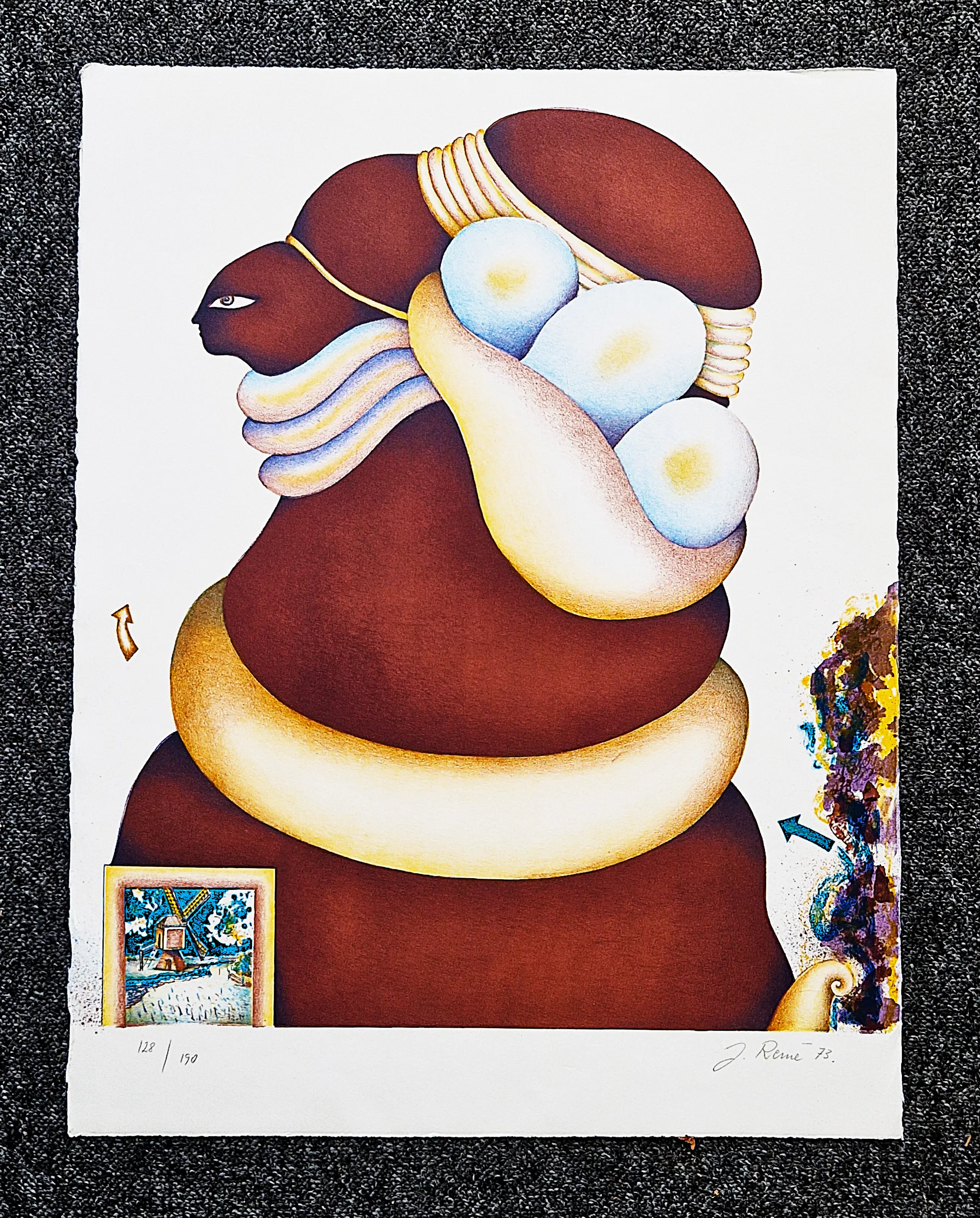 - Mooie en grote Lithografie op papier, in 1973 gemaakt door de Duitse kunstenaar jorg Reme (Danzig 1941-). Verkeert in zeer goede conditie met erg frisse kleuren. Nummer 128 in een totaal oplage van 190 exemplaren. Losbladig (niet ingelijst). Met potlood door de kunstenaar gesigneerd.