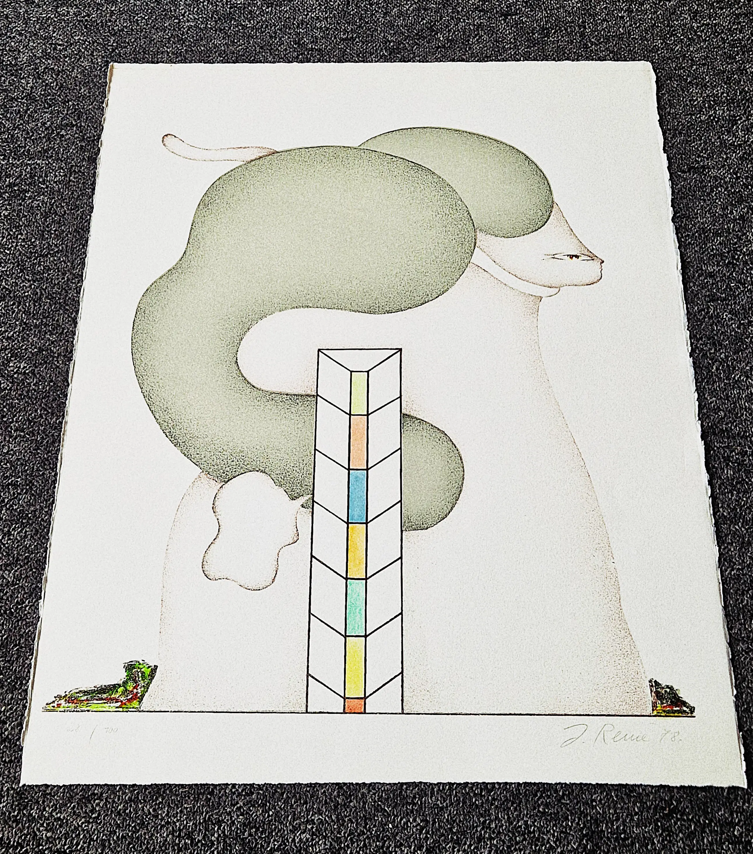 - Mooie en grote kleuren -lithografie op papier, in 1978 gemaakt door de Duitse kunstenaar jorg Reme (Danzig 1941-). Verkeert in zeer goede conditie met erg frisse kleuren. Nummer 28 in een beperkte oplage van 100 exemplaren. Losbladig (niet ingelijst). Met potlood door de kunstenaar gesigneerd.