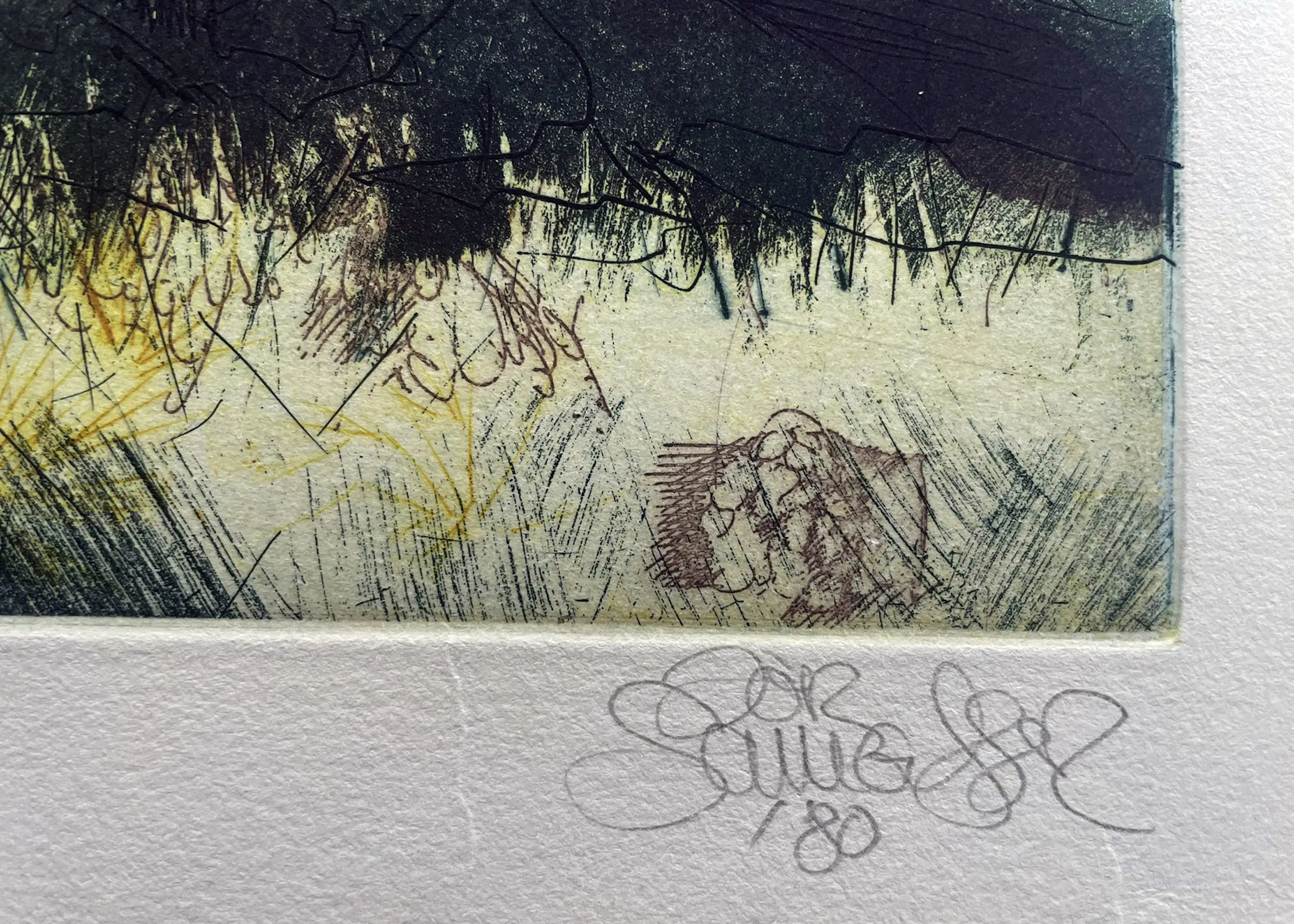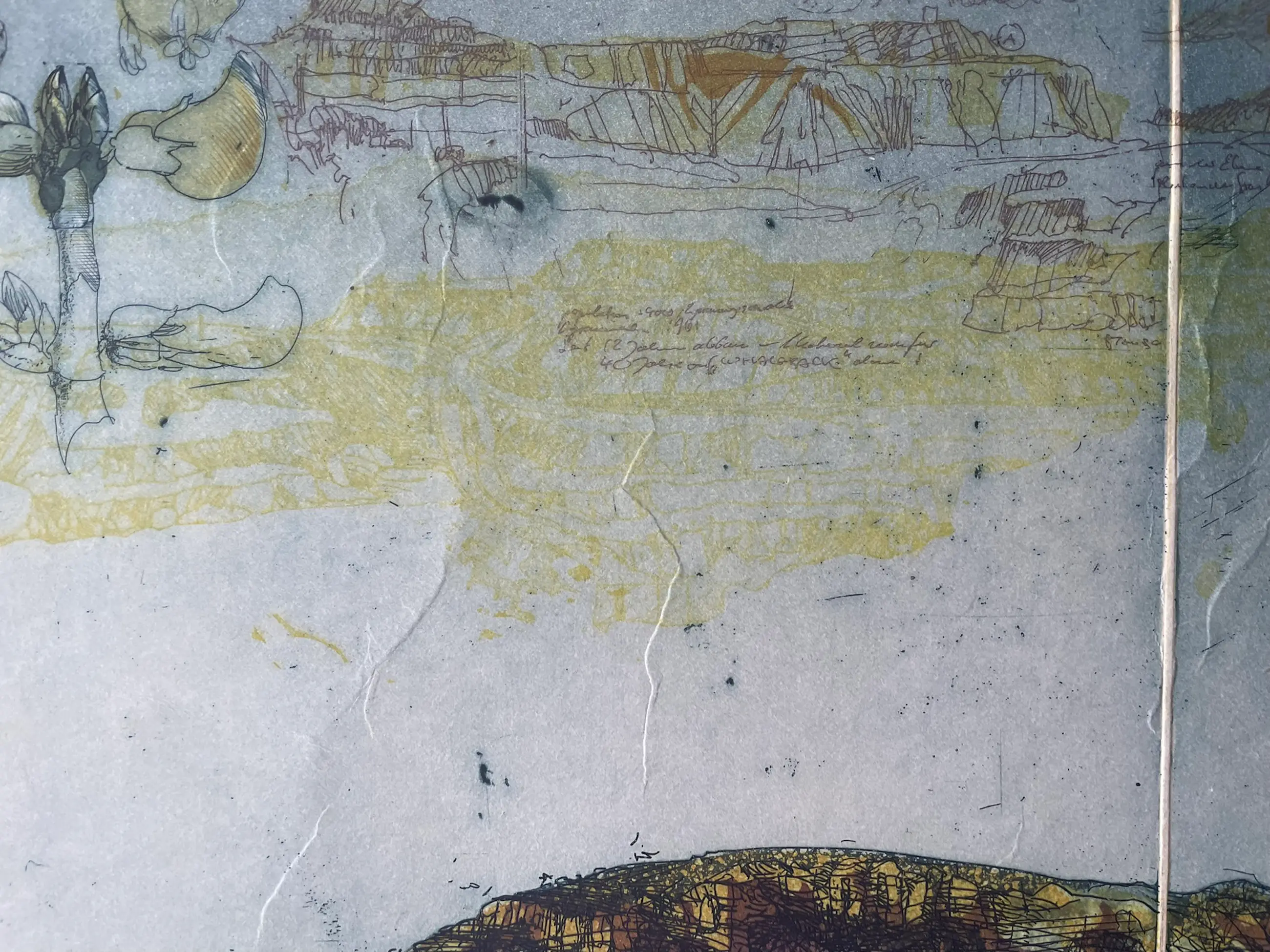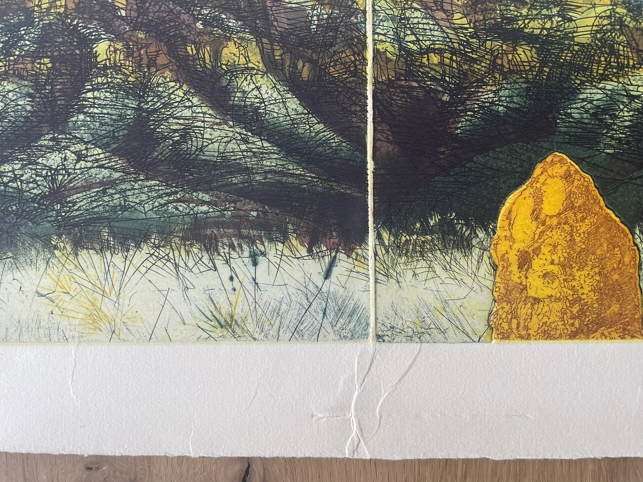 Rijk gedetailleerde kleurets van de Duits/Australische kunstenaar Jörg Schmeisser. Proefdruk, waarschijnlijk door foute instelling pers enkele vouwen in het papier. Zie foto's.