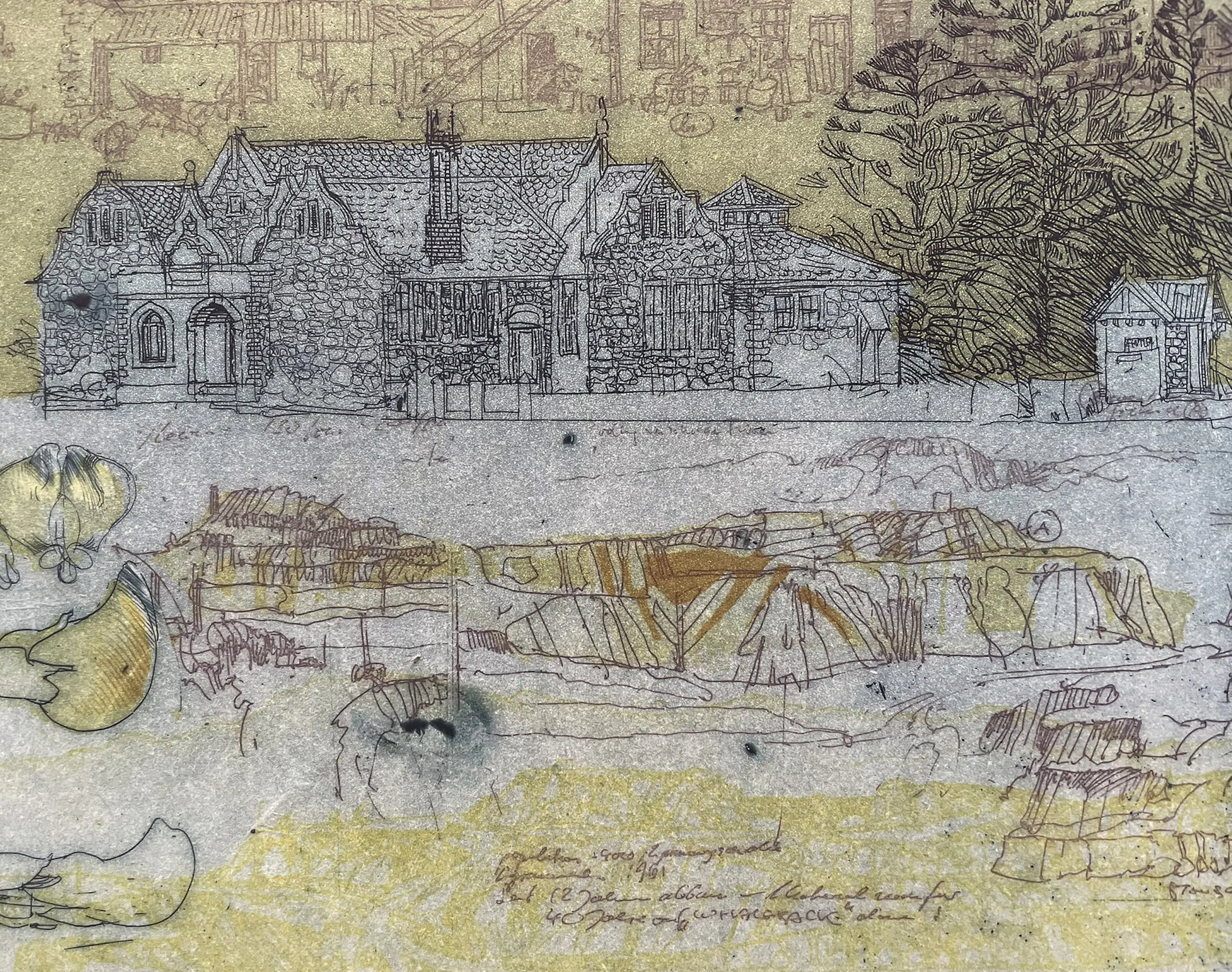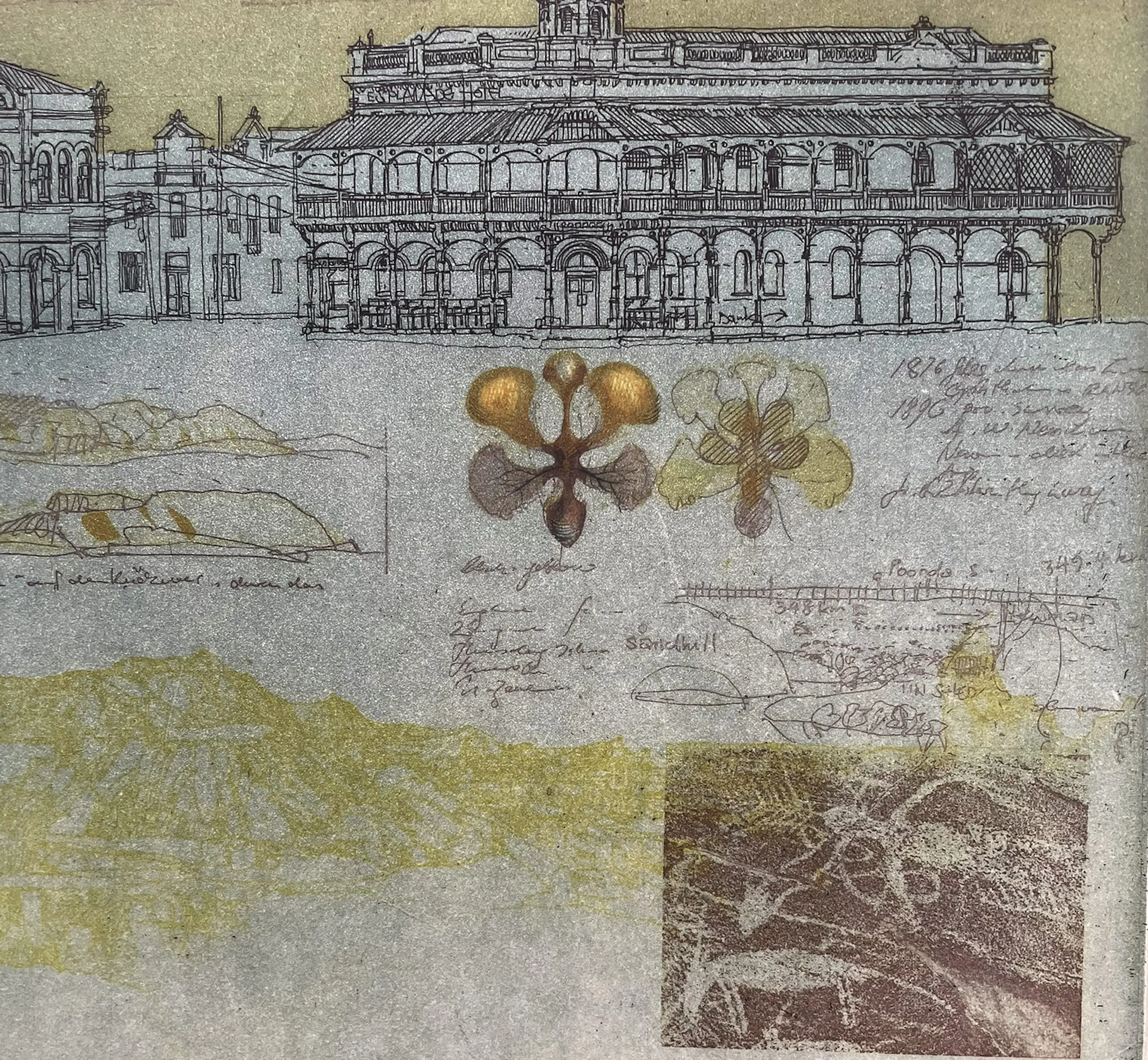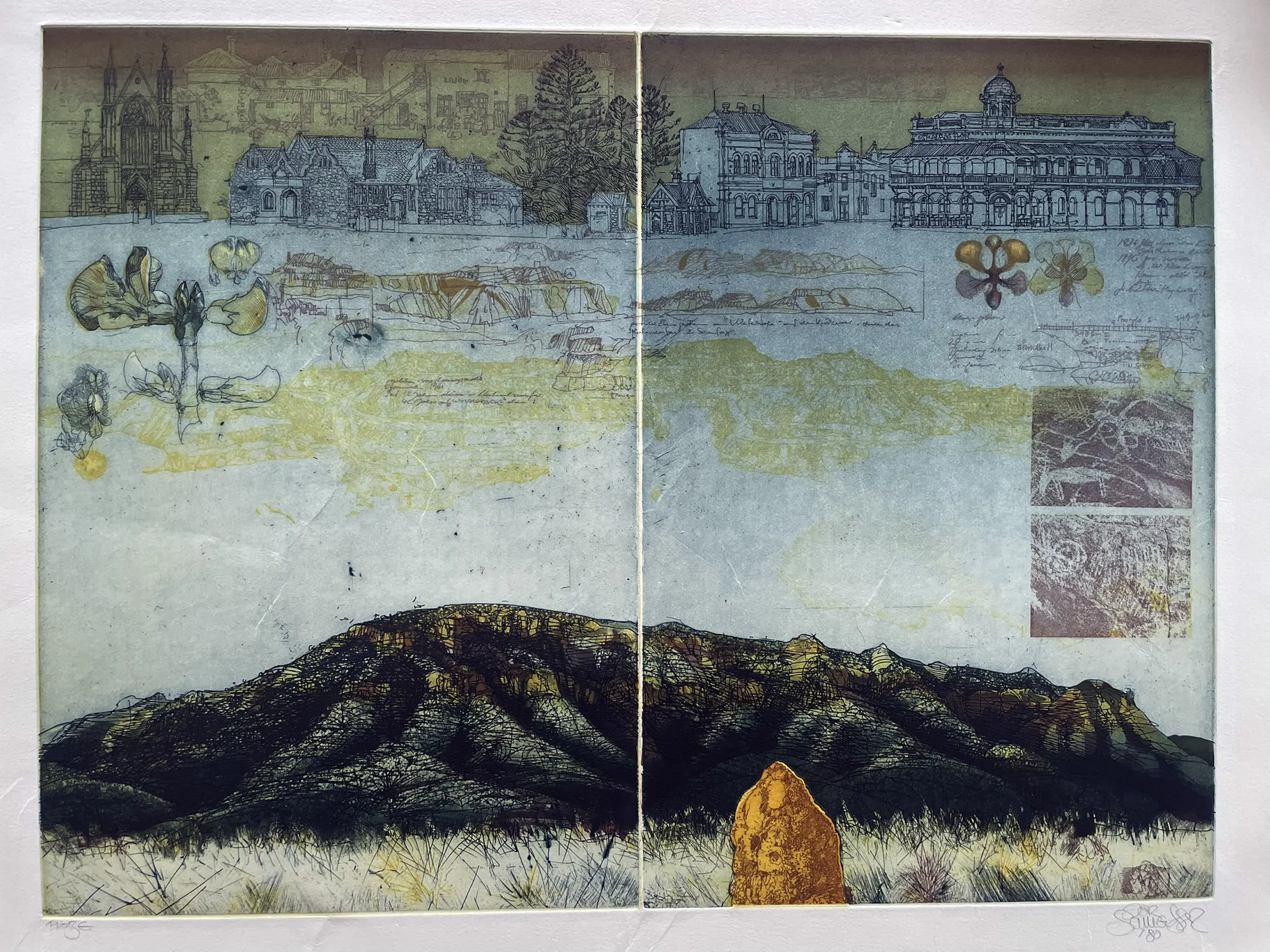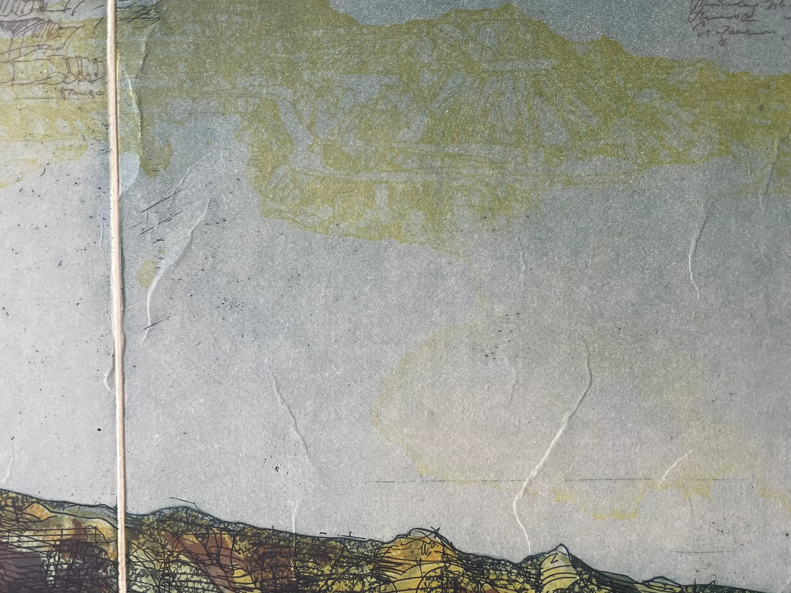 Rijk gedetailleerde kleurets van de Duits/Australische kunstenaar Jörg Schmeisser. Proefdruk, waarschijnlijk door foute instelling pers enkele vouwen in het papier. Zie foto's.