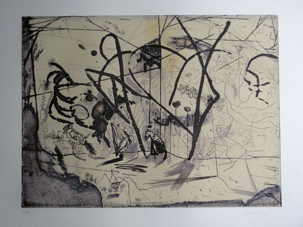 Aquatintaradierung , 30 x 40 cm ( 50 x 70 cm das Blatt ) auf festem Bütten . Mit Bleistift signiert , datiert 73 . Edition : Blatt 16 von 40 . Sehr guter Zustand . Prächtiger ,pastoser Farbauftrag . Versand 8,50 , EU 19 .-