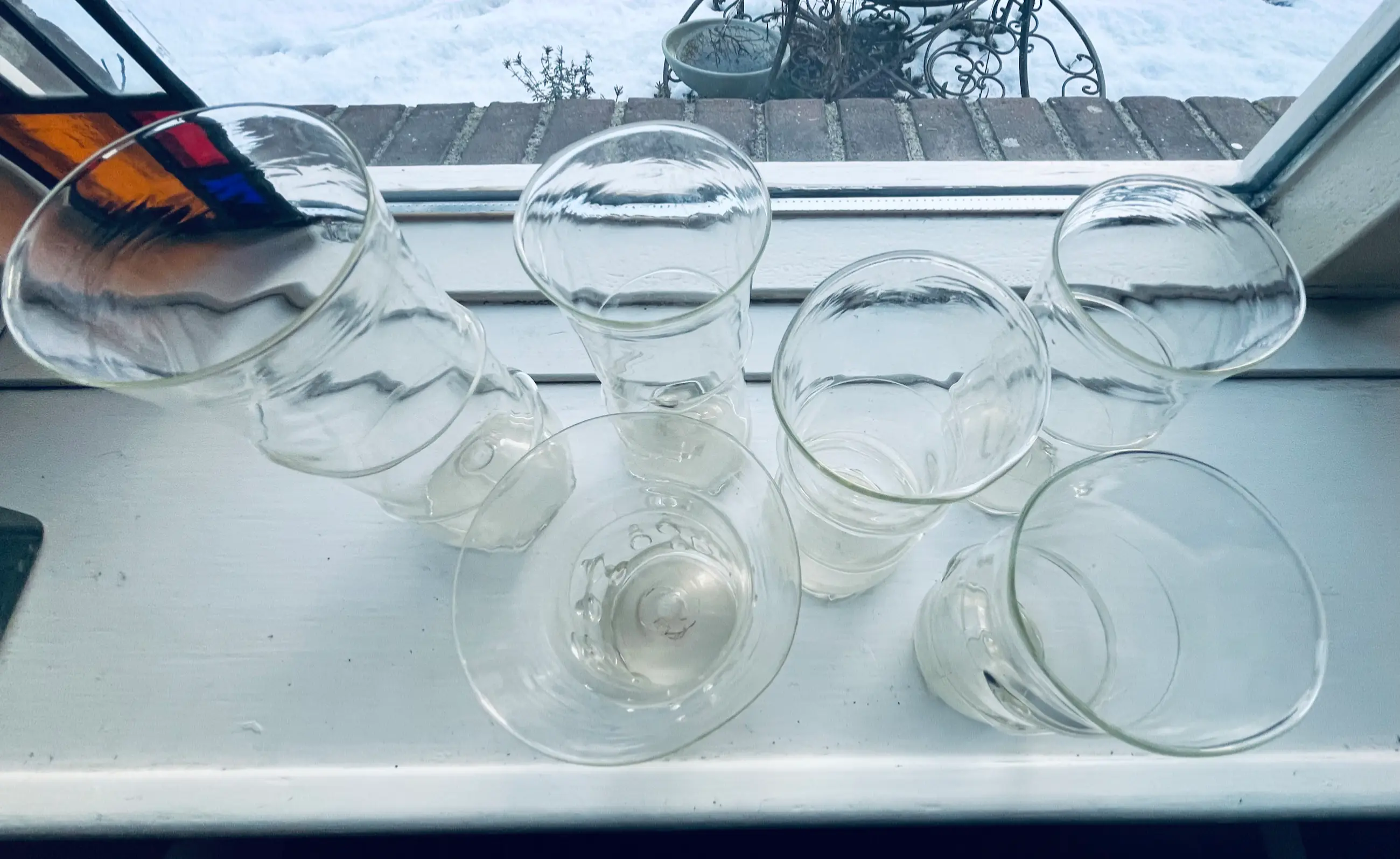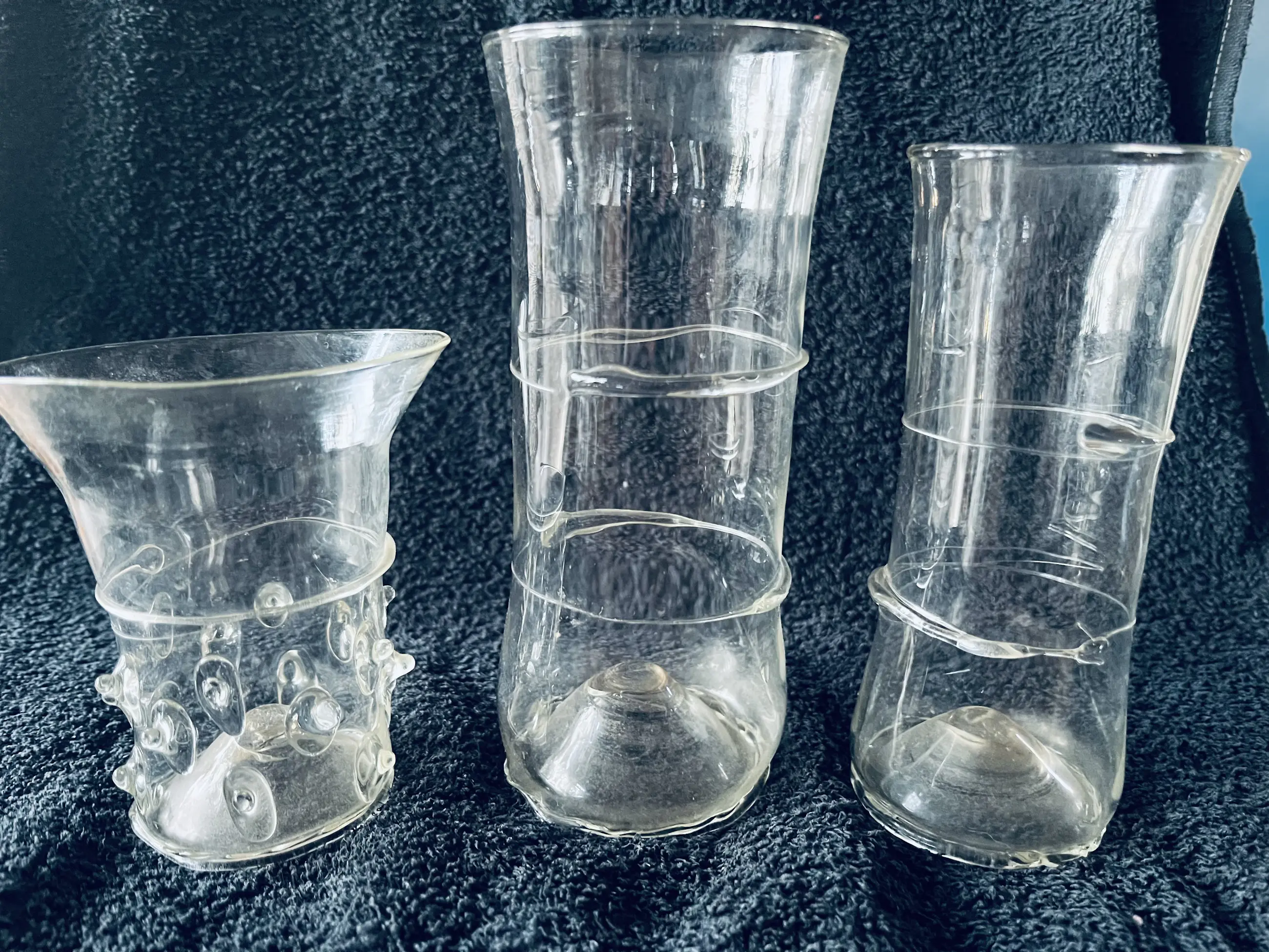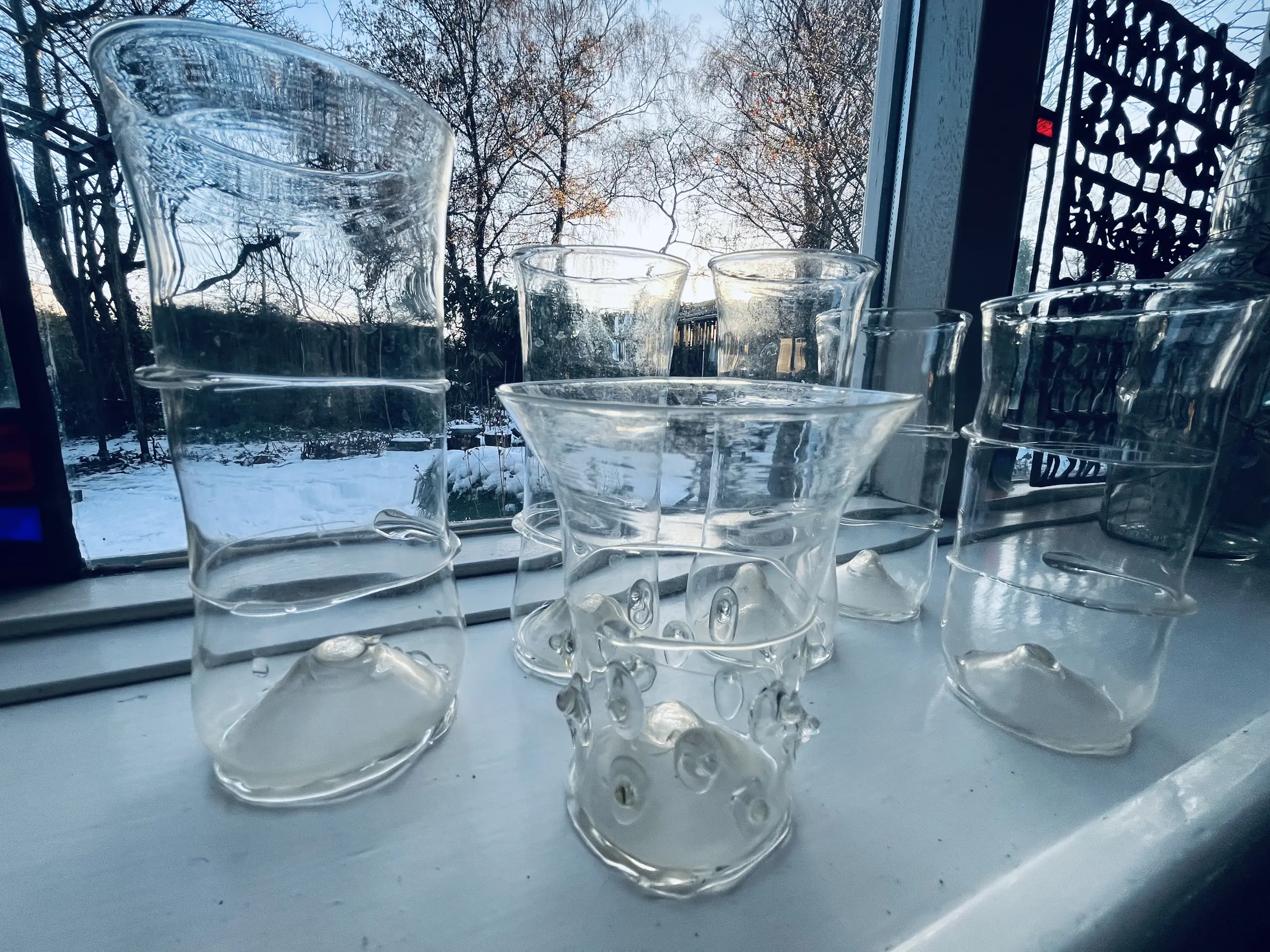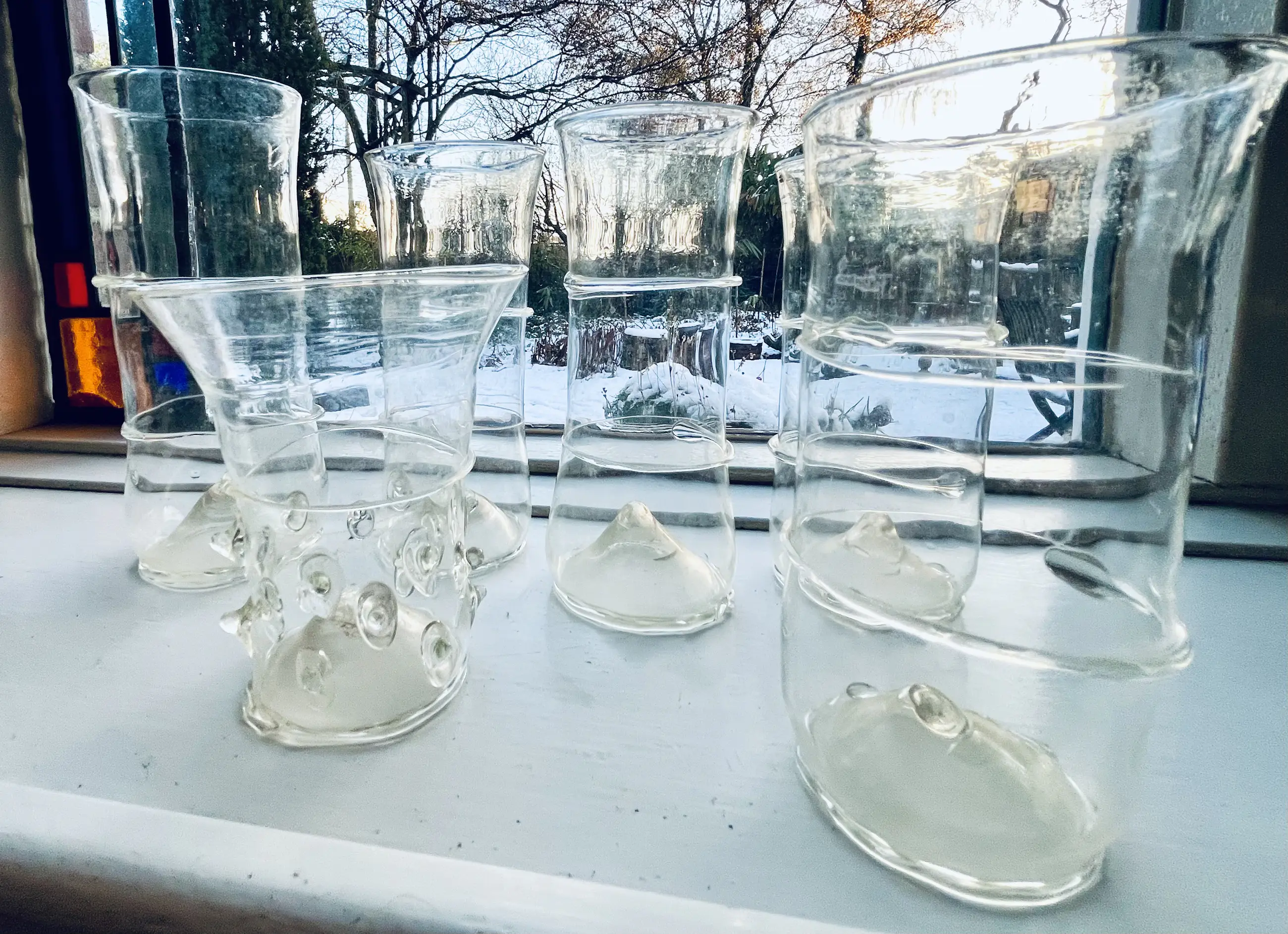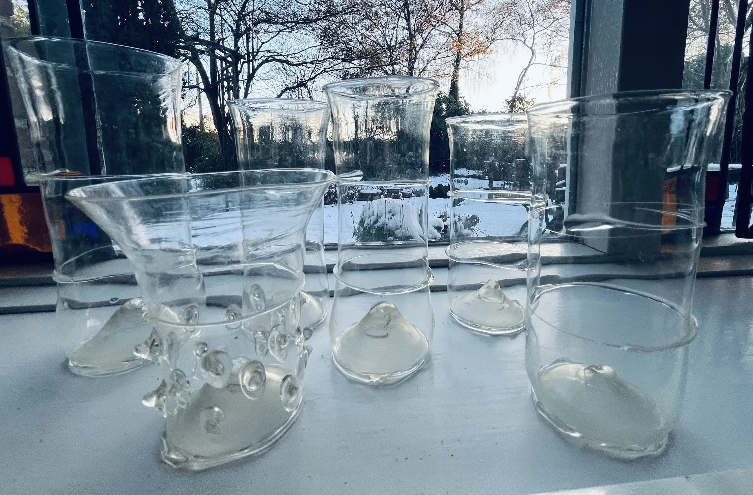 6 verschillende handgeblazen glazen van de Utrechtse glaskunstenaar Jos Böhm. Aangekocht bij veilinghuis Van Spengen.