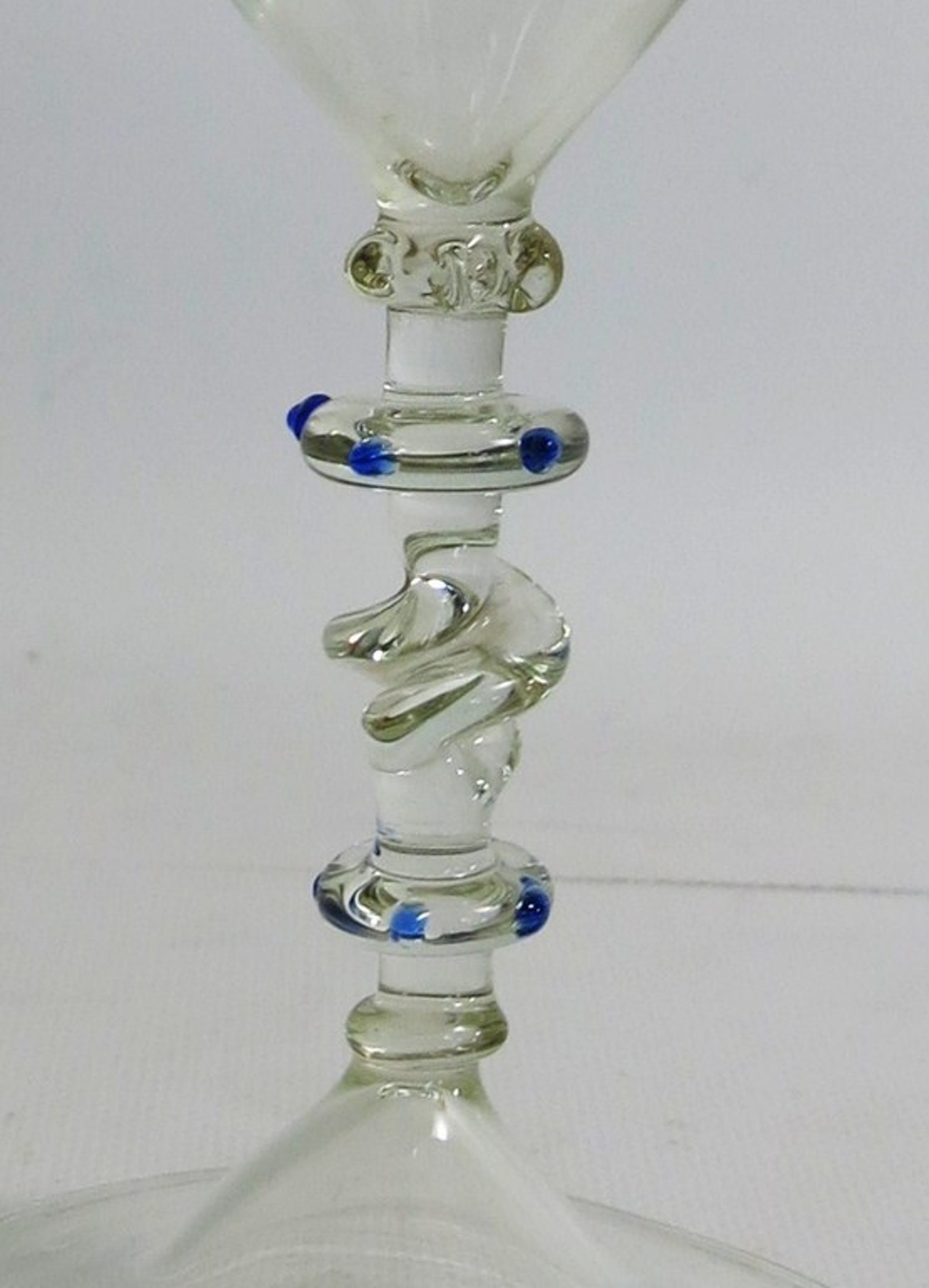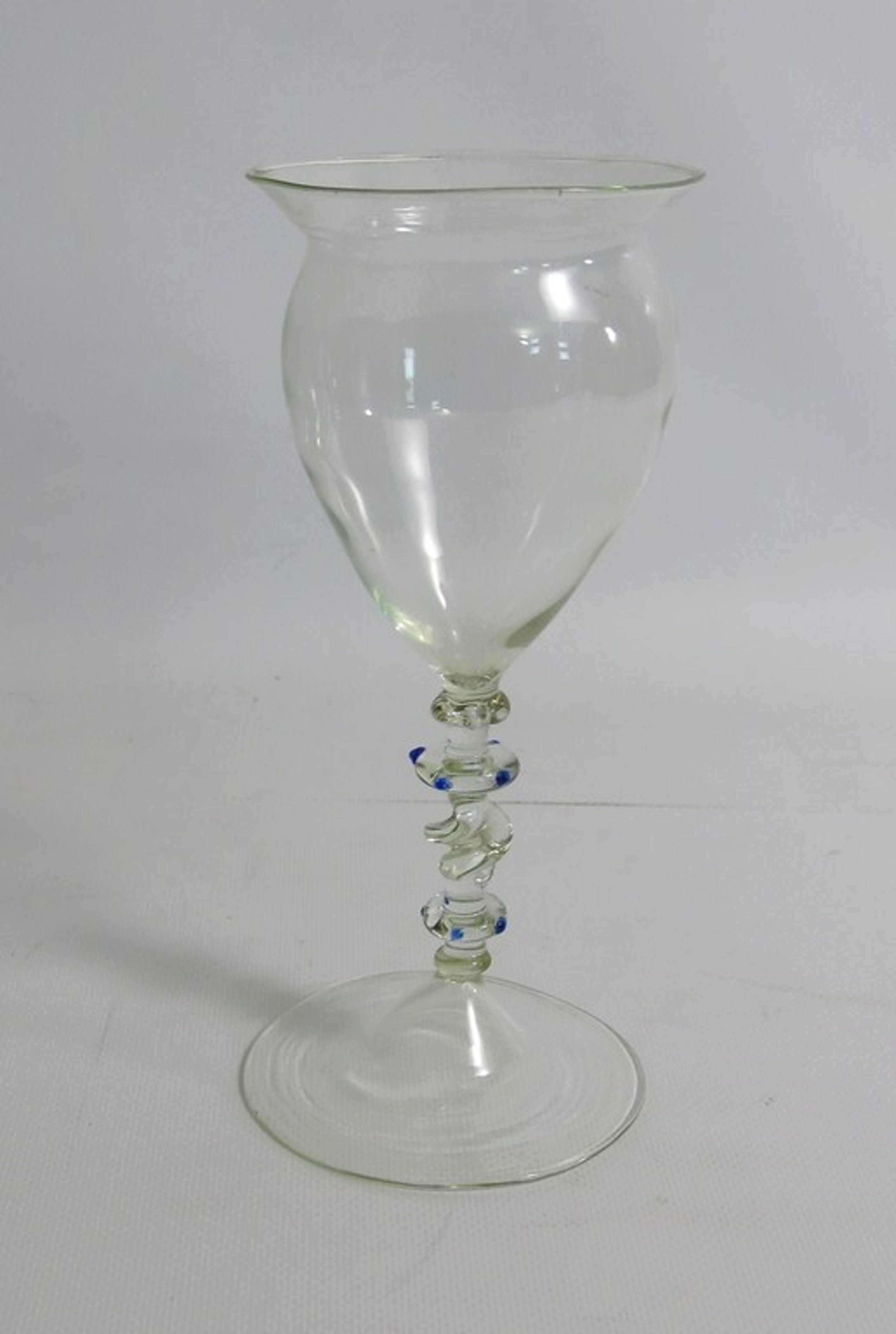 Bijzonder glas van Jos Böhm. Böhm, Utrechtse Moderne Glaskunstenaar, maakte dit antiek gelijkend glas, dat door (antiek)handelaren en musea vaak aangezien werd voor echt 17e eeuws glas en soms voor veel geld werd verkocht.