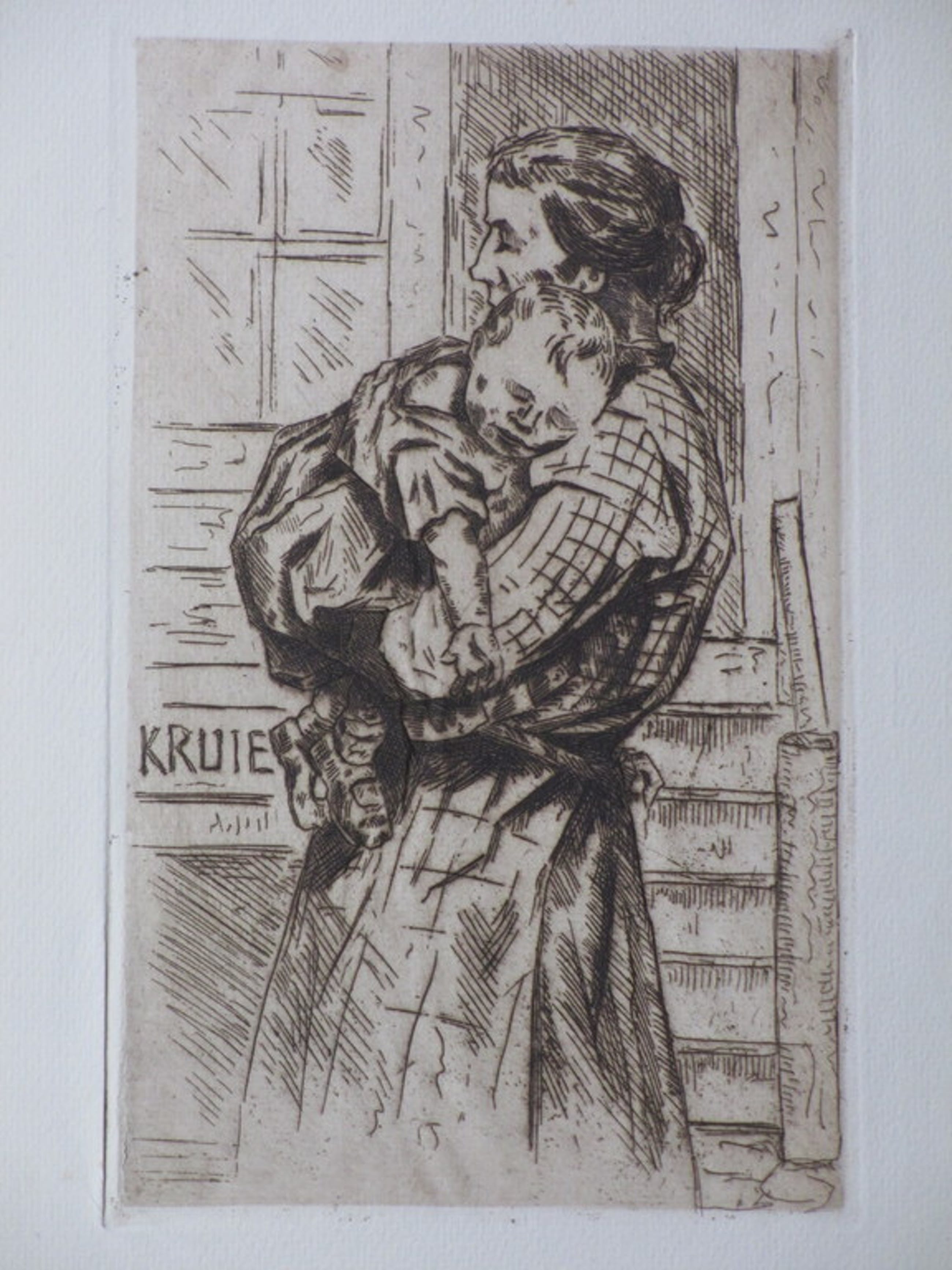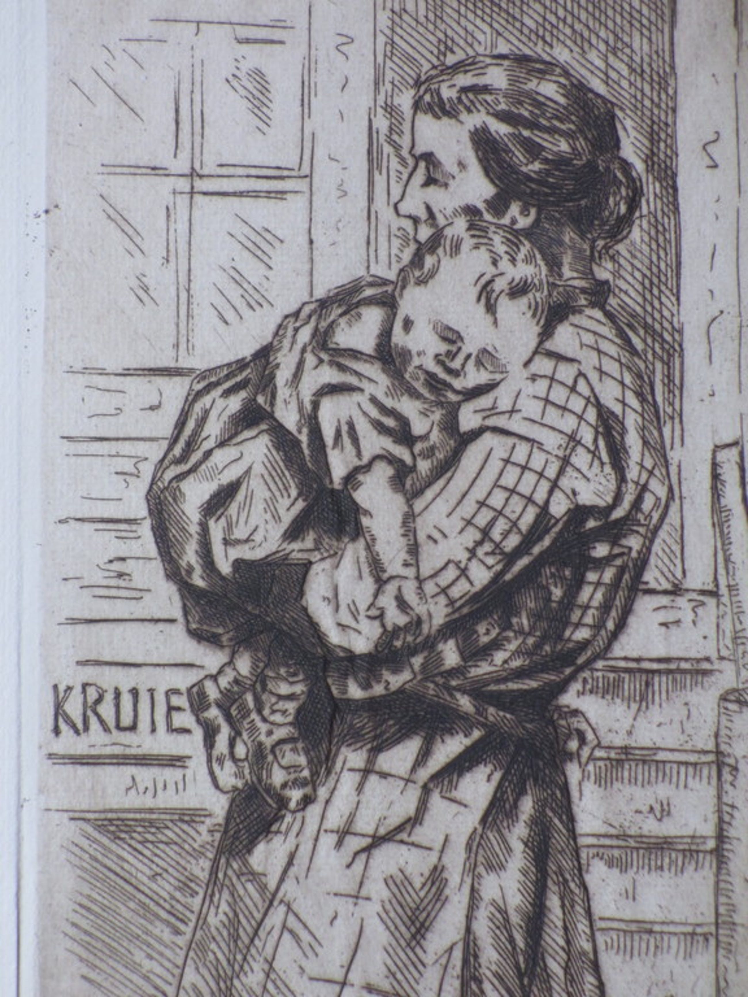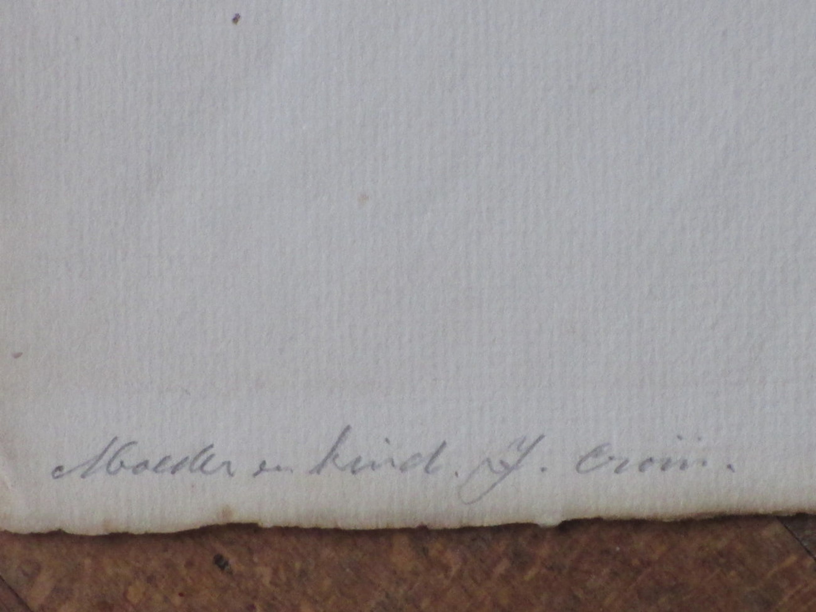 Getiteld en gesigneerd in potlood l.o. 'Moeder en kind. J.Croin'