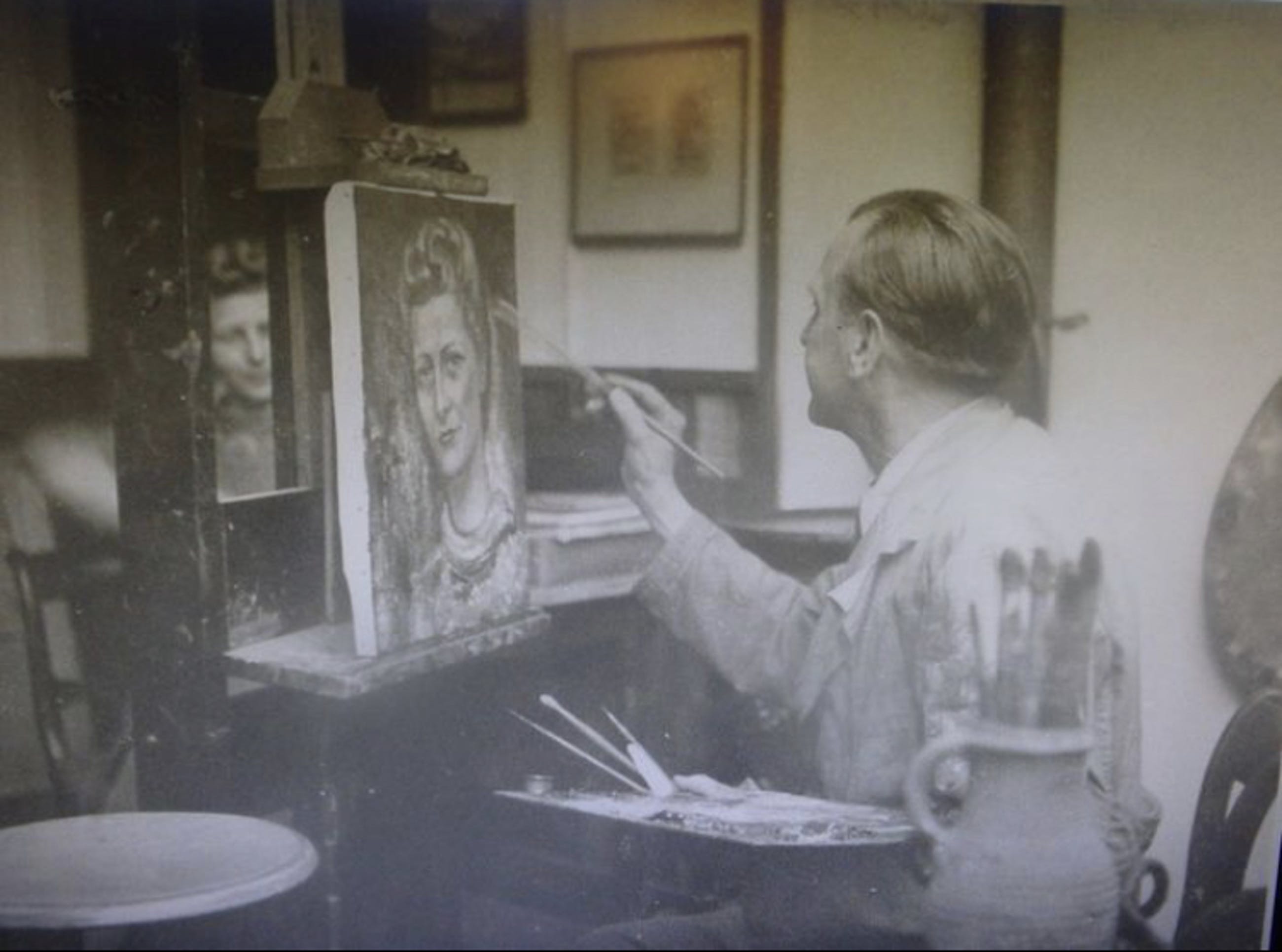 Portret van kunstschilder Josephus Judocus Zacharias ("Jos") Croin uit het oorlogsjaar 1944. Zowel het doek als de lijst verkeren in zeer goede staat.