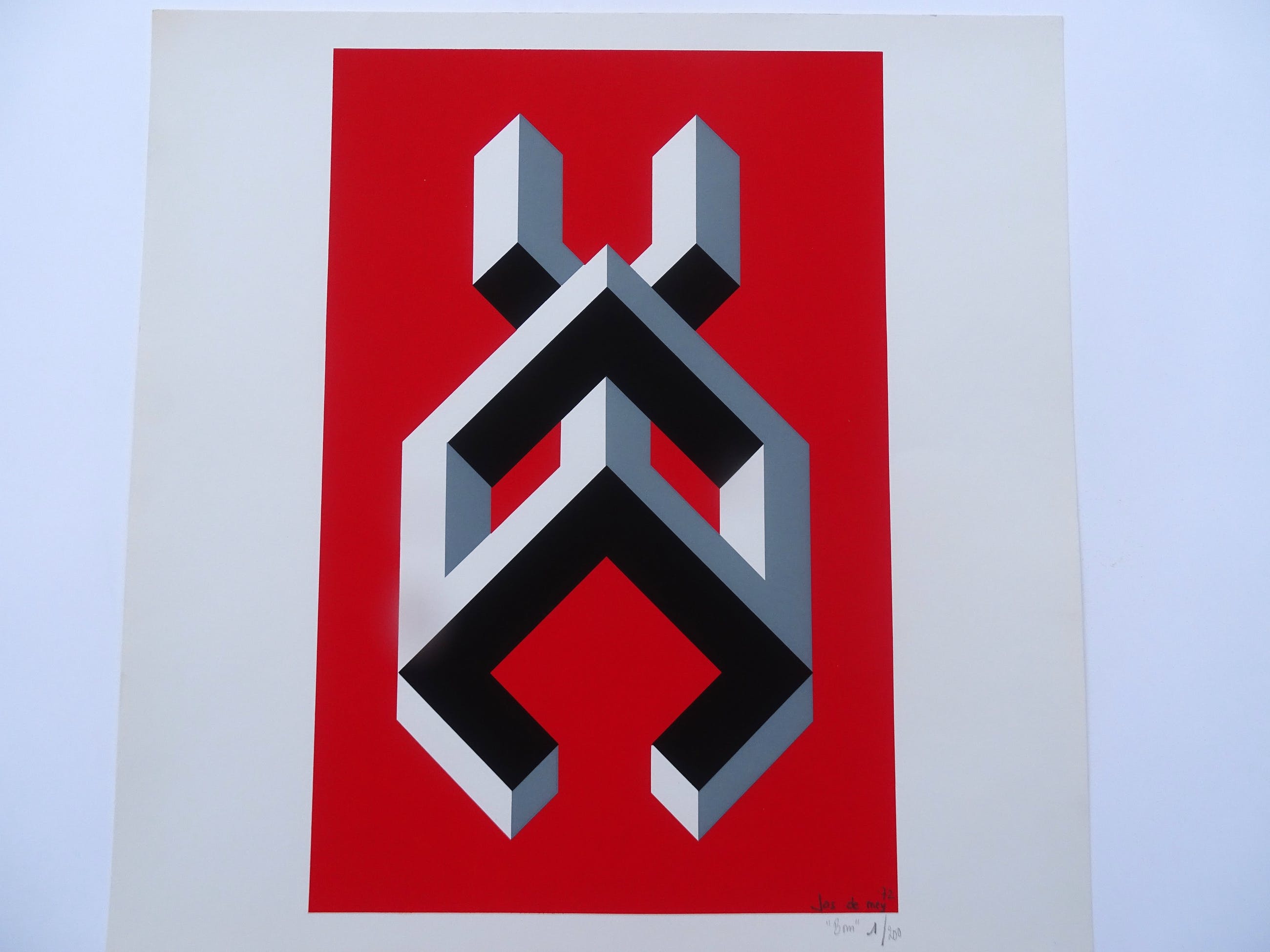 Zeefdruk uitgegeven ter gelegenheid van de tentoonstelling 'Gentse Konstruktieve Kunst' georganiseerd tussen de stad Gent en Janssen Pharmaceutica , gedrukt door Kristien de Witte, uitgegeven op 200 exemplaren, dit exemplaar draagt nummer 1.