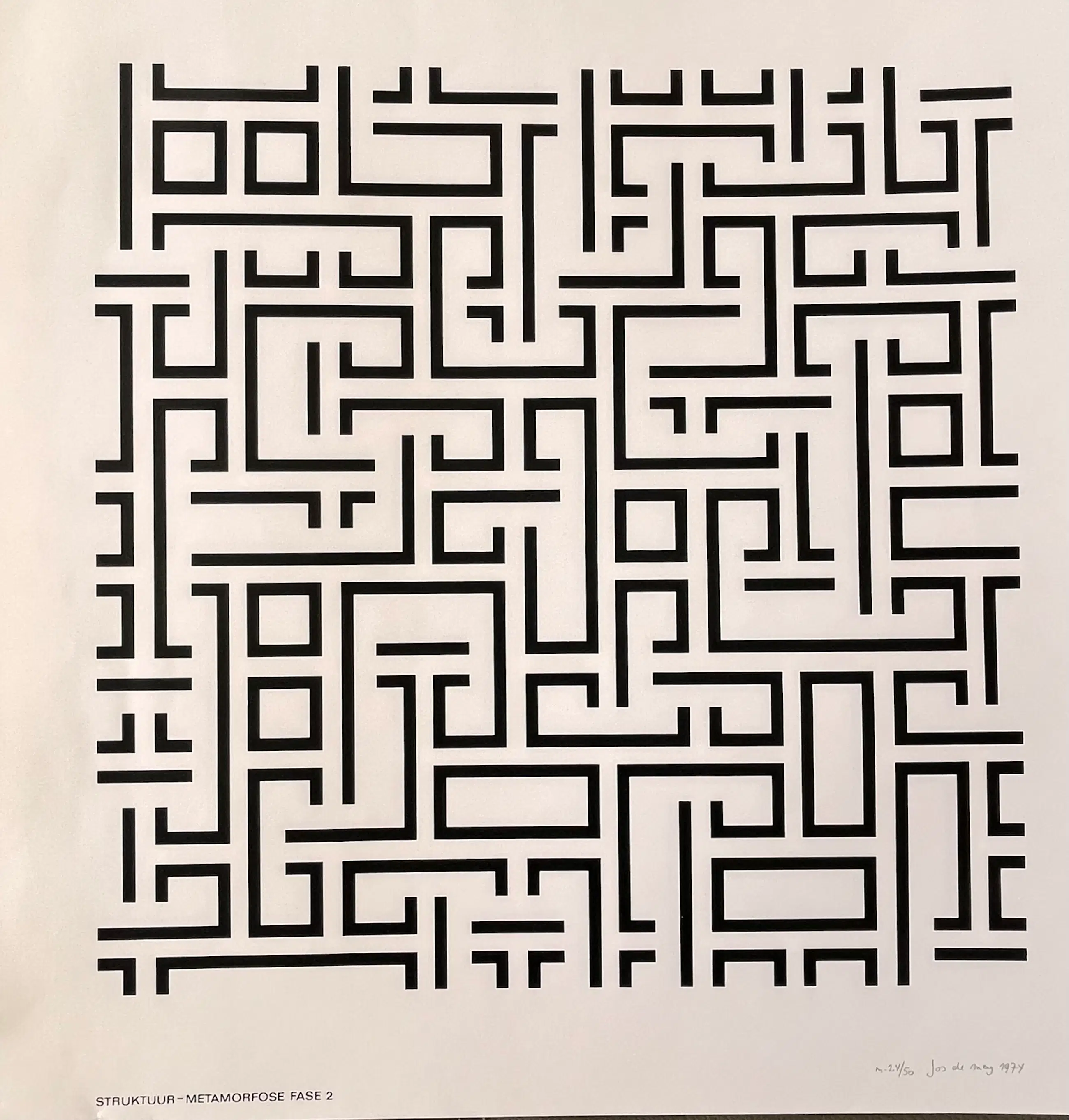 Mooi werk van Jos De Mey uit 1974 Titel: 'Struktuur - Metamorfose Fase 2' Gesigneerd, genummerd en gedateerd rechts onderaan. In zeer goede staat.