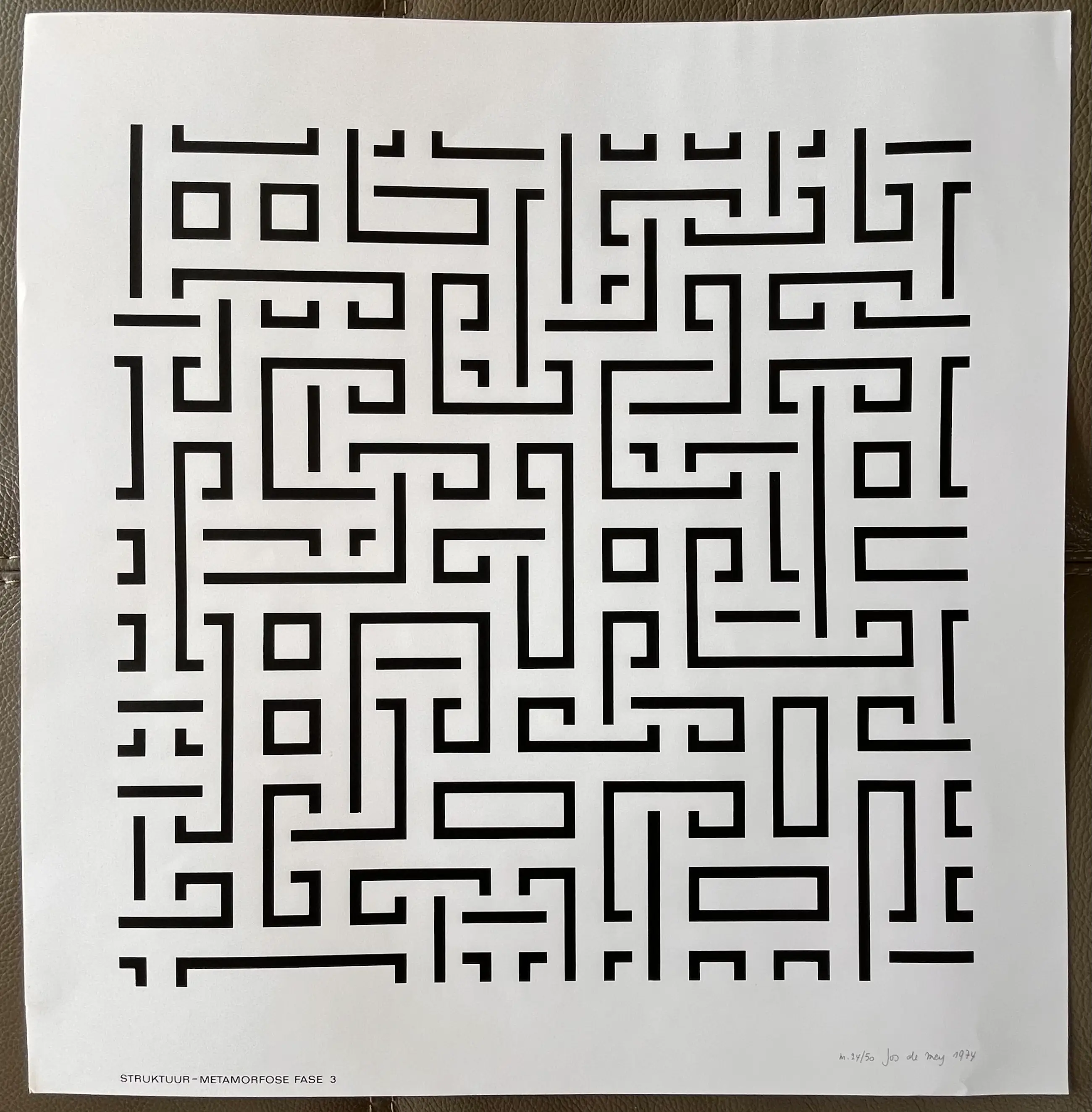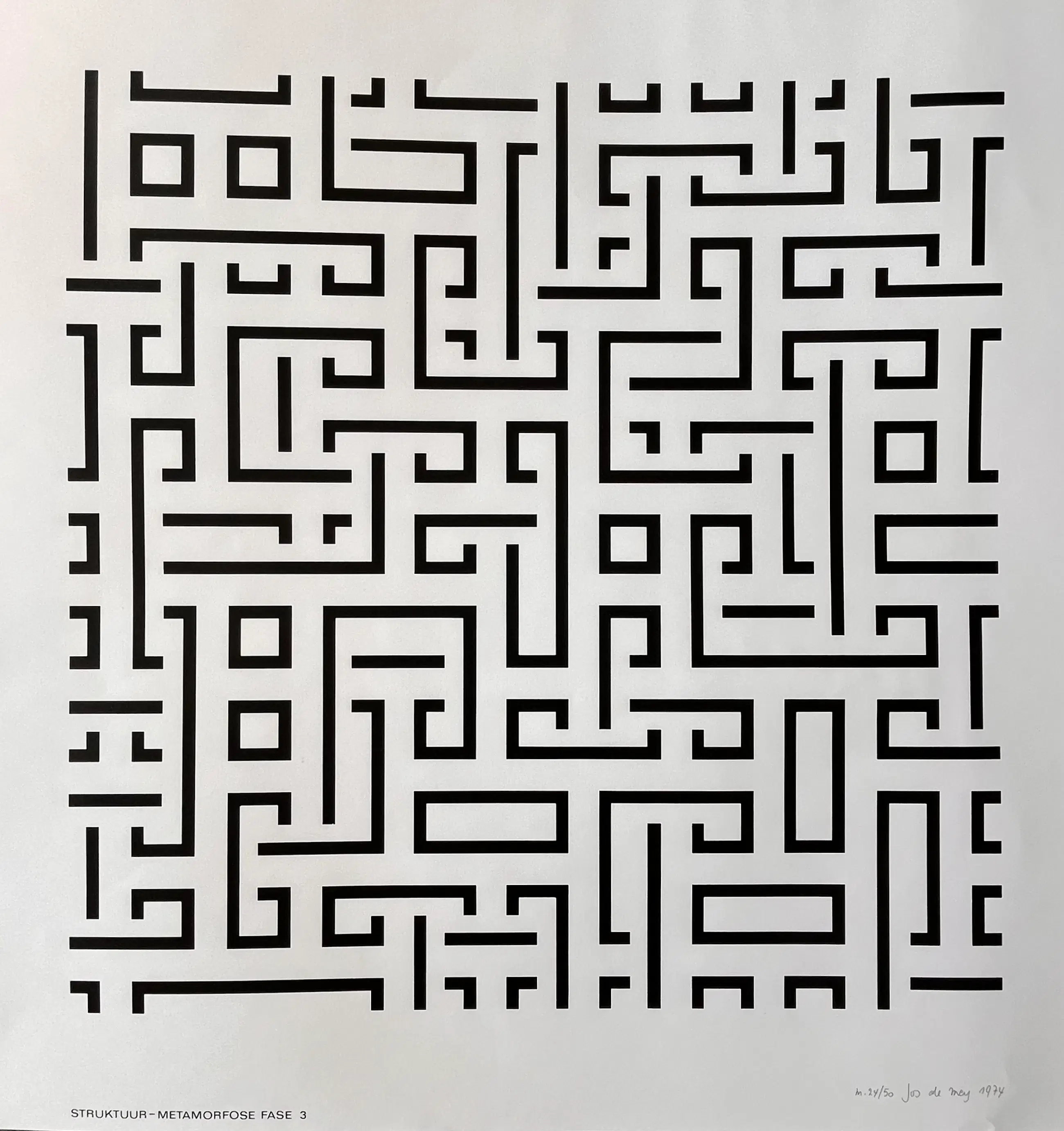 Mooi werk van Jos De Mey uit 1974 Titel: 'Struktuur - Metamorfose Fase 3' Gesigneerd, genummerd en gedateerd rechts onderaan. In zeer goede staat.