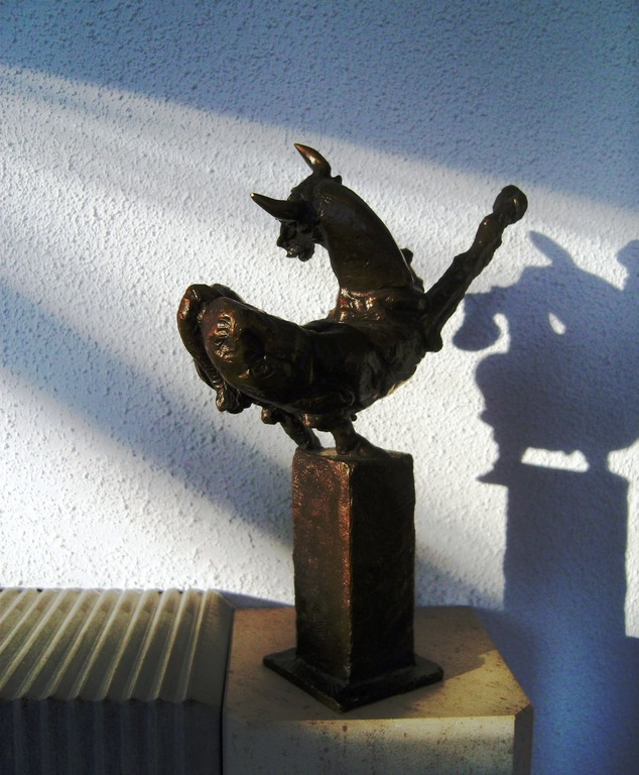 Schitterend bronzen beeldje van Jos Dirix. Werk van Dirix wordt zelden aangeboden! 'k Heb het beeldje bewust met de schaduwwerking gefotografeerd zodat u kunt zien dat de vrolijkheid eraf spettert.