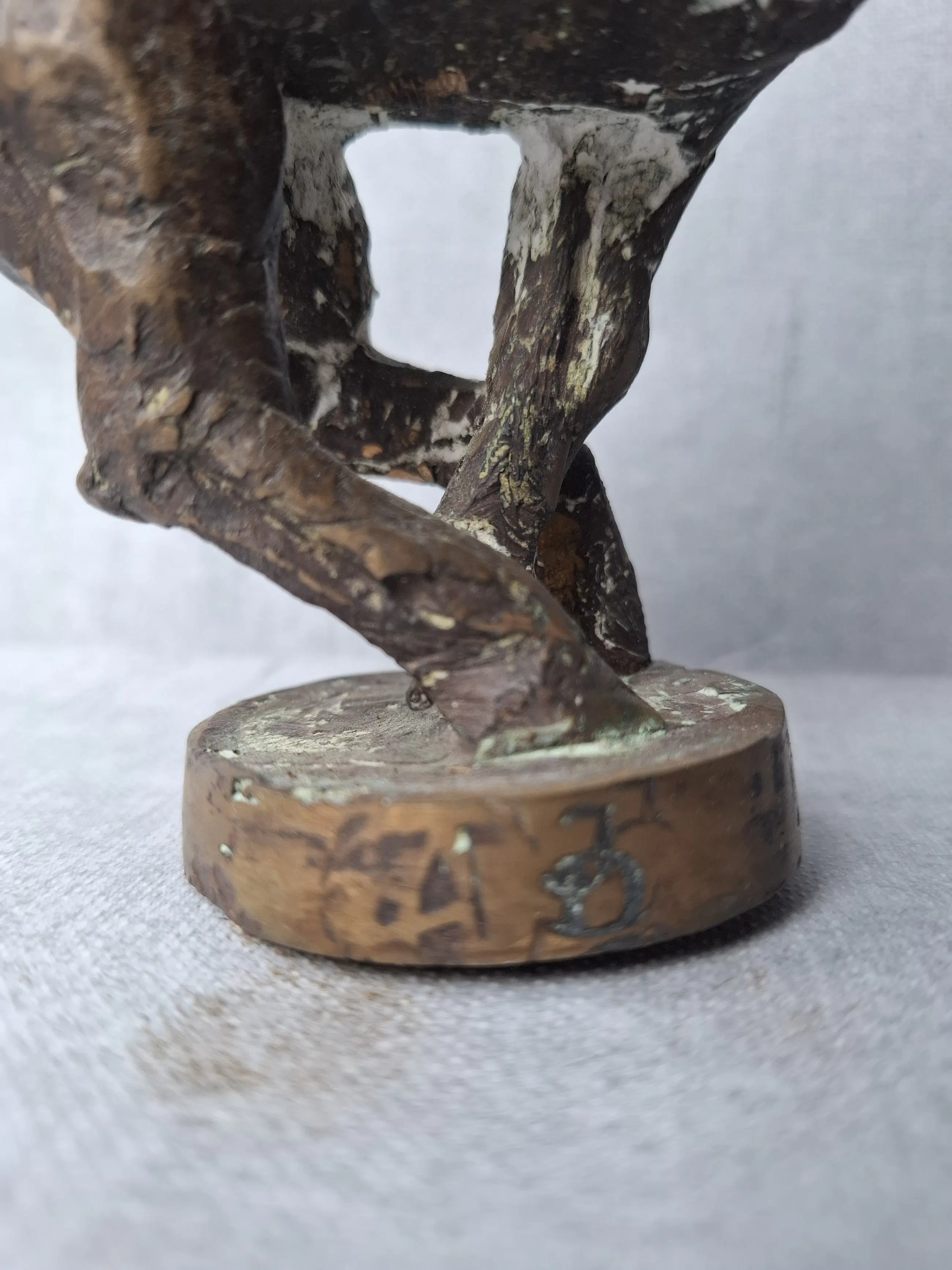 Karakteristiek massief bronzen beeldje van de Limburgse beeldhouwer. Jos Dirix