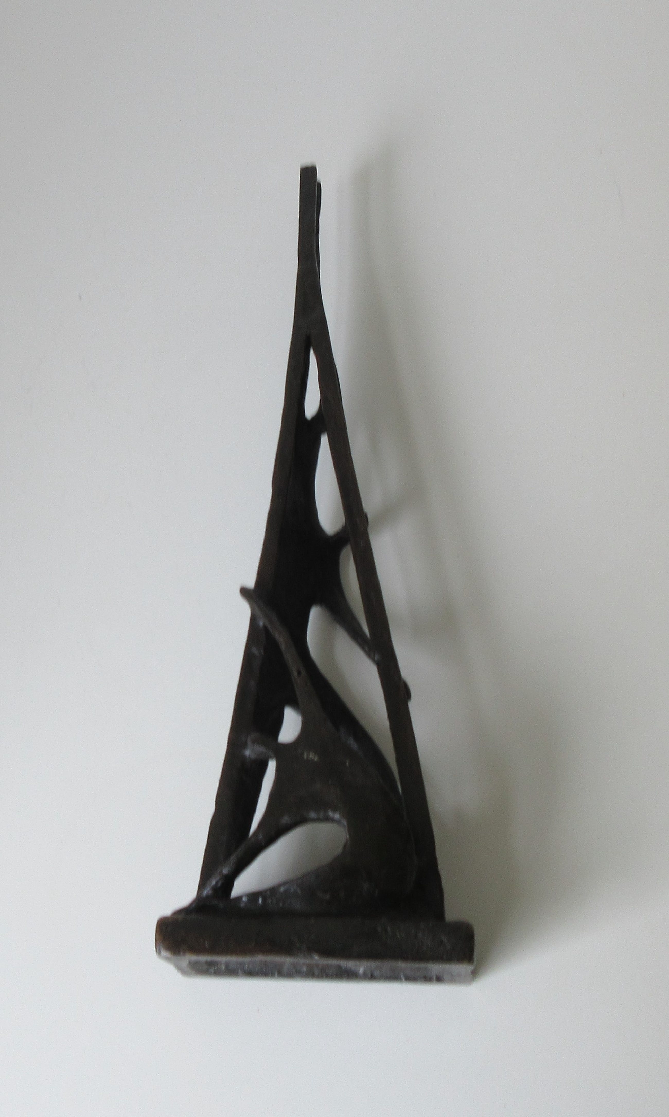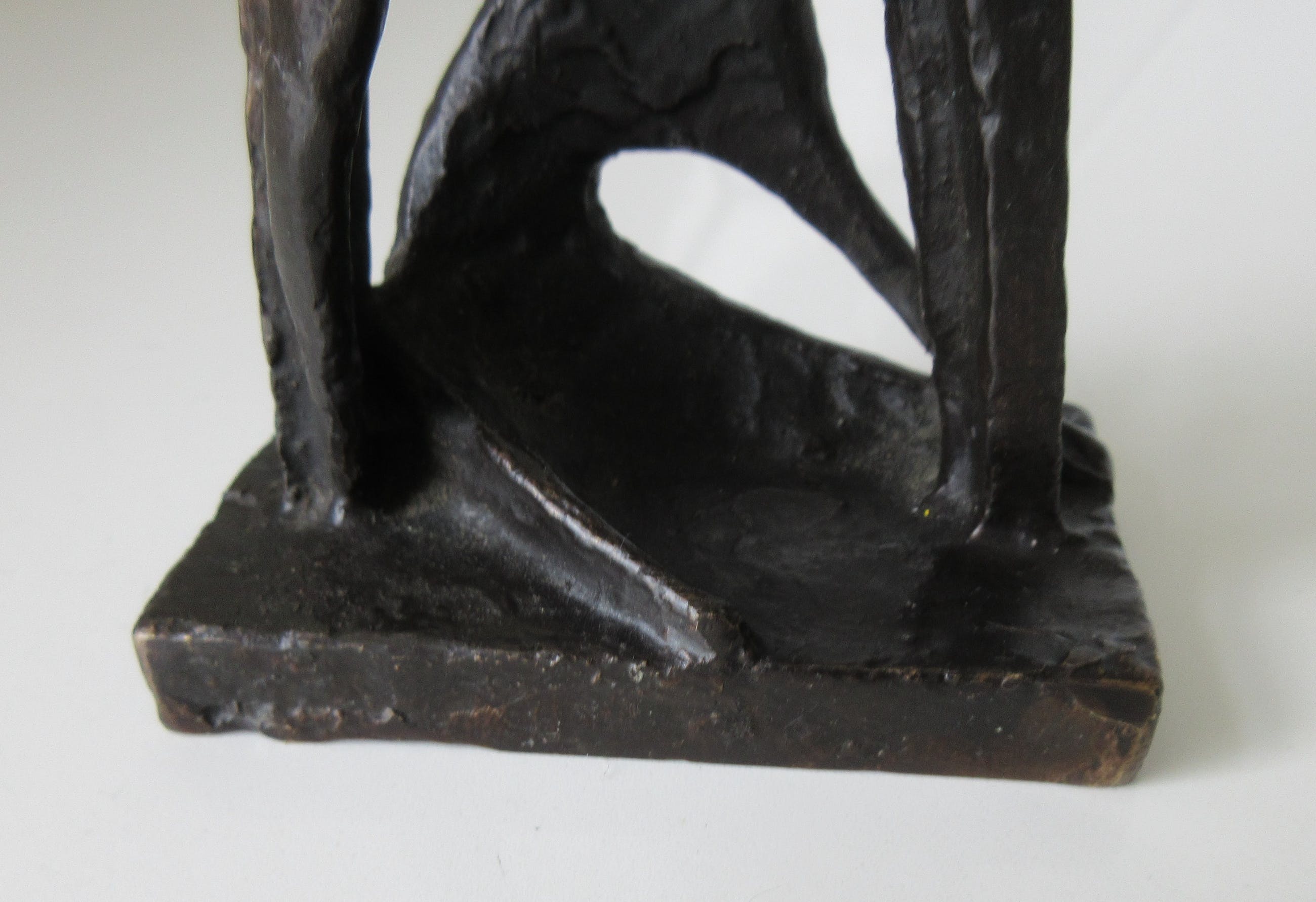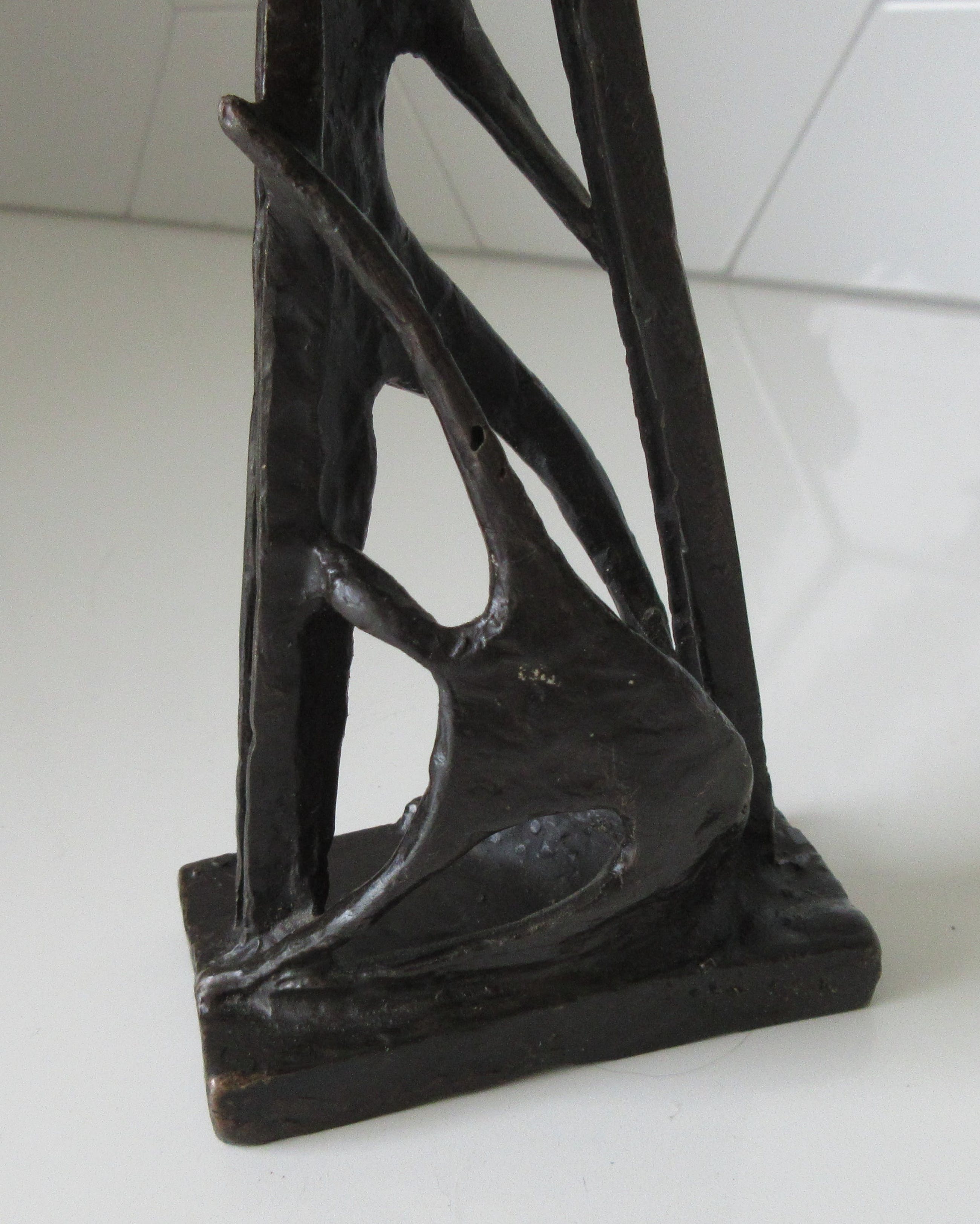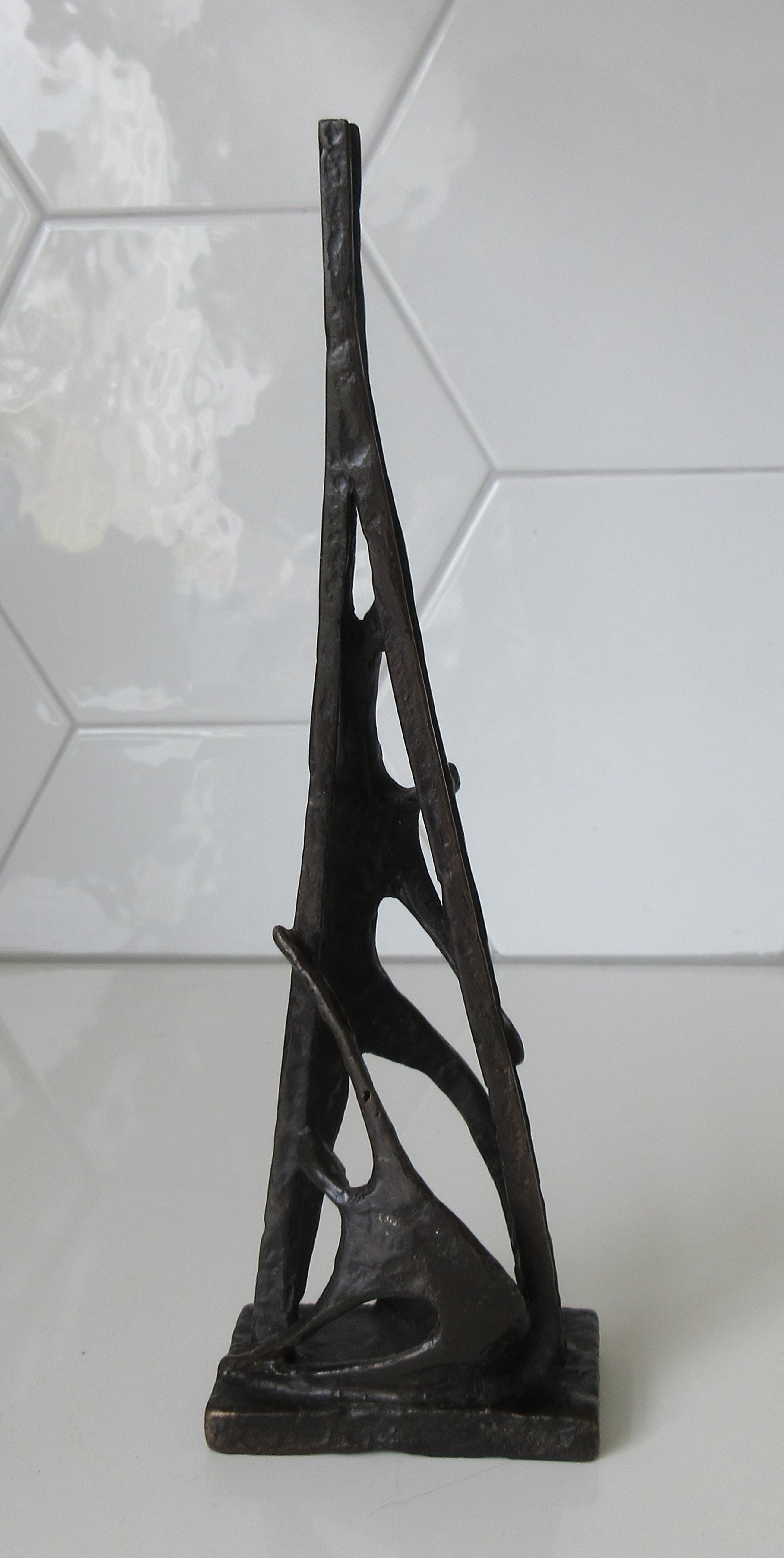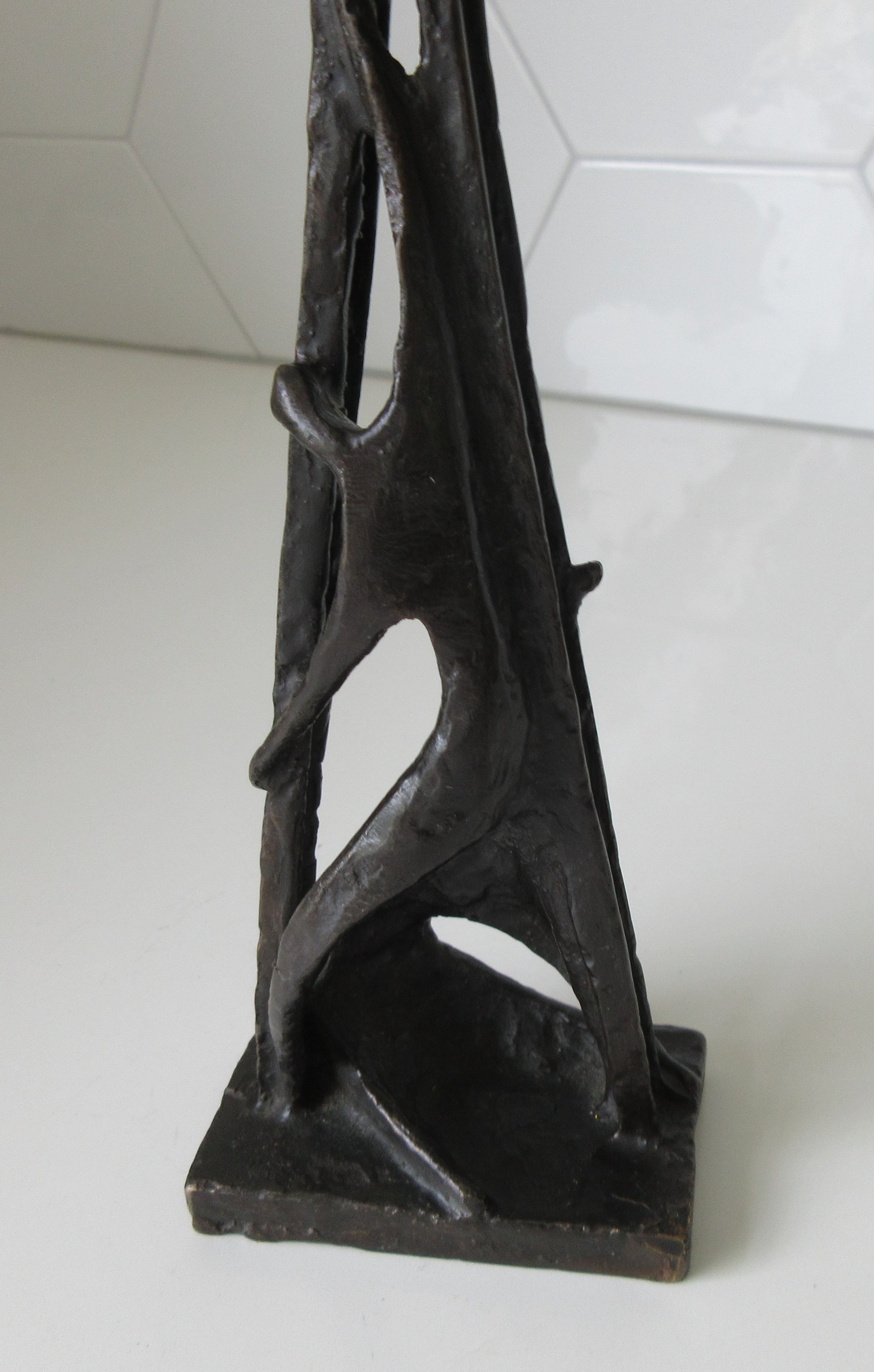 Bronzen abstracte sculptuur van Jos Gielen. van twee figuren die ze ergens aan vast houden. Met de hand gesigneerd aan de onderzijde.
