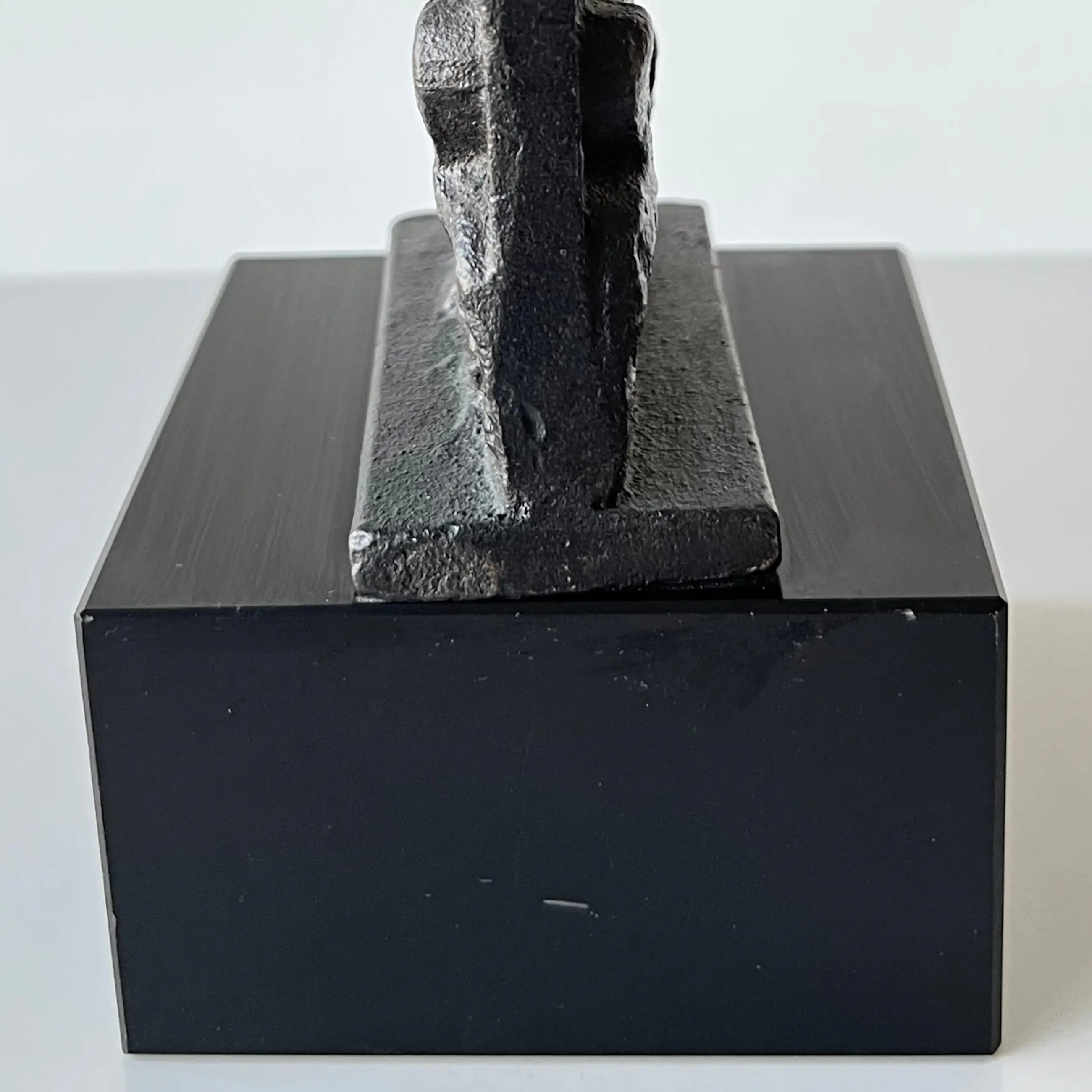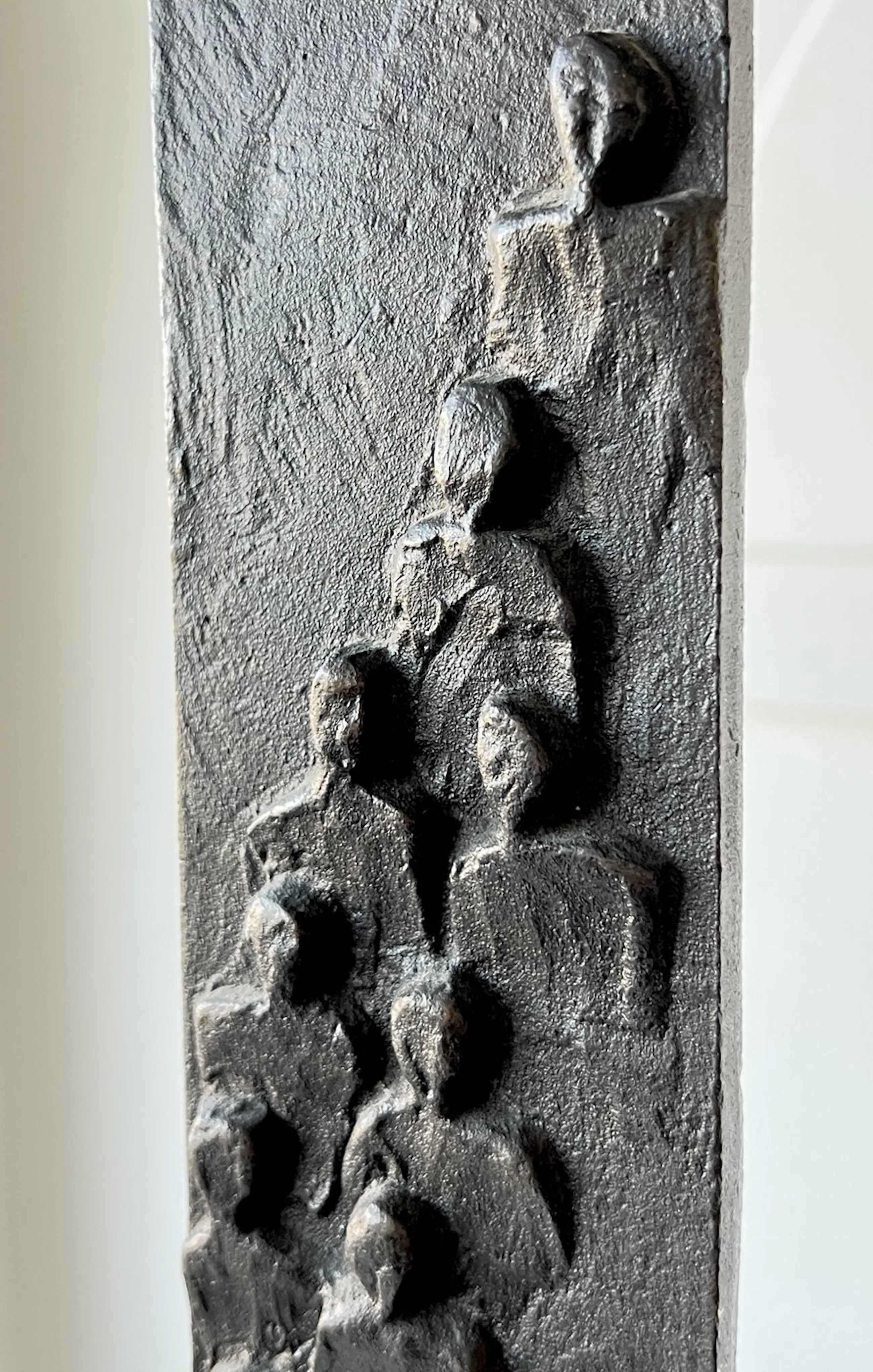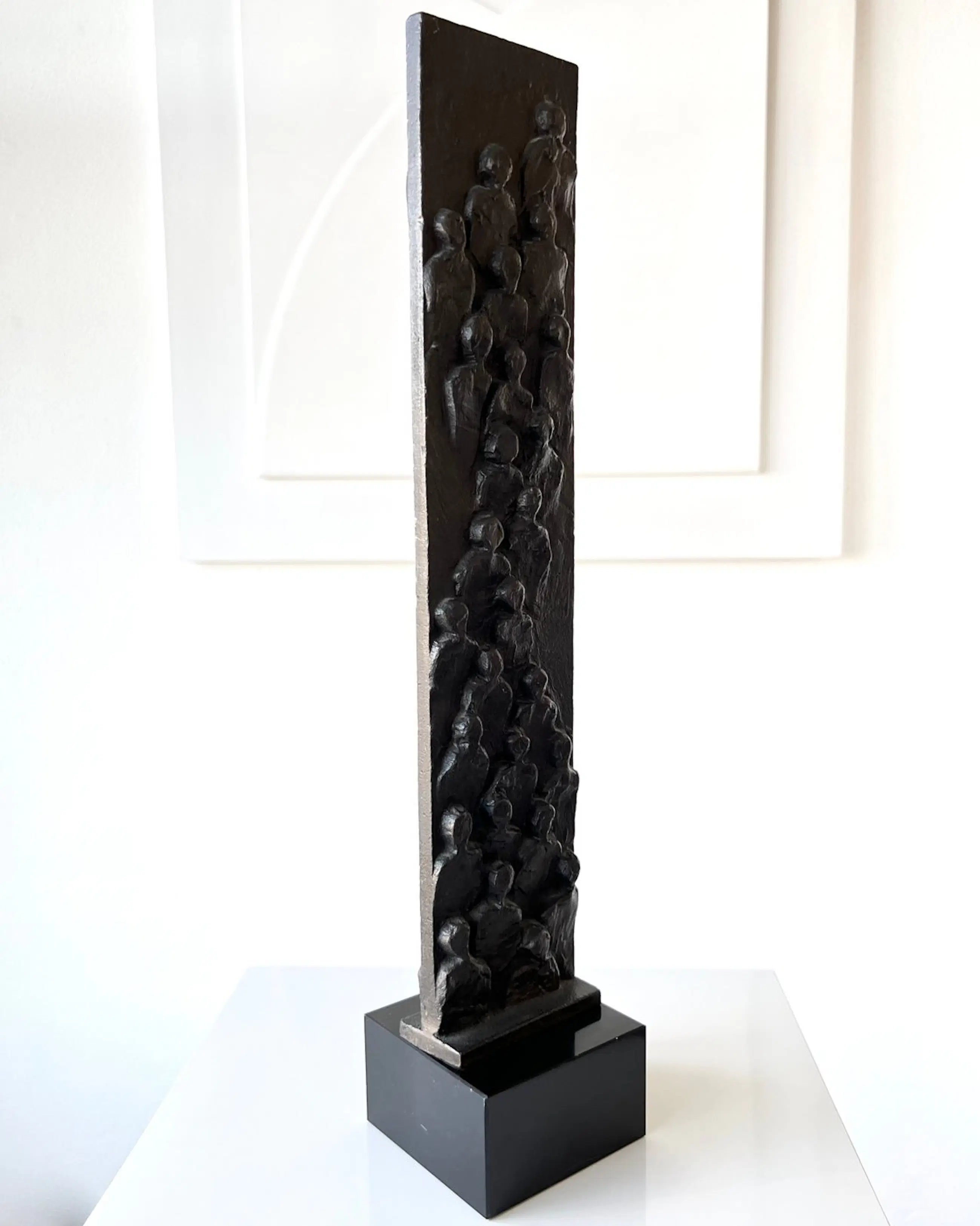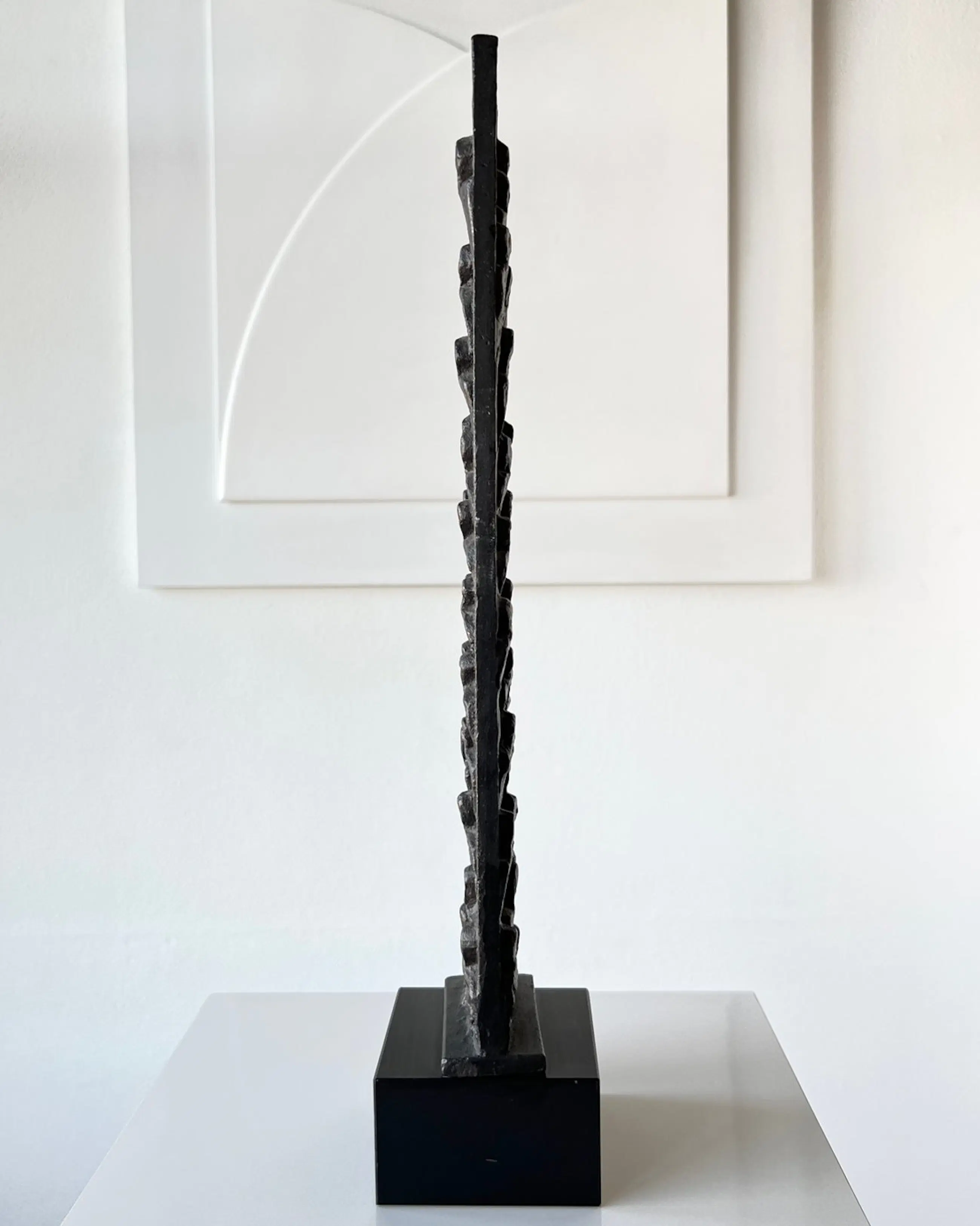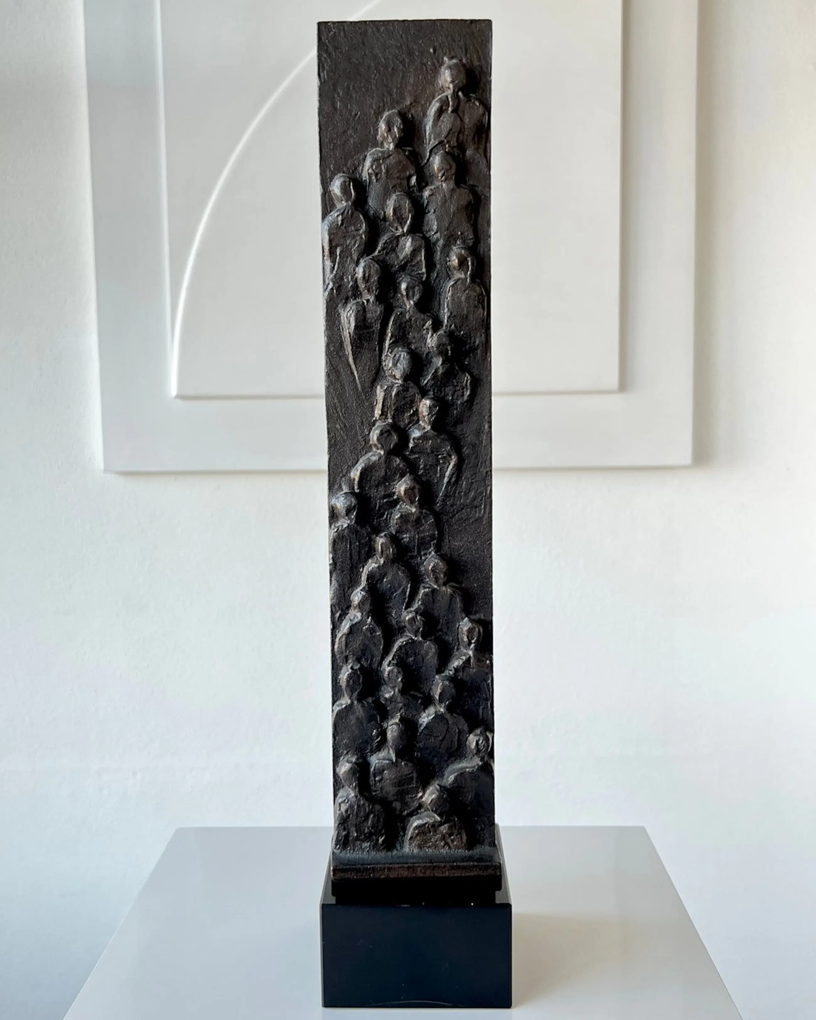 Een prachtig en uniek abstract hoog vol brons sculptuur van Nederlands beeldhouwer Jos Gielen (1952) op een Belgisch hardstenen sokkel. Het werk kreeg als titel 'Samen op weg' en gemaakt rond 2000.