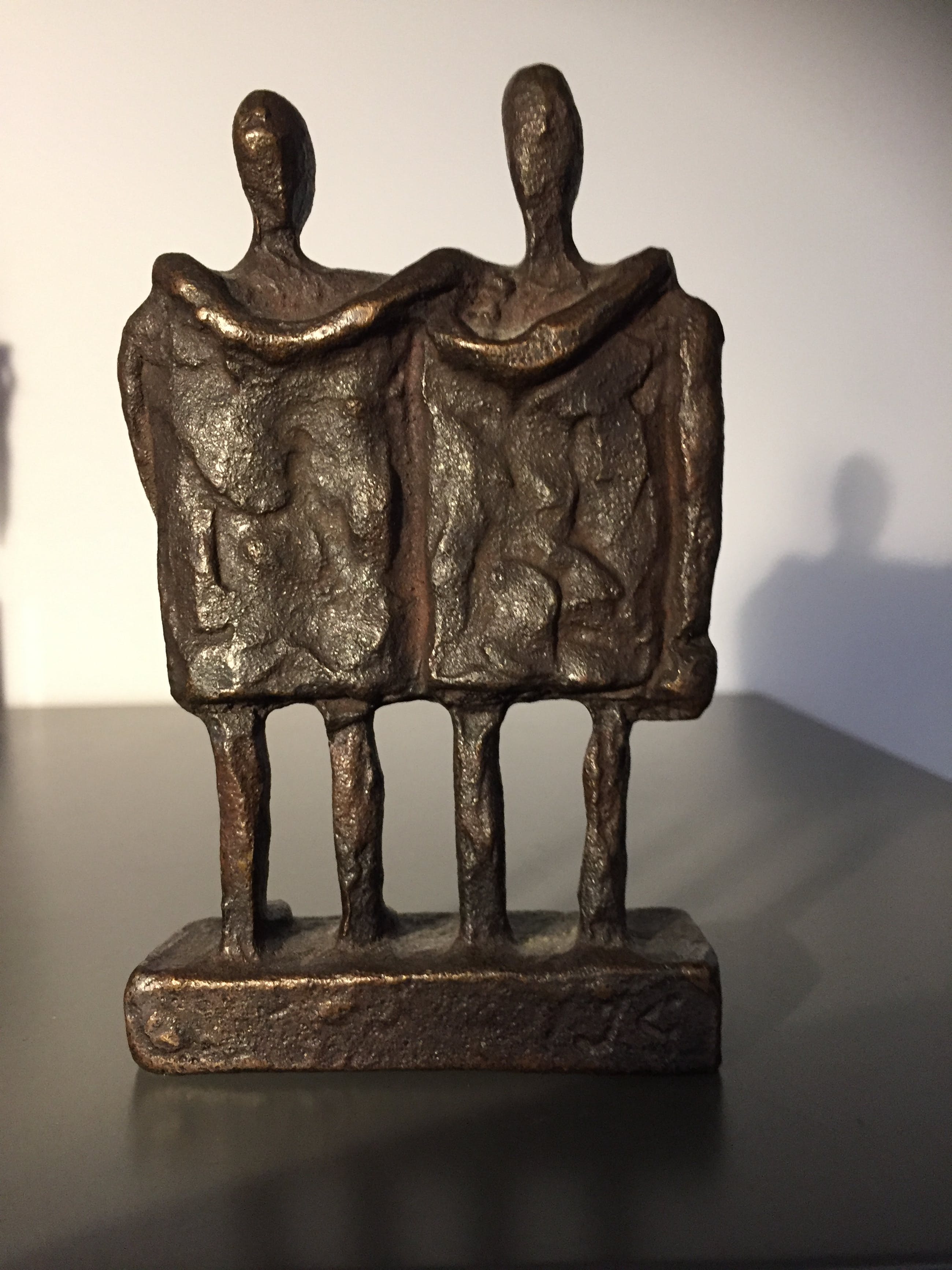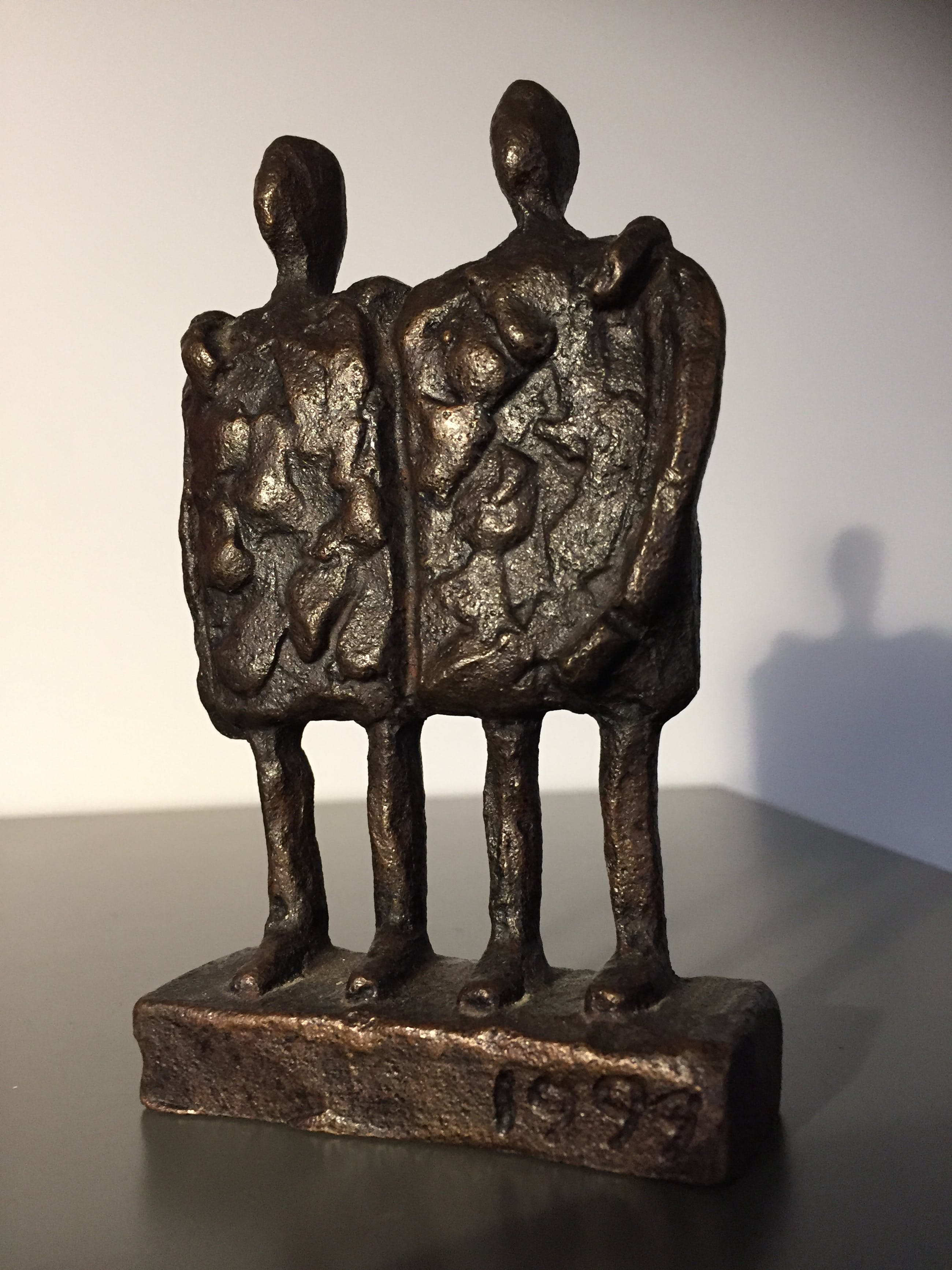 Stevig naast elkaar met de armen over de schouders: 2 vrienden