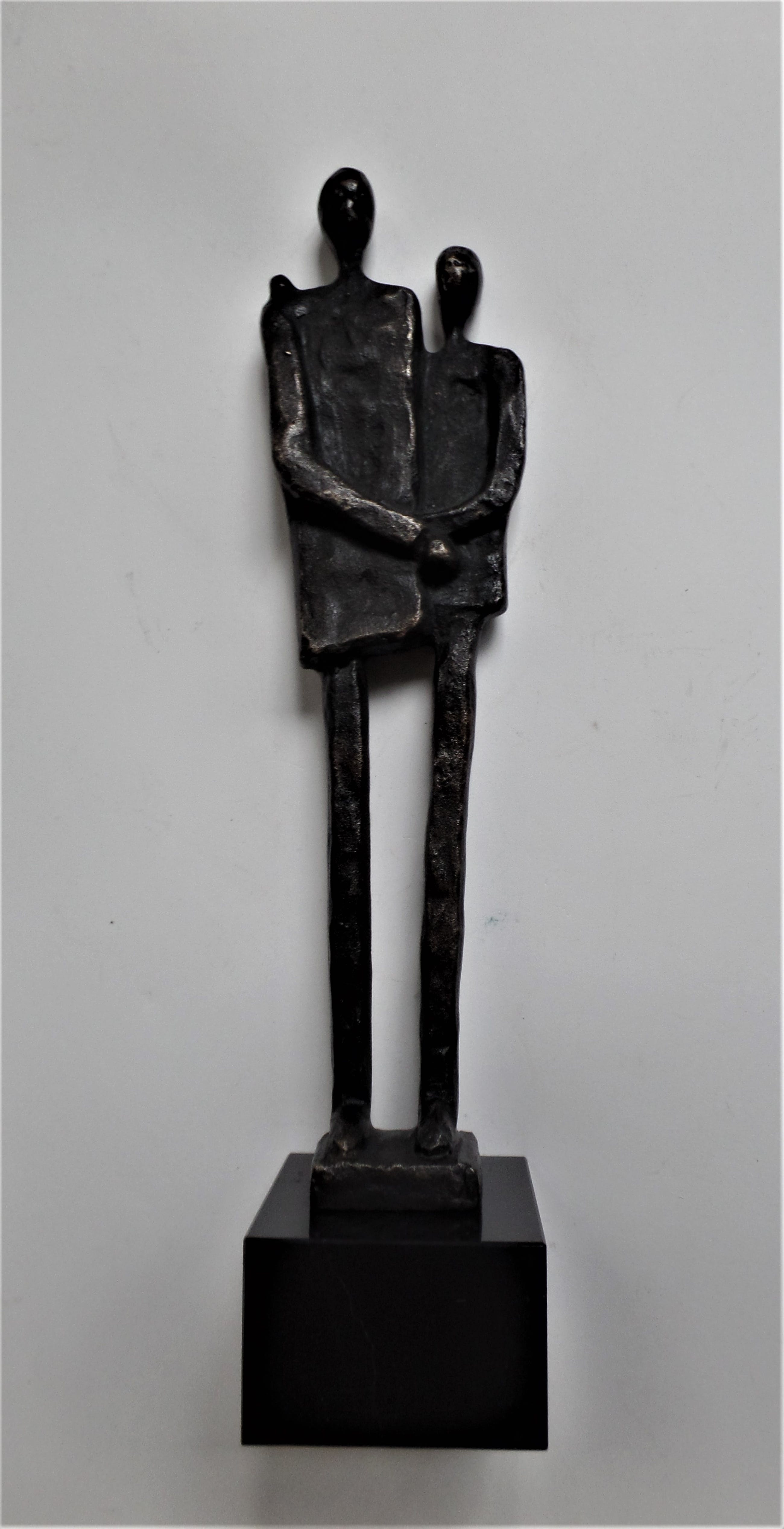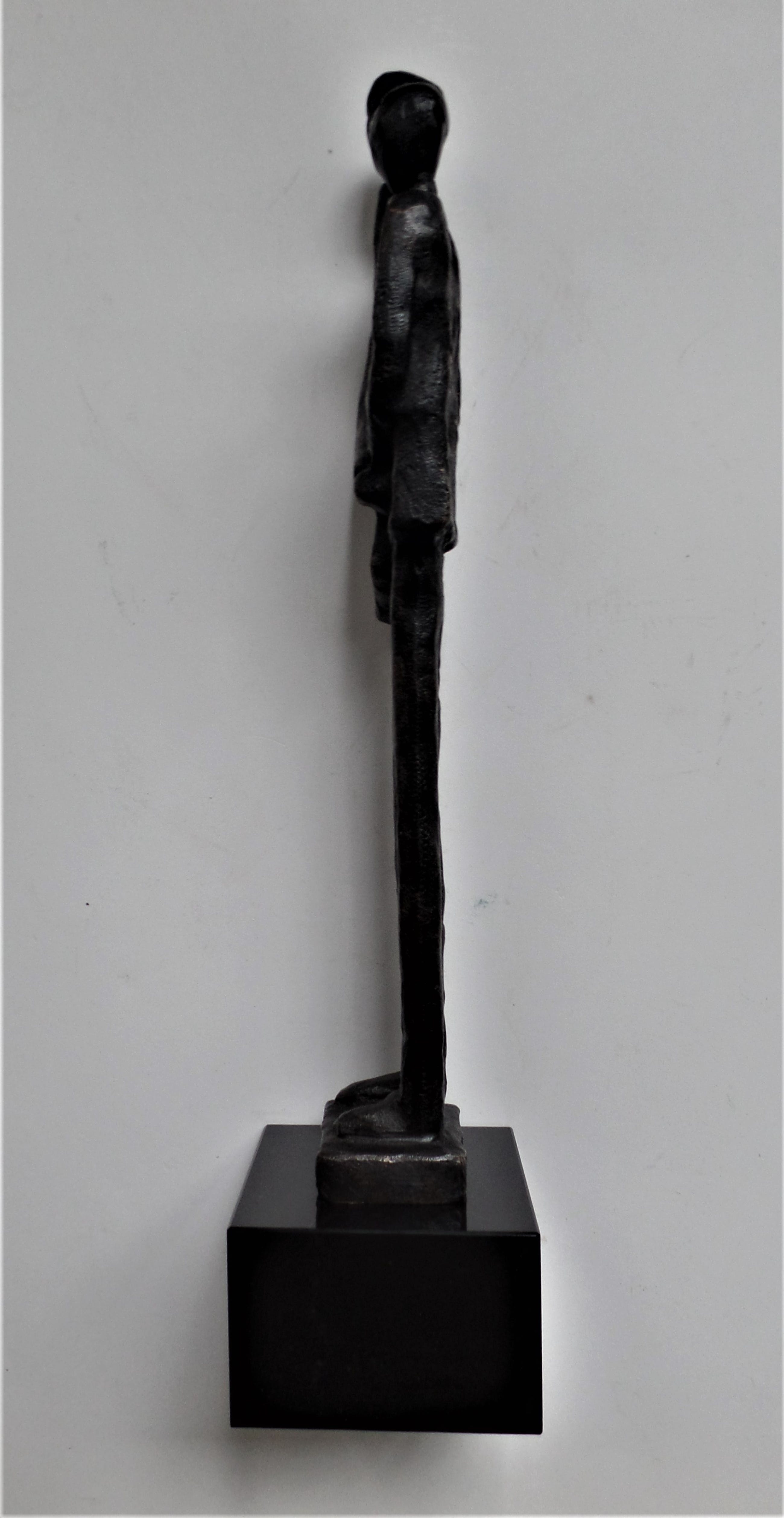 Massief bronzen beeld bruin gepatineerd, op marmeren sokkel.