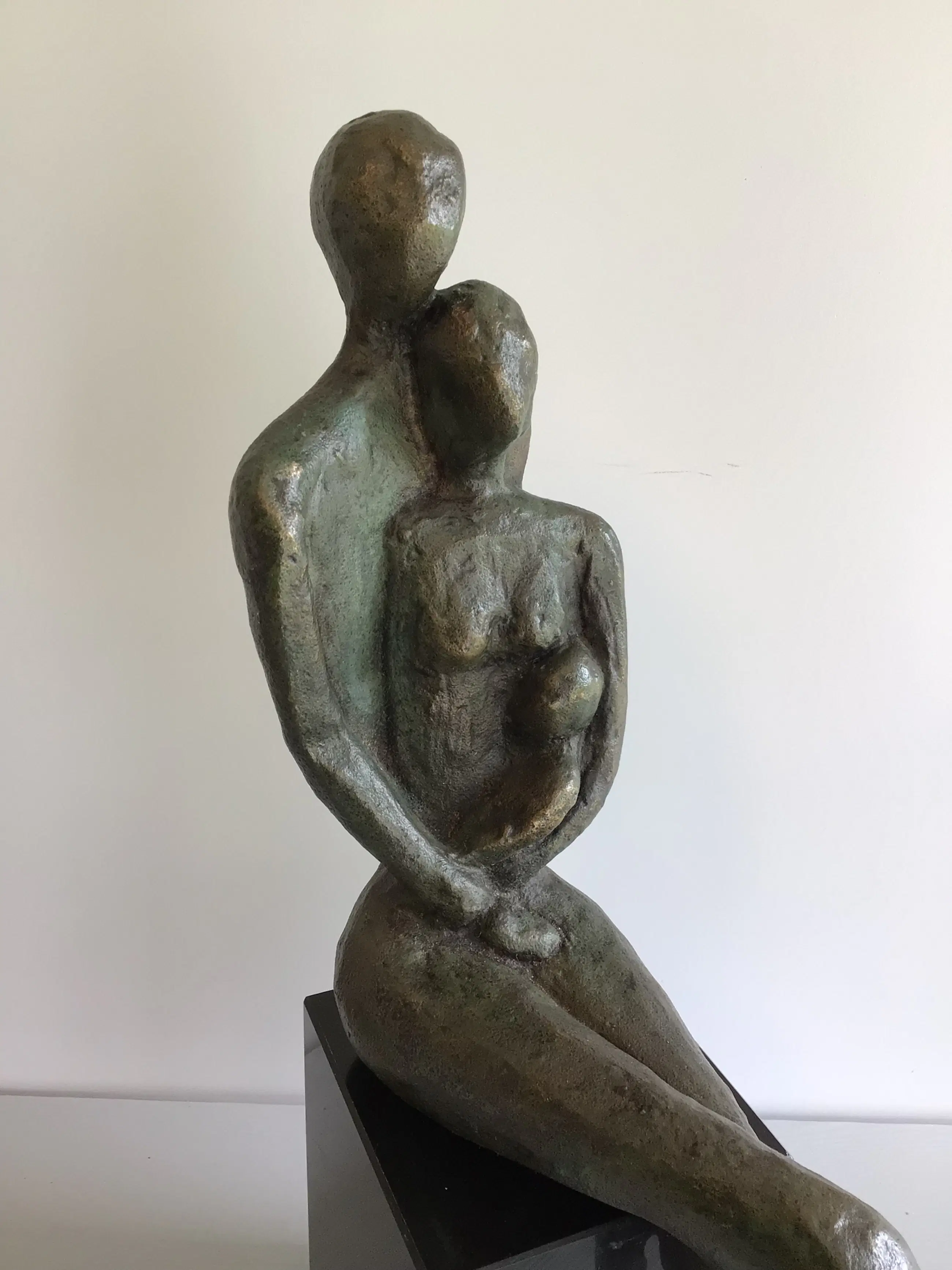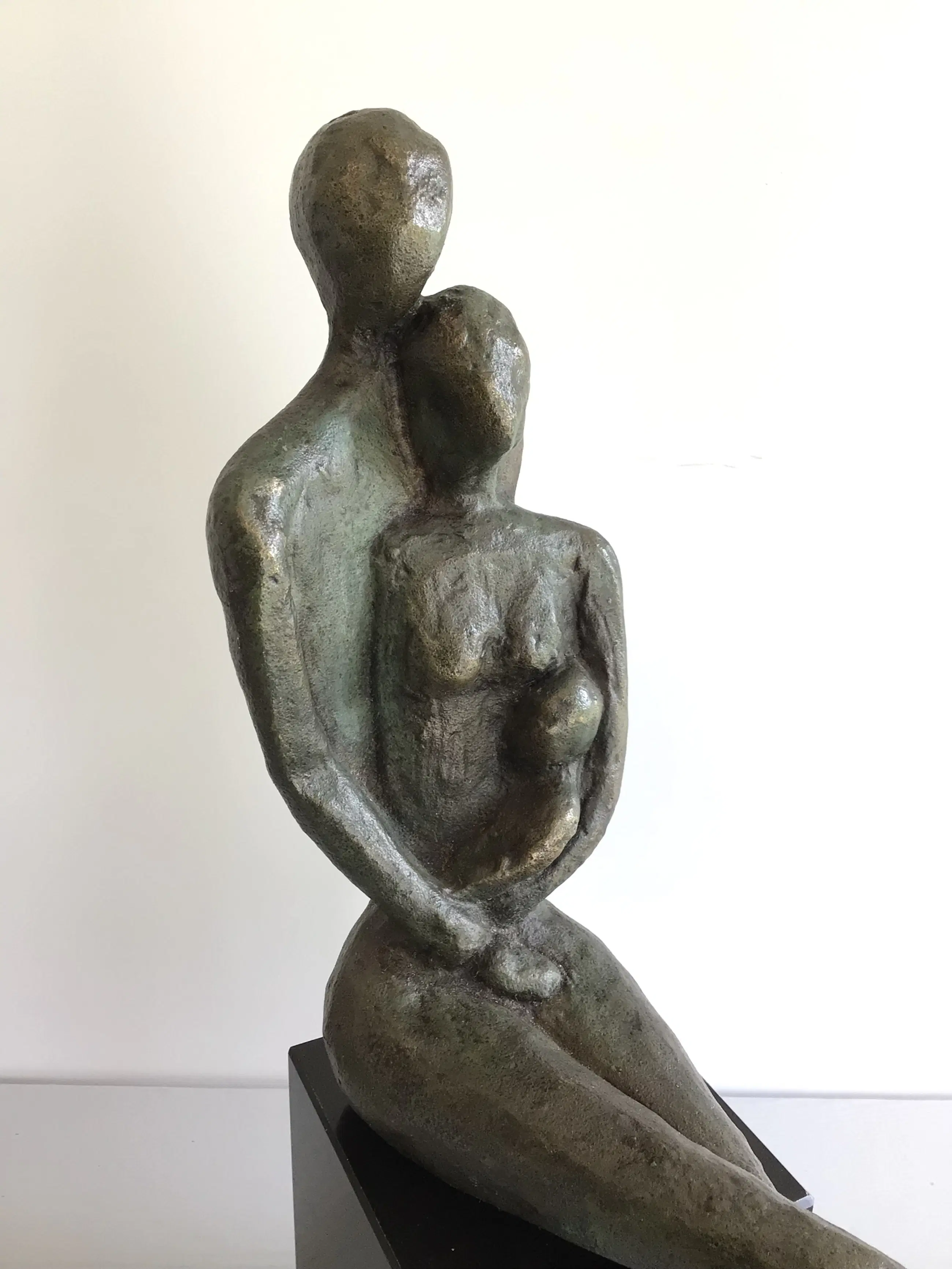 Zeer fraai en aandoenlijk sculptuur van een zittend liefdespaar met in hun armen een baby. Kunstenaar: Jos Gielen. Het beeld is op de achterzijde gesigneerd JG Hoogte : 30 cm Materiaal: brons Het liefdespaar zit los op de sokkel waardoor het veilig kan worden verzonden. Er mist een piepklein chipje uit de sokkel, totaal niet storend.. Het beeld verkeert in goede staat en wordt goed verpakt en verzekerd verzonden.