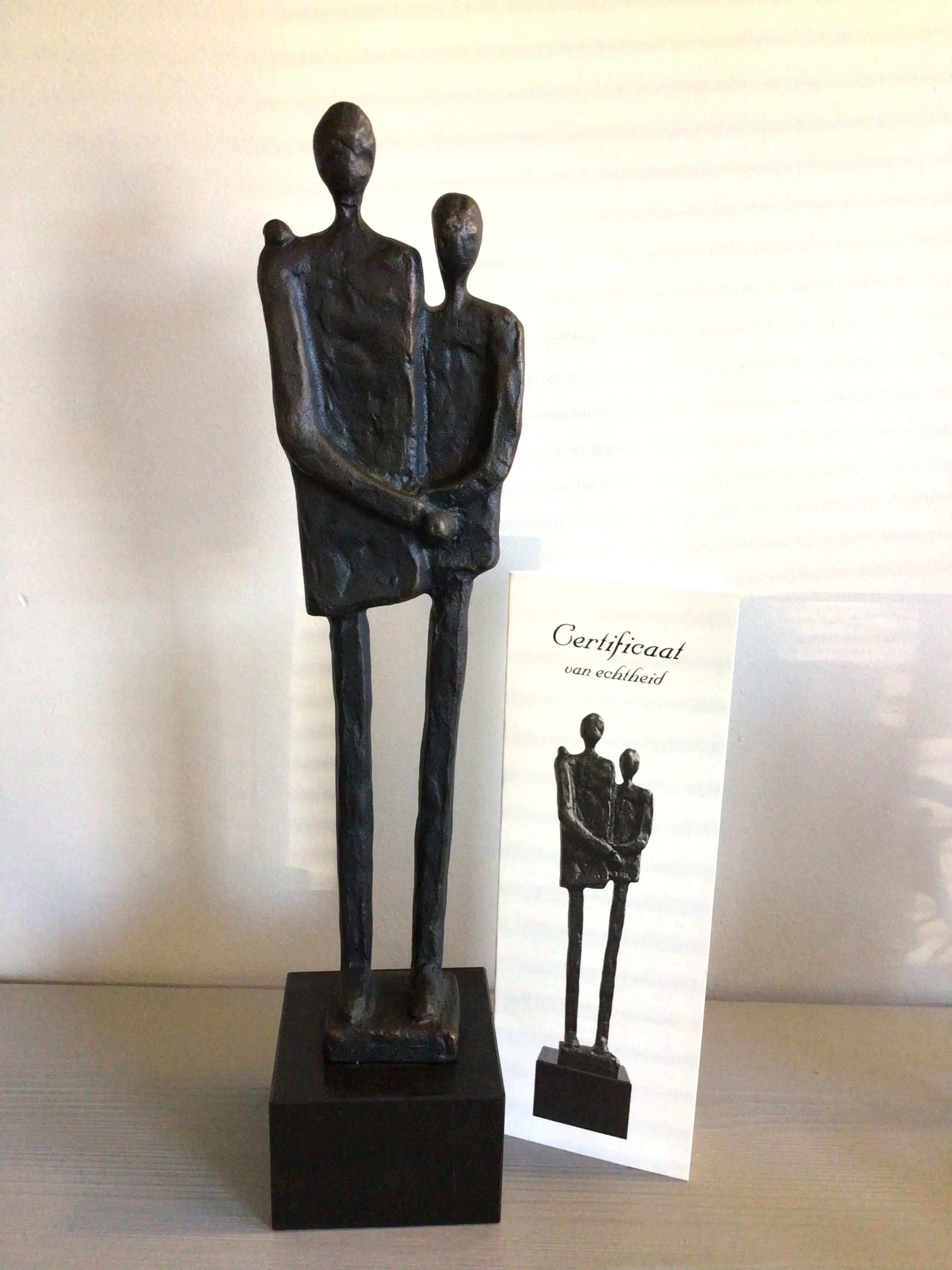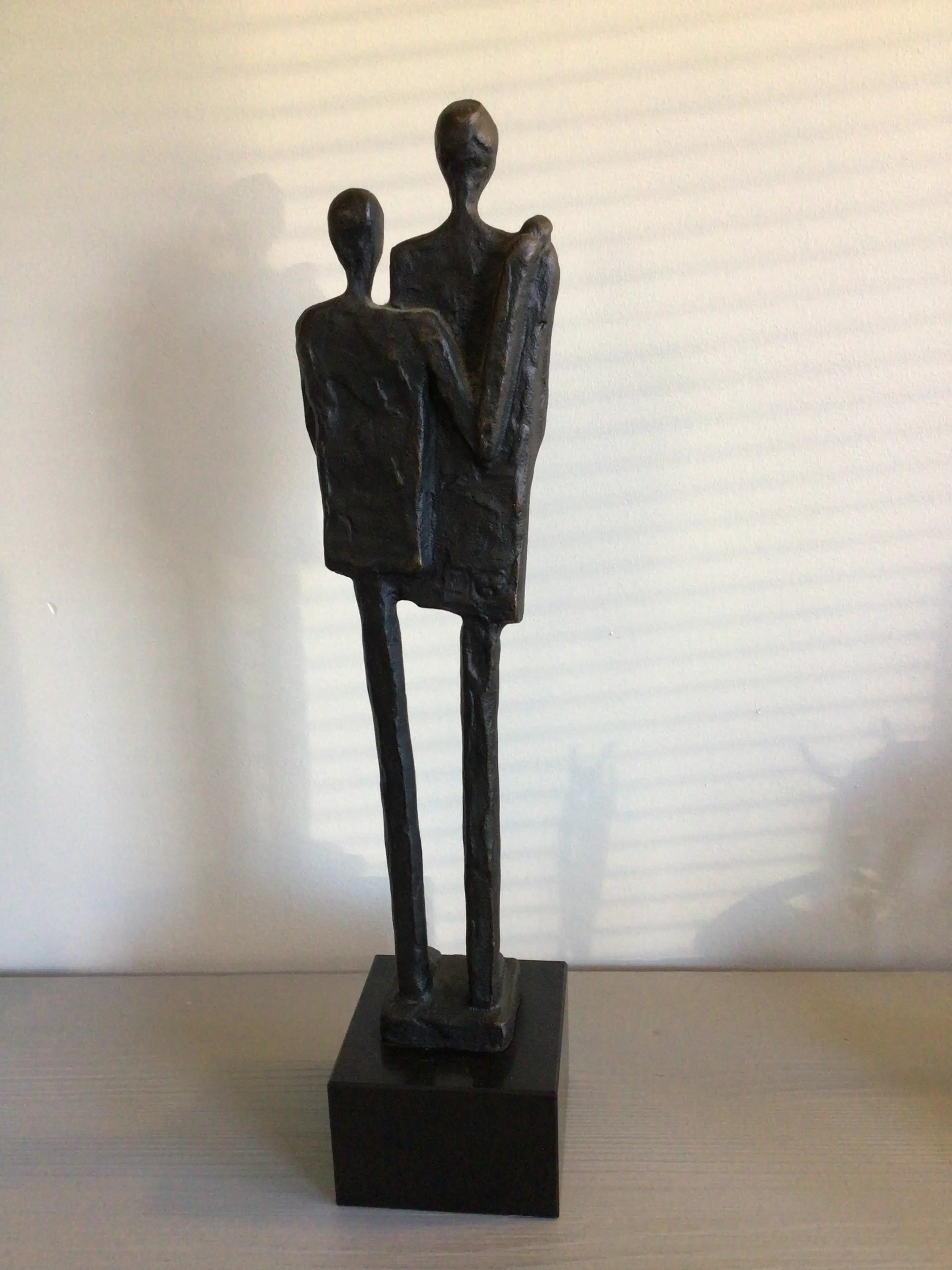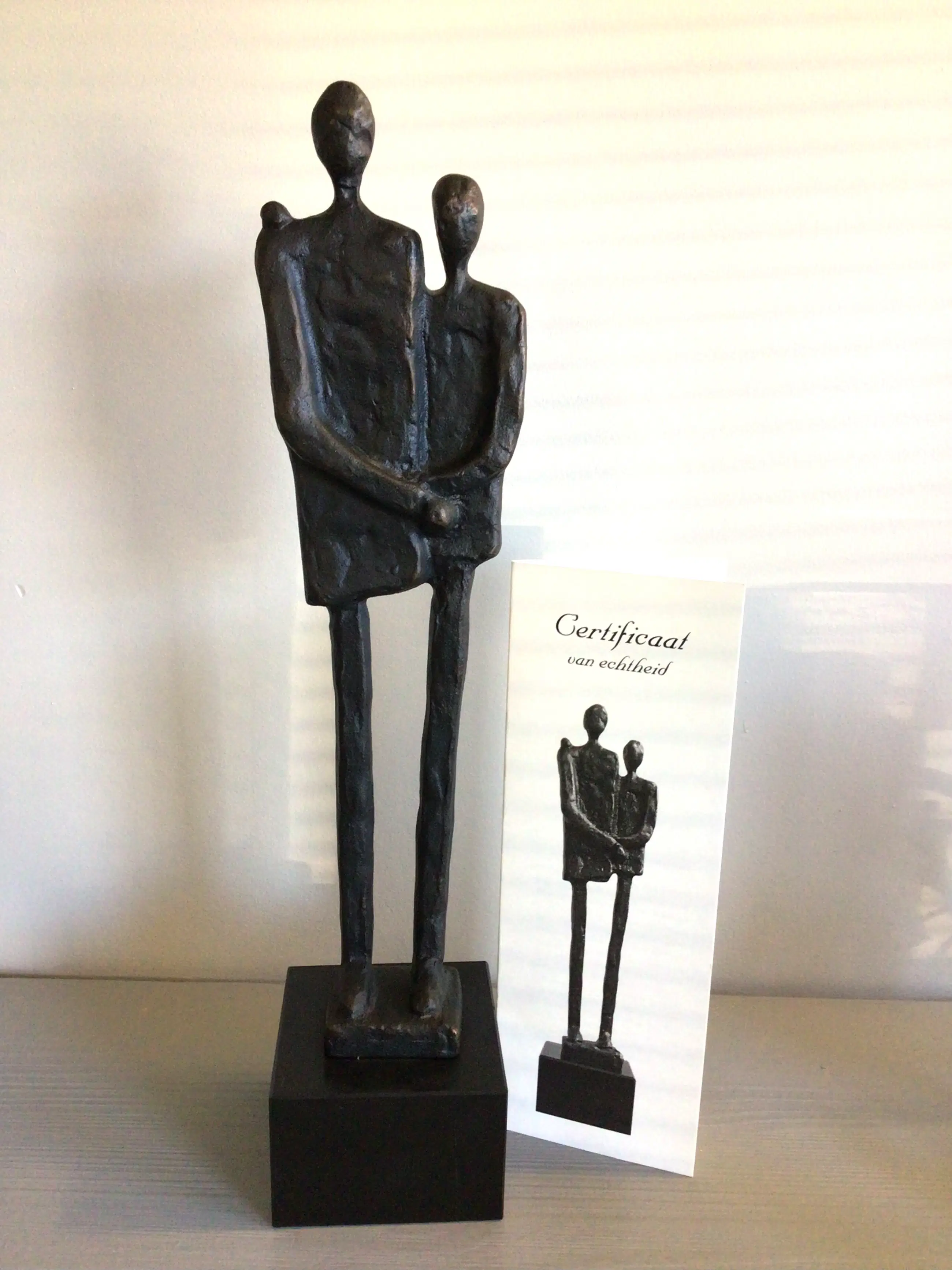 Zeer fraai symbolisch sculptuur van twee mensen zij aan zij, voor altijd met elkaar verbonden, de titel van dit mooie beeld is : “ Vriendschap “ Achtergrondgedachte “ Vriendschap “ symboliseert de hechte band tussen twee mensen door dik en dun “ Kunstenaar: Jos Gielen. Het beeld is op de achterzijde gesigneerd JG Hoogte : 34 cm ( XL versie ) Materiaal: brons Het beeld wordt geleverd inclusief Certificaat van echtheid. Het beeld verkeert in zeer goede staat en wordt zorgvuldig verpakt en verzekerd verzonden.