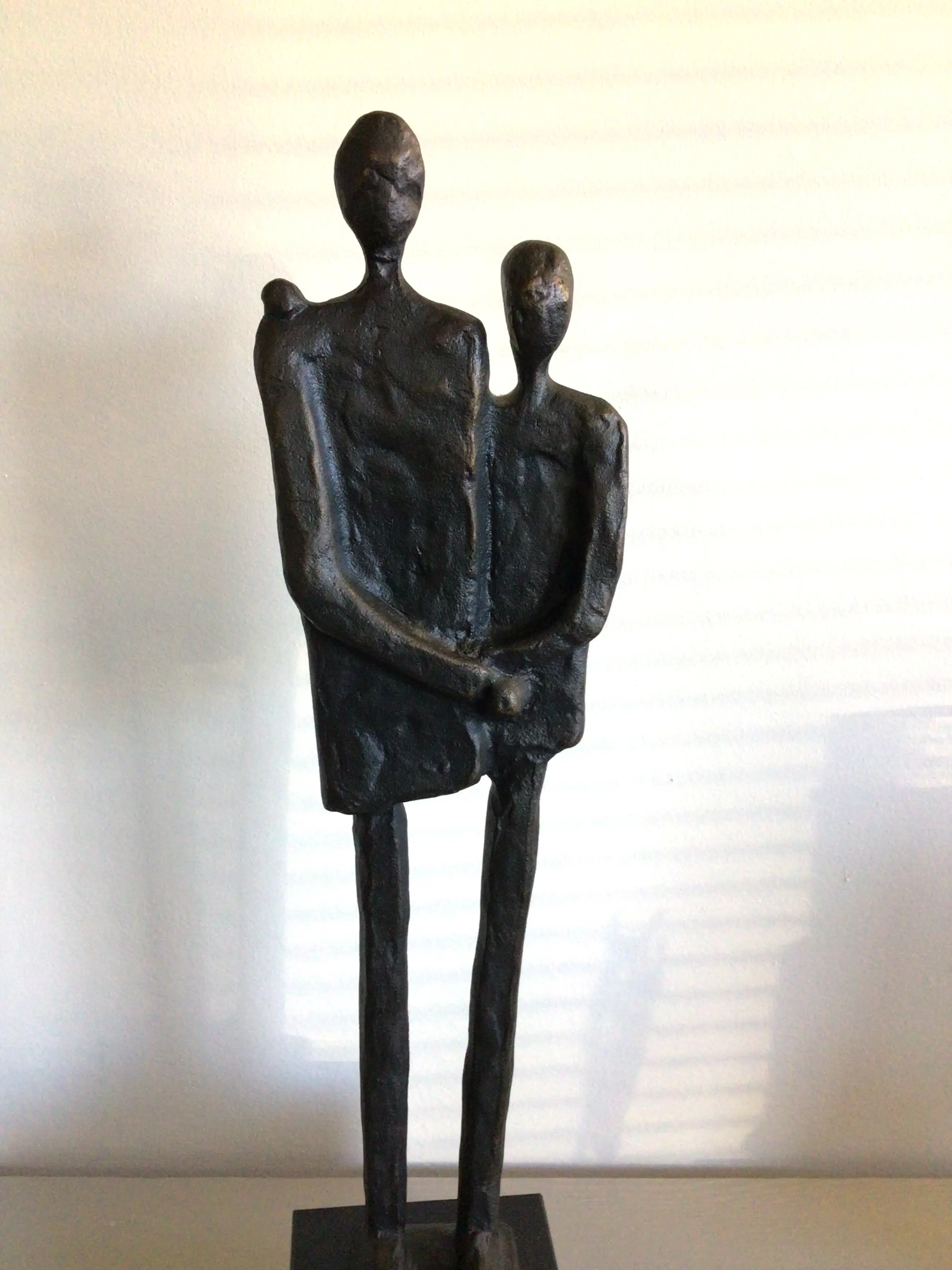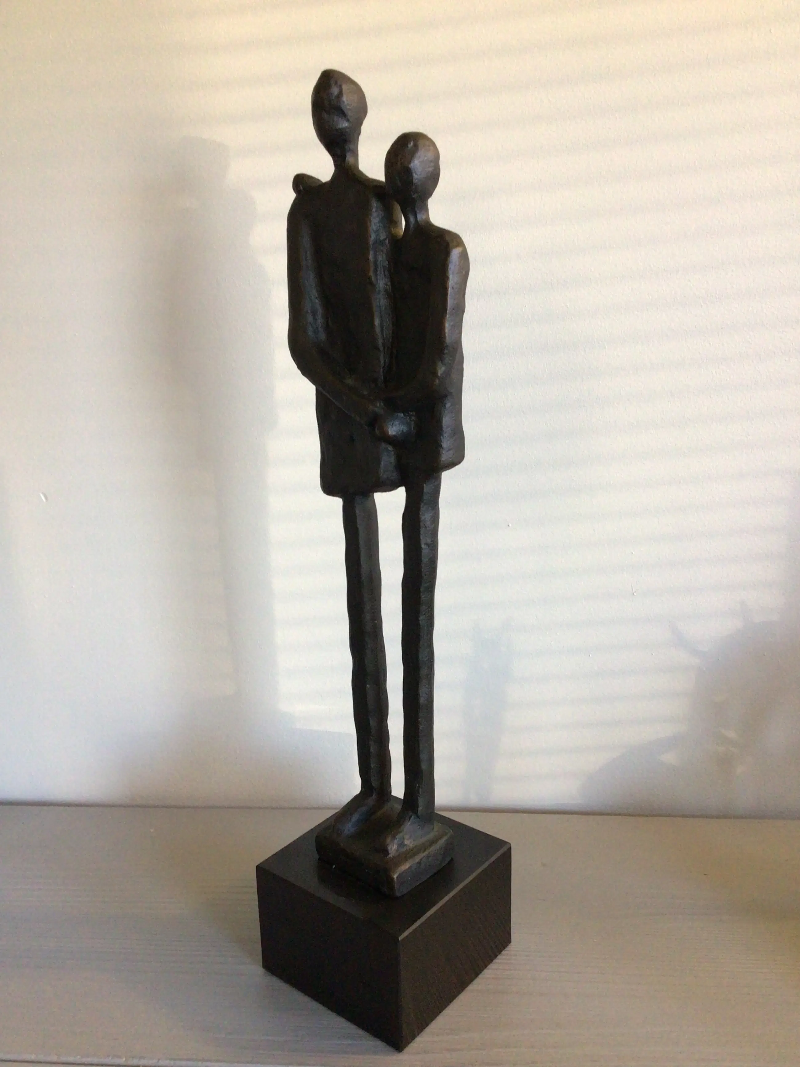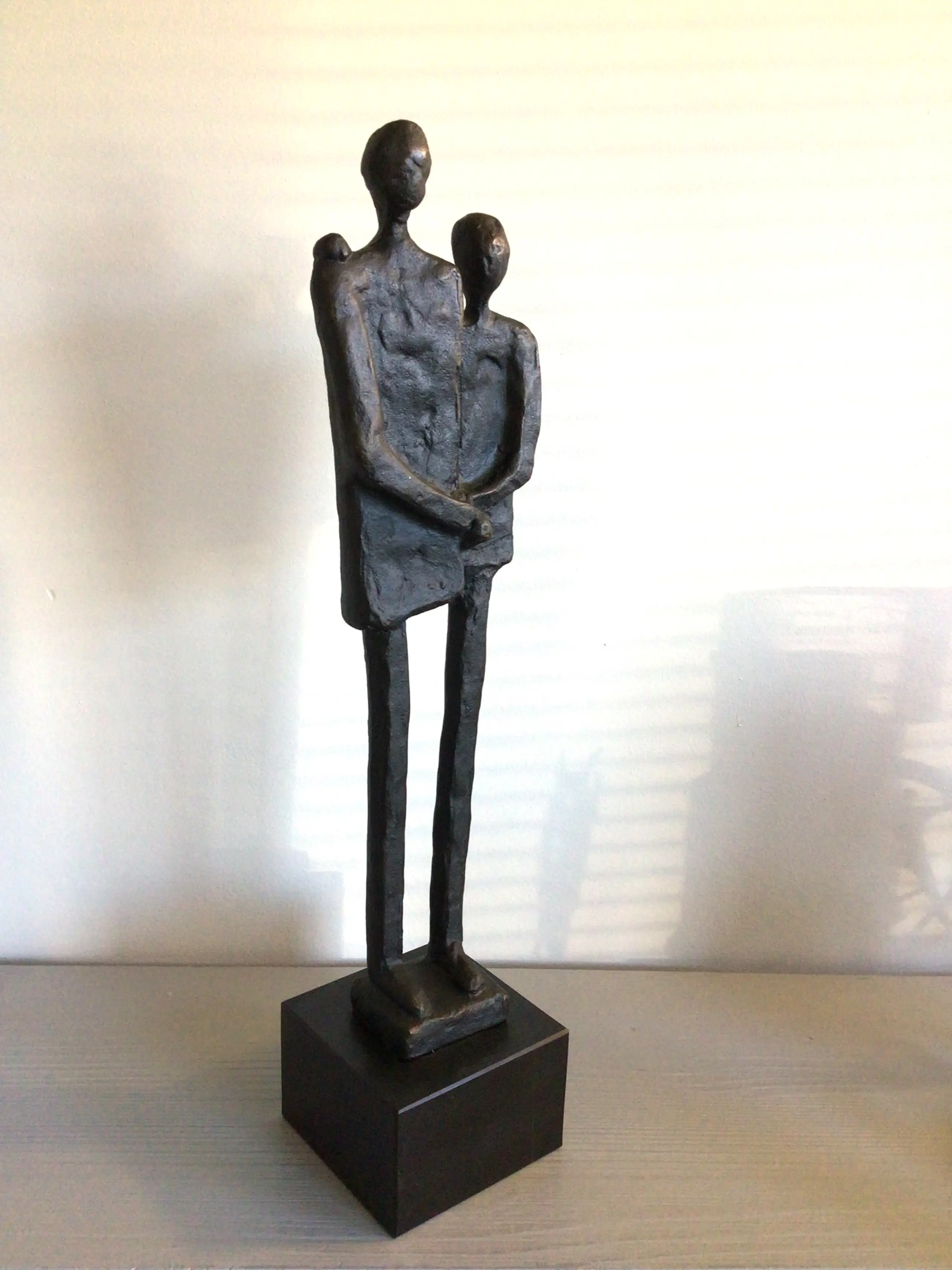 Zeer fraai symbolisch sculptuur van twee mensen zij aan zij, voor altijd met elkaar verbonden, de titel van dit mooie beeld is : “ Vriendschap “ Achtergrondgedachte “ Vriendschap “ symboliseert de hechte band tussen twee mensen door dik en dun “ Kunstenaar: Jos Gielen. Het beeld is op de achterzijde gesigneerd JG Hoogte : 34 cm ( XL versie ) Materiaal: brons Het beeld wordt geleverd inclusief Certificaat van echtheid. Het beeld verkeert in zeer goede staat en wordt zorgvuldig verpakt en verzekerd verzonden.
