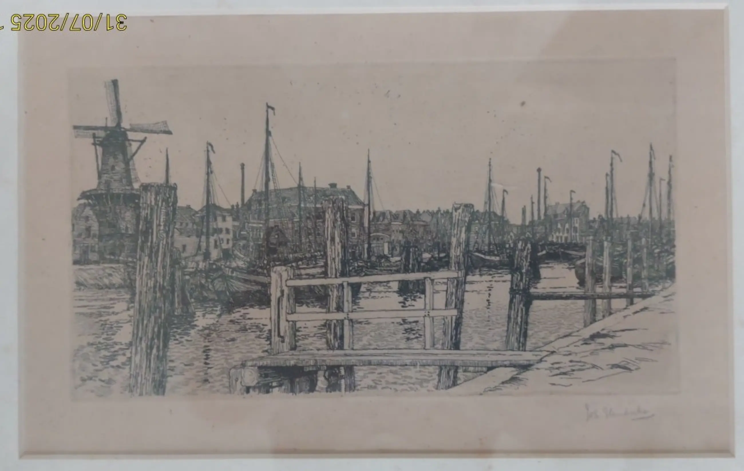 gesigneerde ets ing goede staat netjes ingekaderd achter glas
