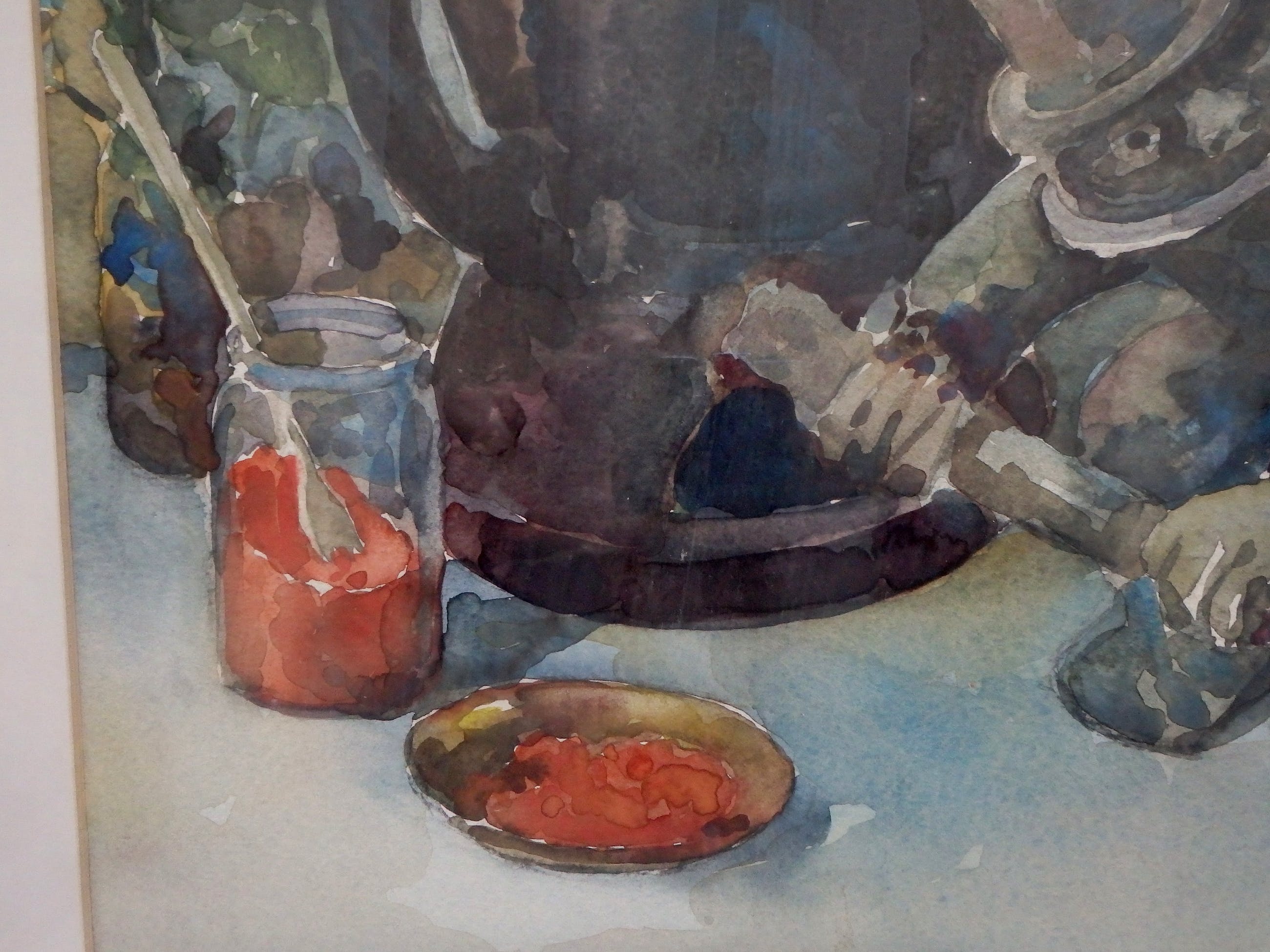Vnl. aquarel op papier 45x35, rechtsonder gesigneerd Jos Hoogwout, werk is van 1976 ?, ingelijst in passe-partout en achter glas.